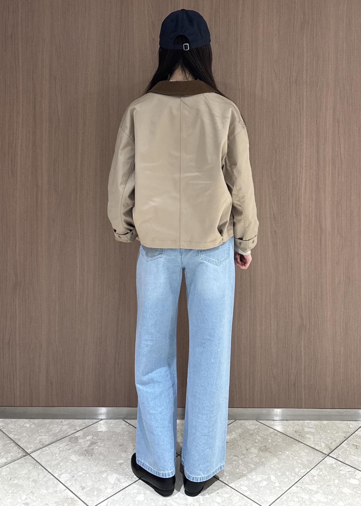 ブルゾンは襟がコーデュロイになっていて、裾部分をボタンで止めるとよりコンパクトに!