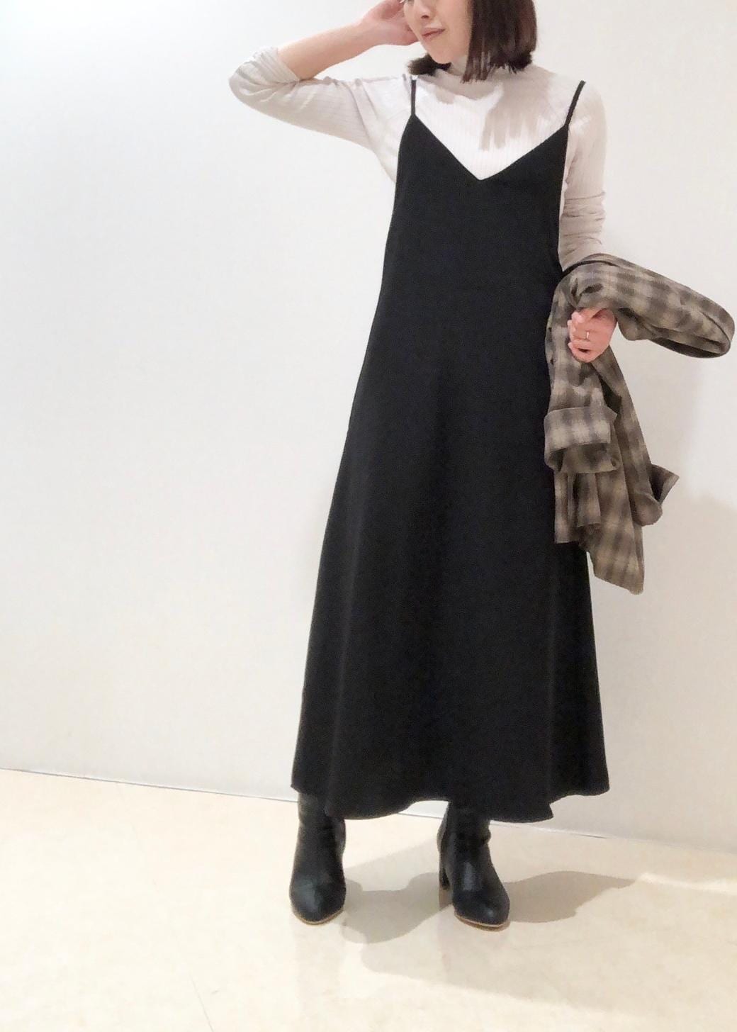 女性らしい印象のキャミワンピーススタイルにチェックジャケットを取り入れて、トレンド感のあるカジュアルスタイルで合わせました。