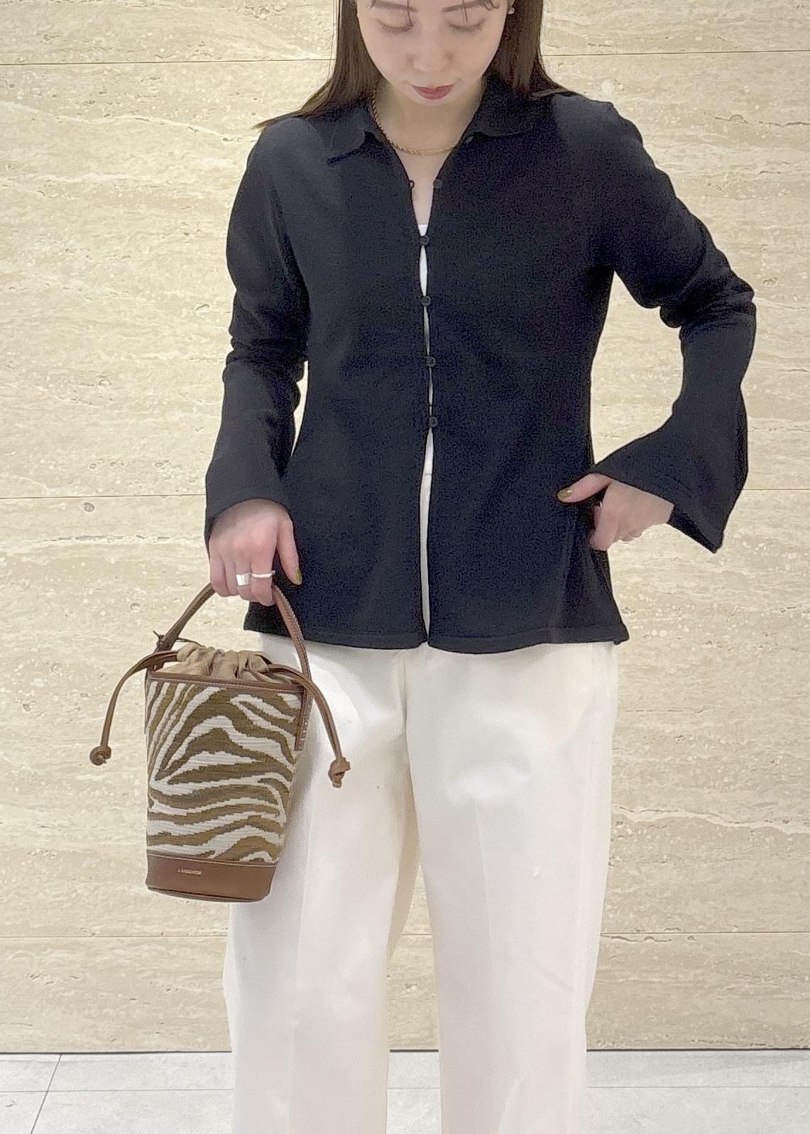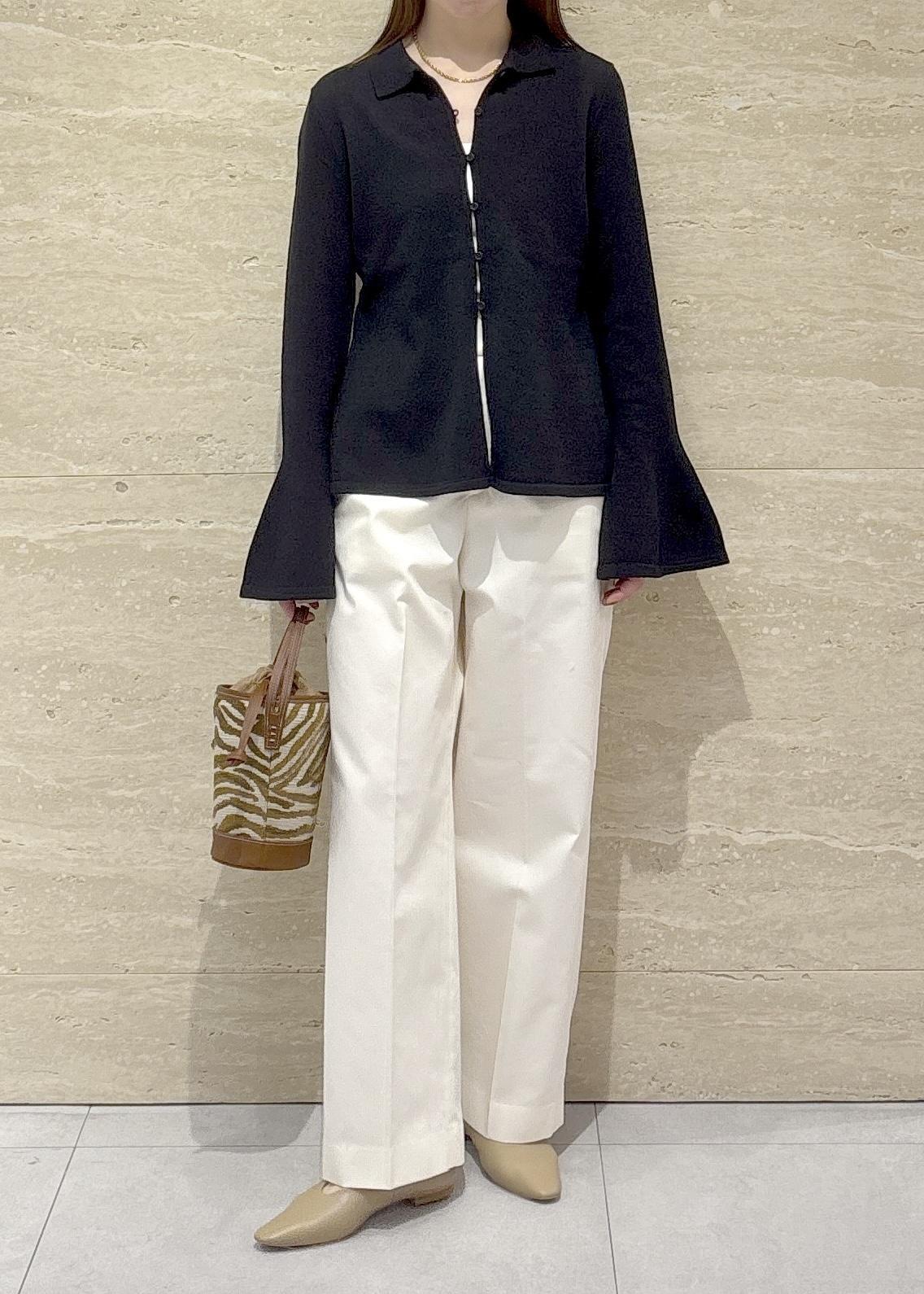 ROPÉ SELECT【一部店舗限定】【REALM(レルム)】FLARE SLEEVE KNIT|襟付きニットカーディガンブラック / 38¥31,900レビュー38のワンサイズですが大きく感じることはなく、お尻が半分くらい隠れる着丈でした。