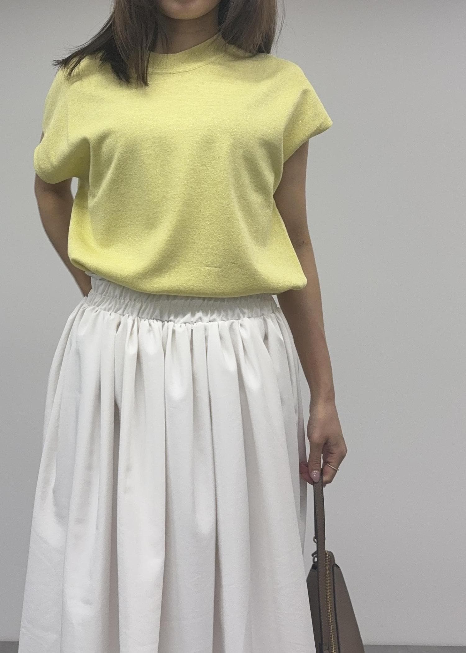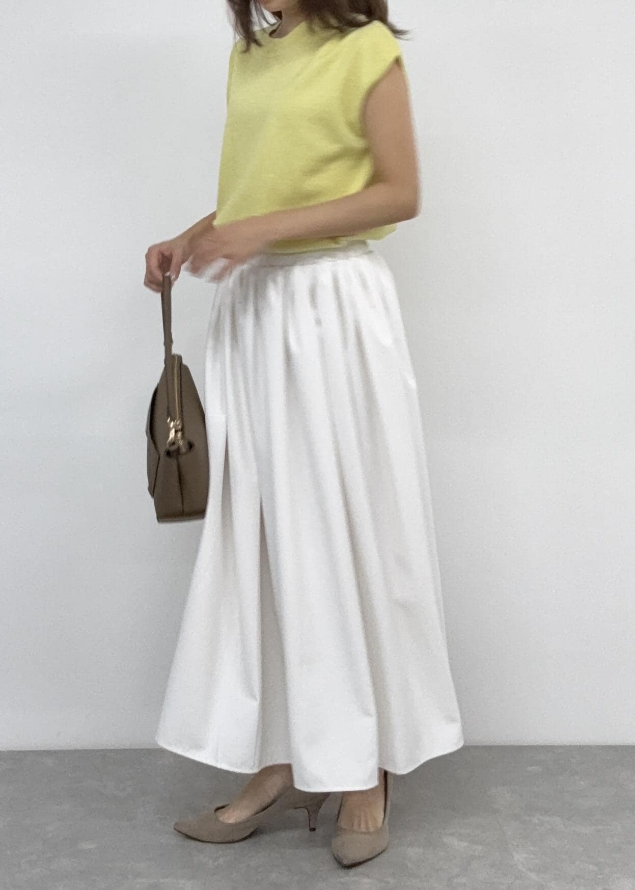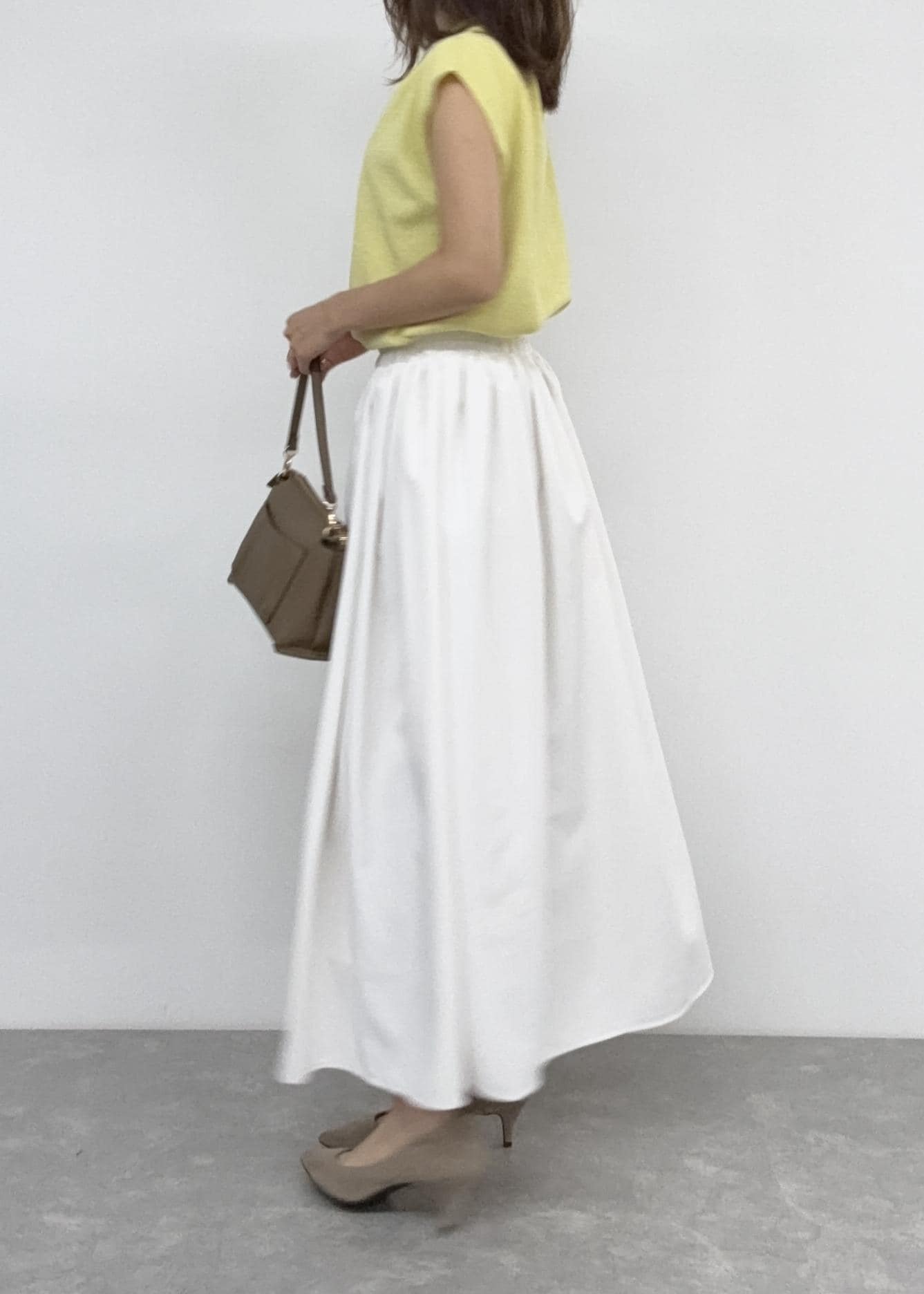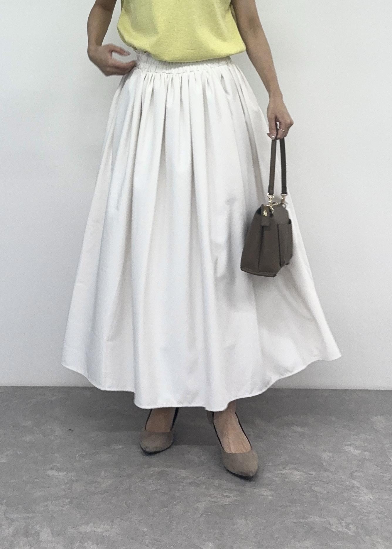 ふんわりボリューム感のあるフレアスカートを合わせて綺麗めなスタイルにしました。