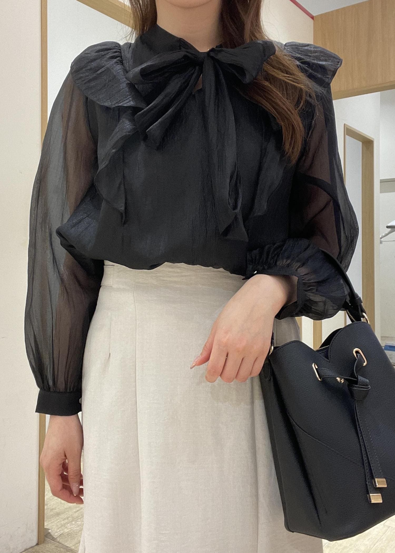 VISシャイニーボウタイ長袖ブラウス/イージーケア・2WAYブラック / F¥5,929レビューサラッと光沢感のある素材で着やすいです!