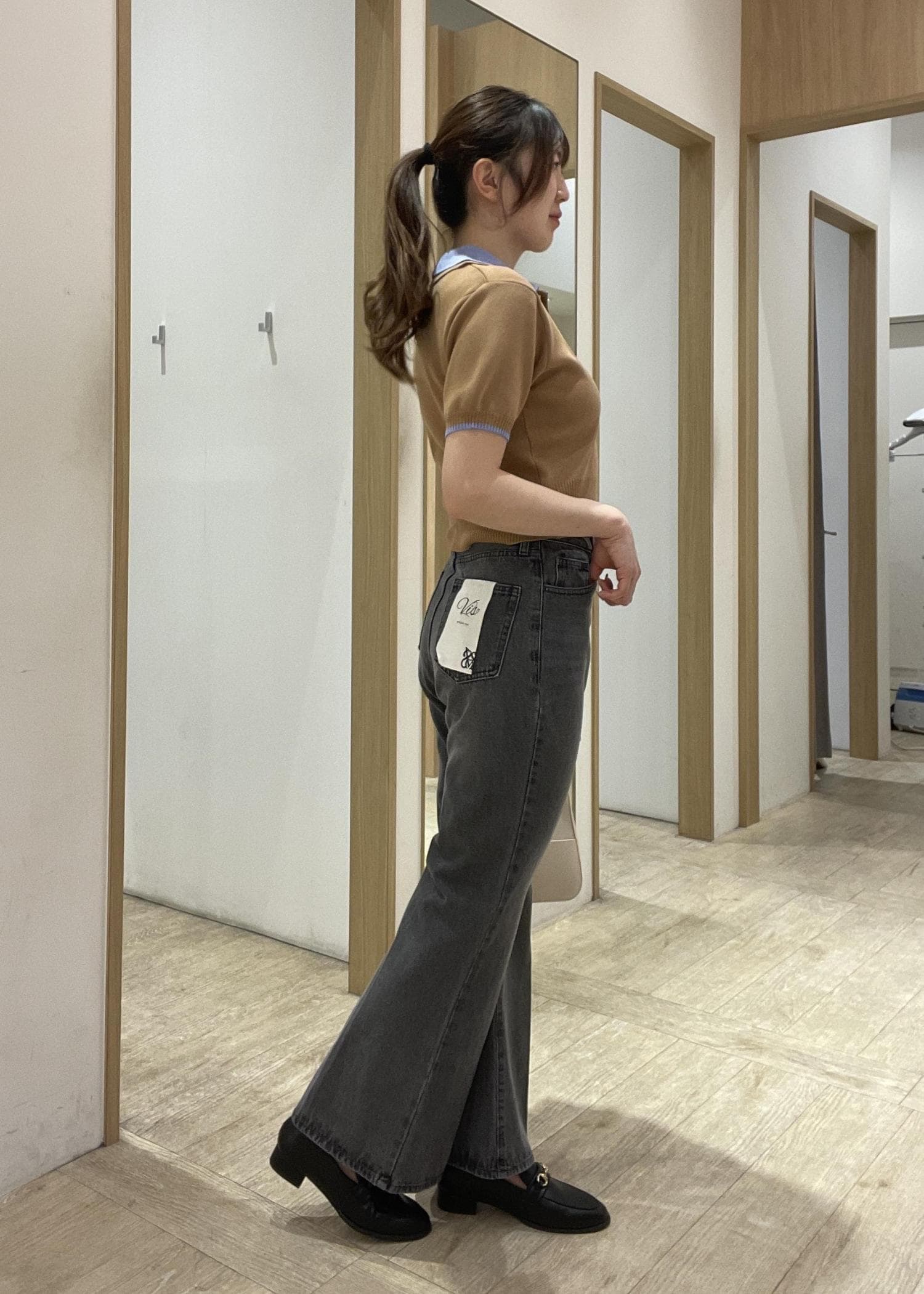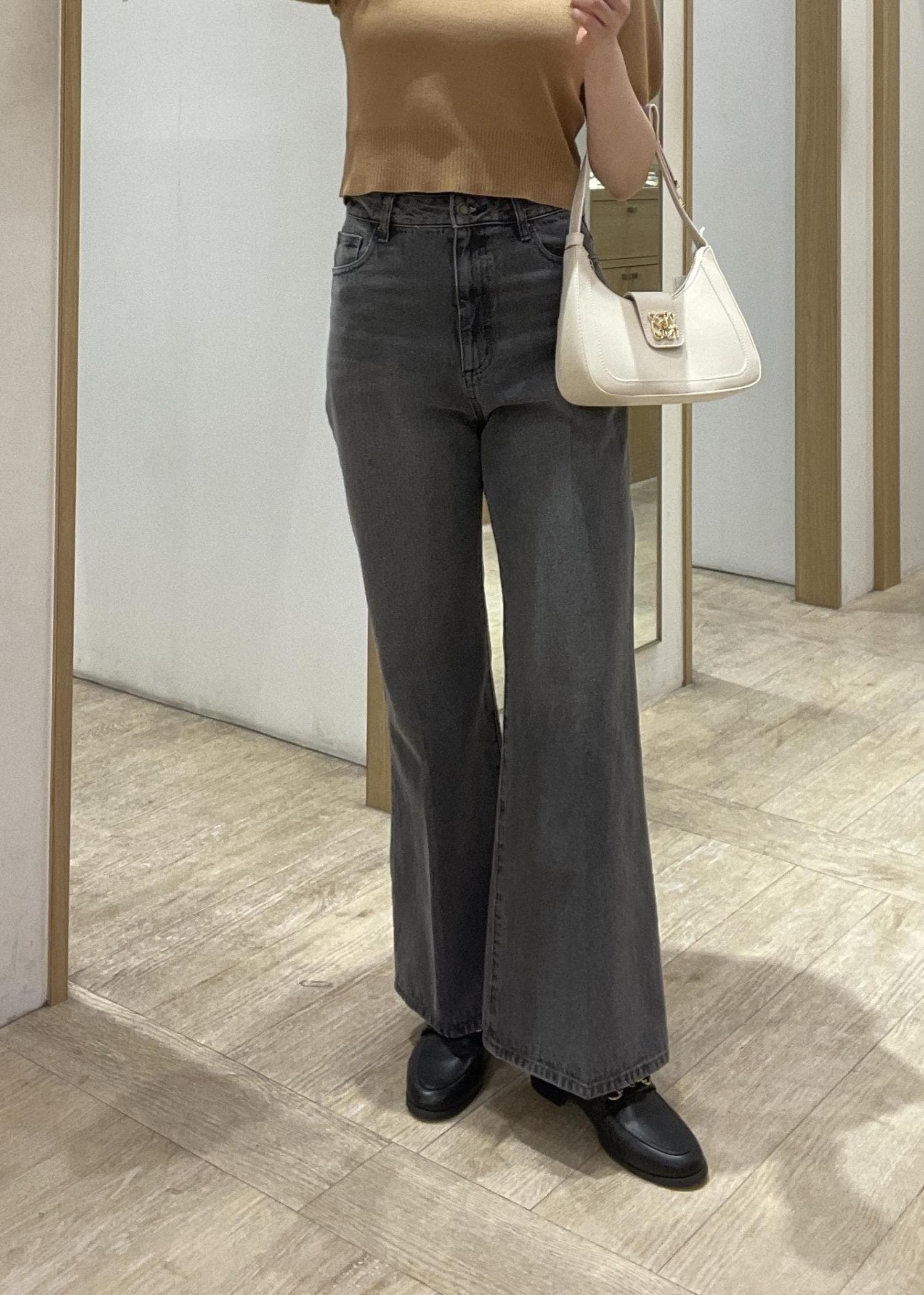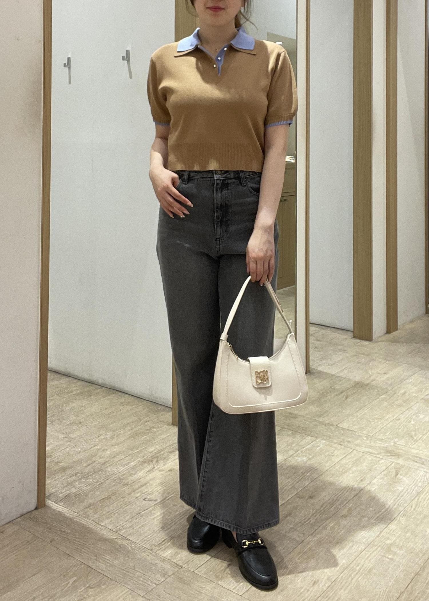 短丈のトップスにフレアデニムで細見えを意識したコーデ組んでみました!