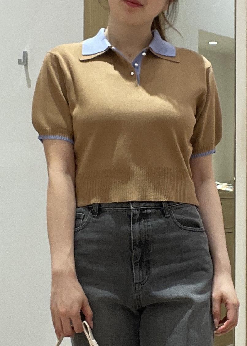 NEW!VISダブルカラー半袖ポロニットトップス/イージーケア・WEB限定カラーキャメル / F¥5,489レビュー166センチフリーサイズ着用で