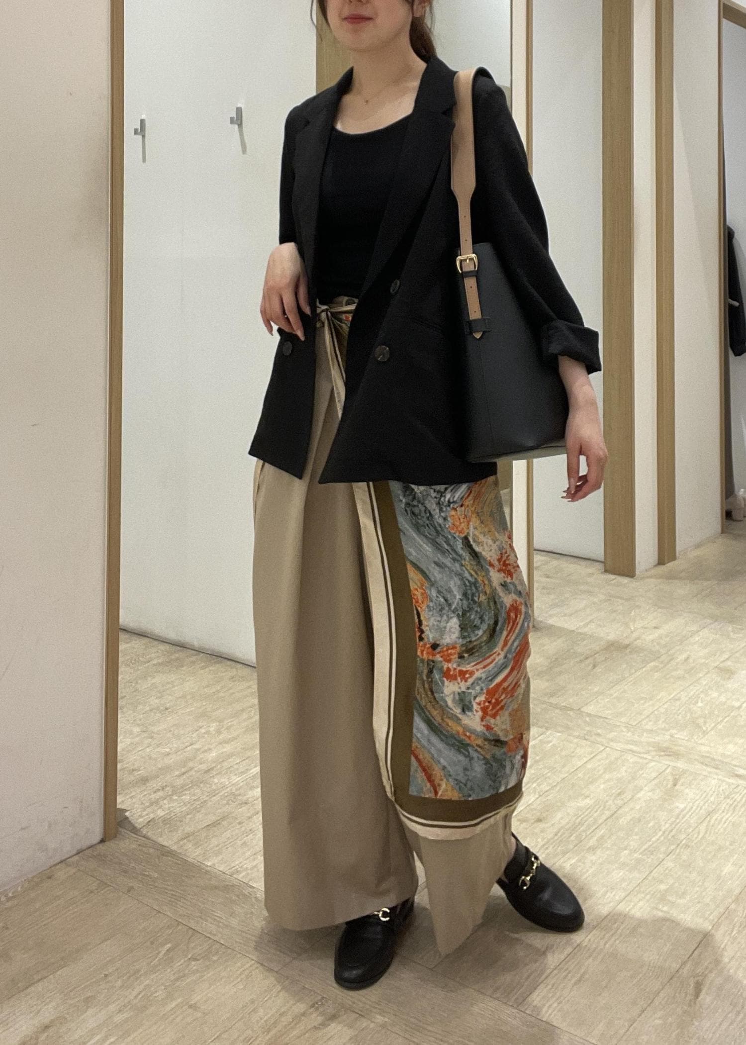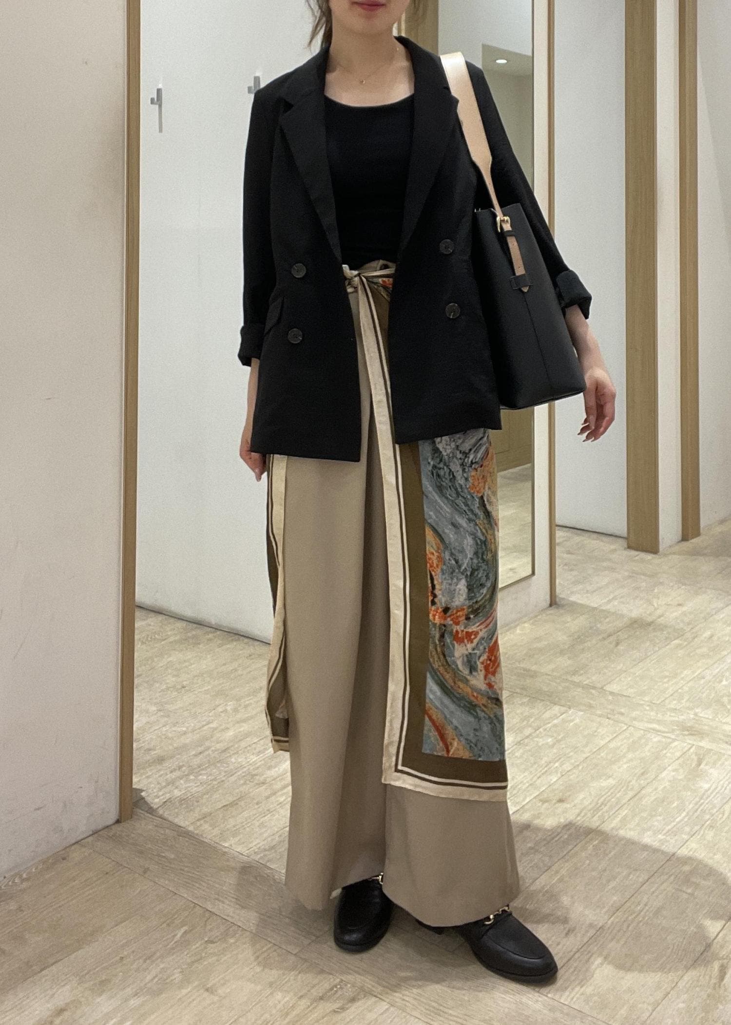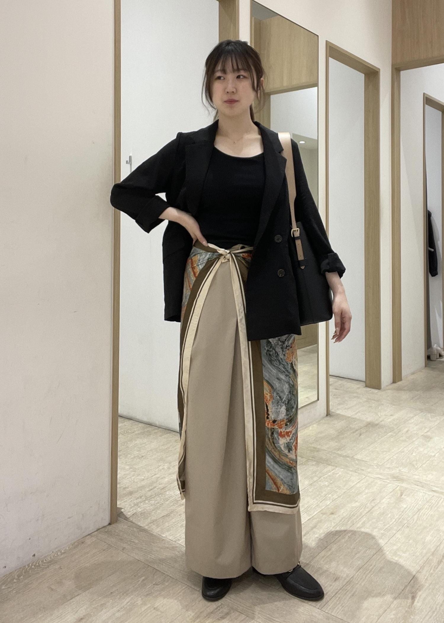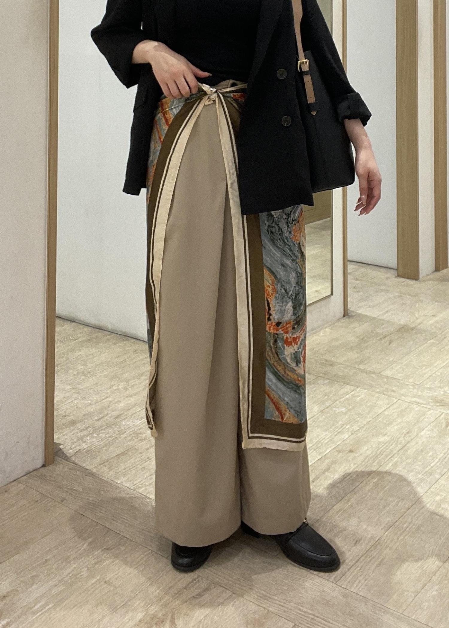 腰にスカーフを巻いてこなれ感を出しました!