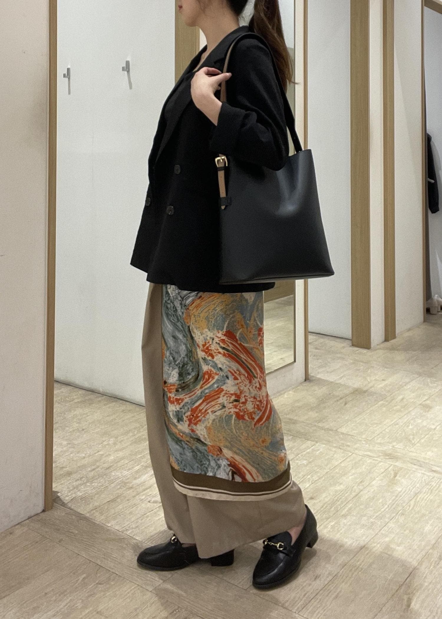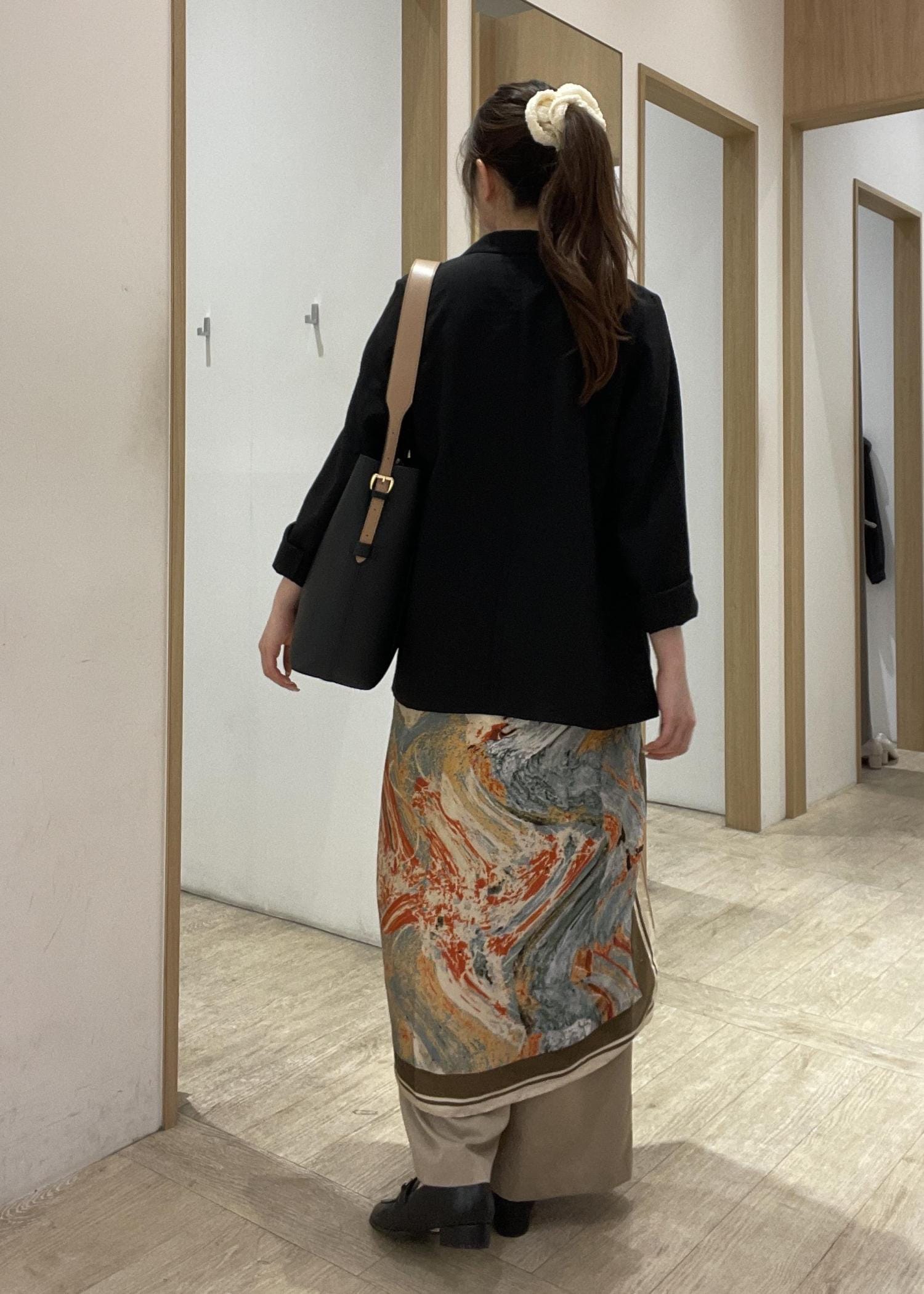 スカーフはバッグに潜めておいて、
