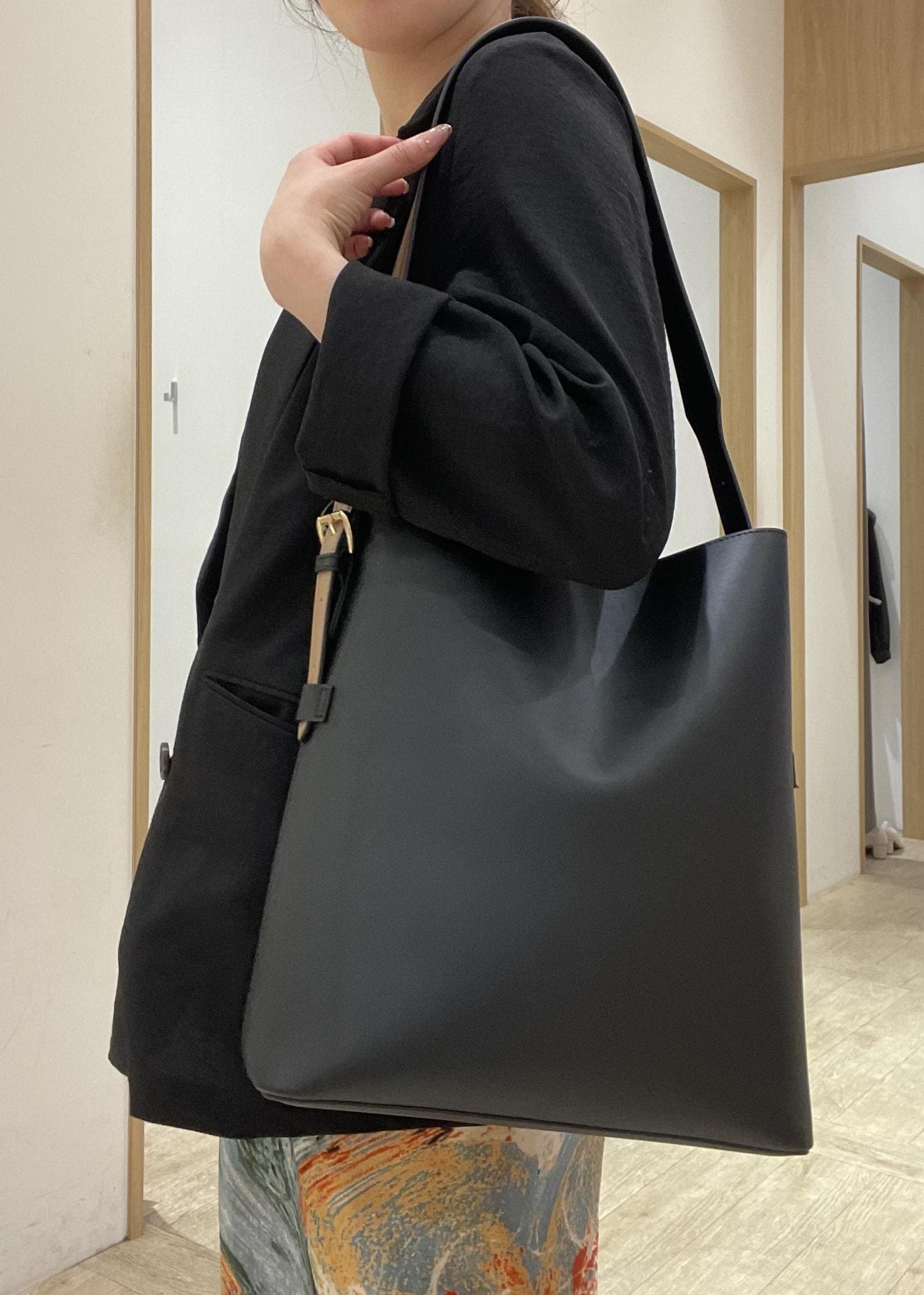 VIS【新色追加】【A4収納】リバーシブルハンドルワンショルダーバッグブラック / F¥5,929レビュー形がシンプルで大人っぽいデザインです!