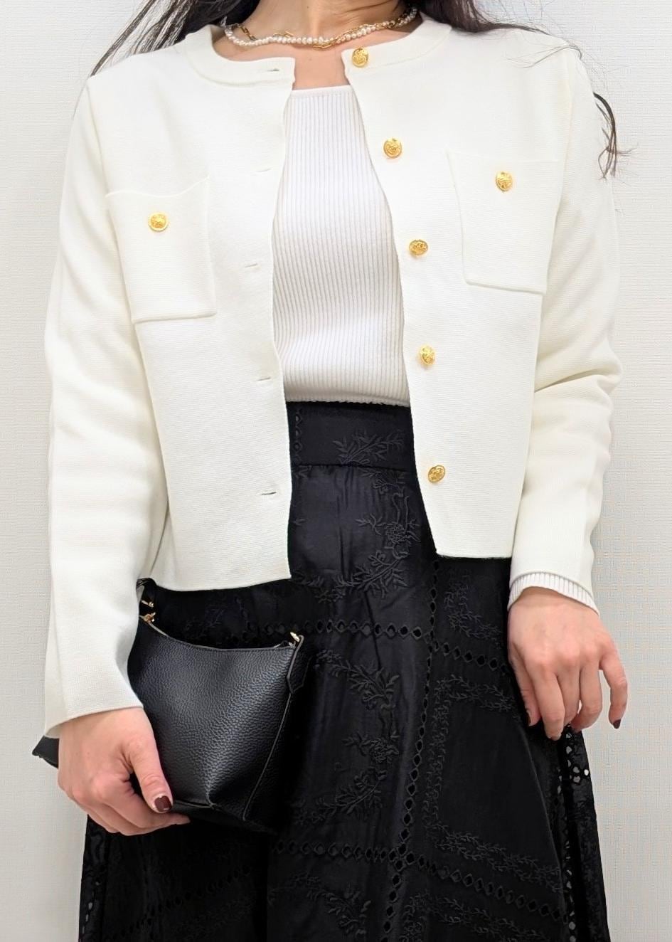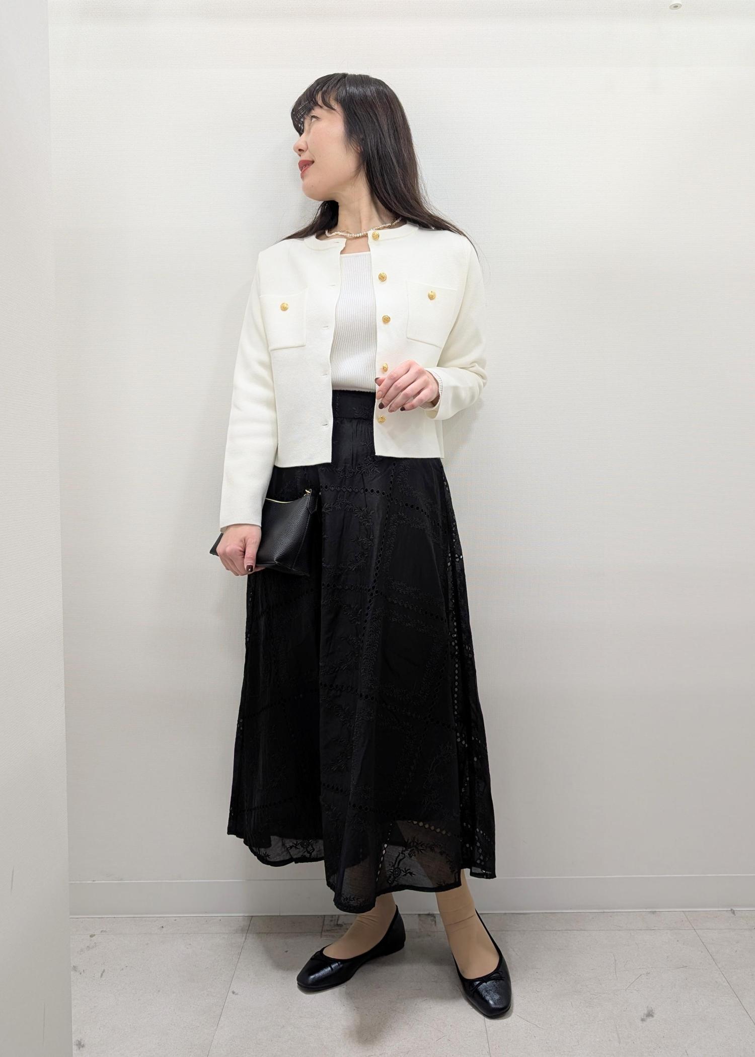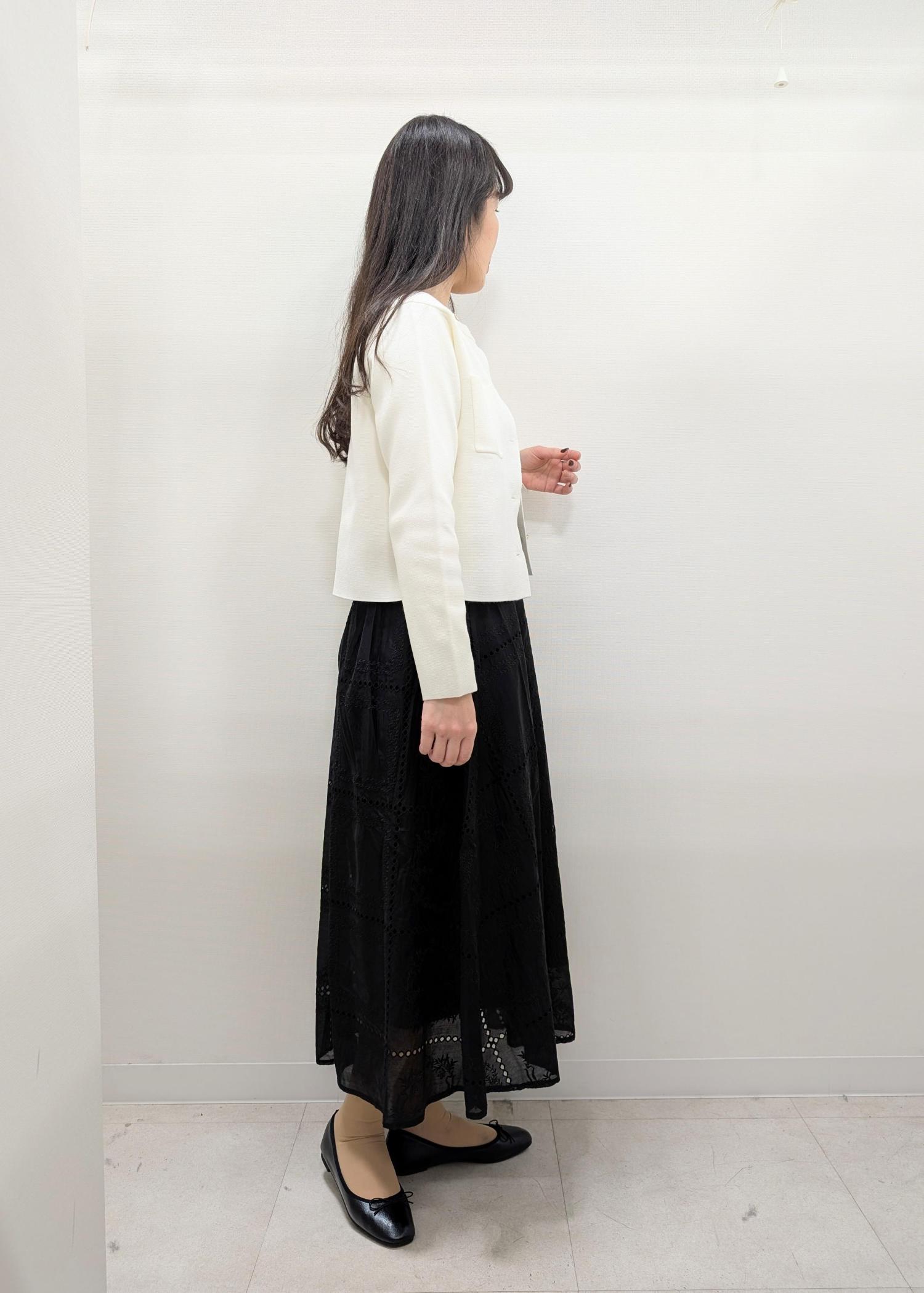 スカートのシルエットを活かすためにカーディガンは短めのMサイズを選びました(^.^)