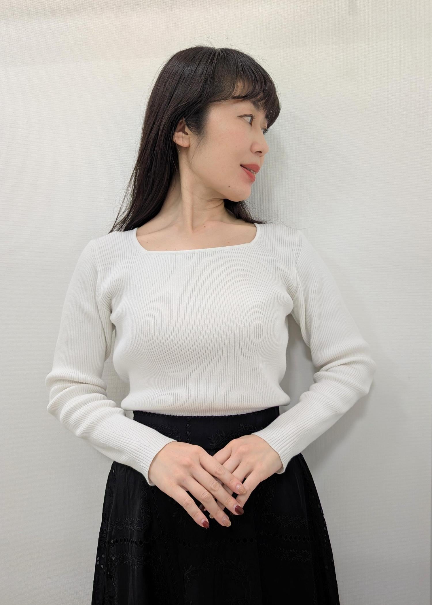 ROPÉ PICNICスクエアネックリブニットオフホワイト / F¥4,499レビューアームホール、身幅ともにゆったりめです。