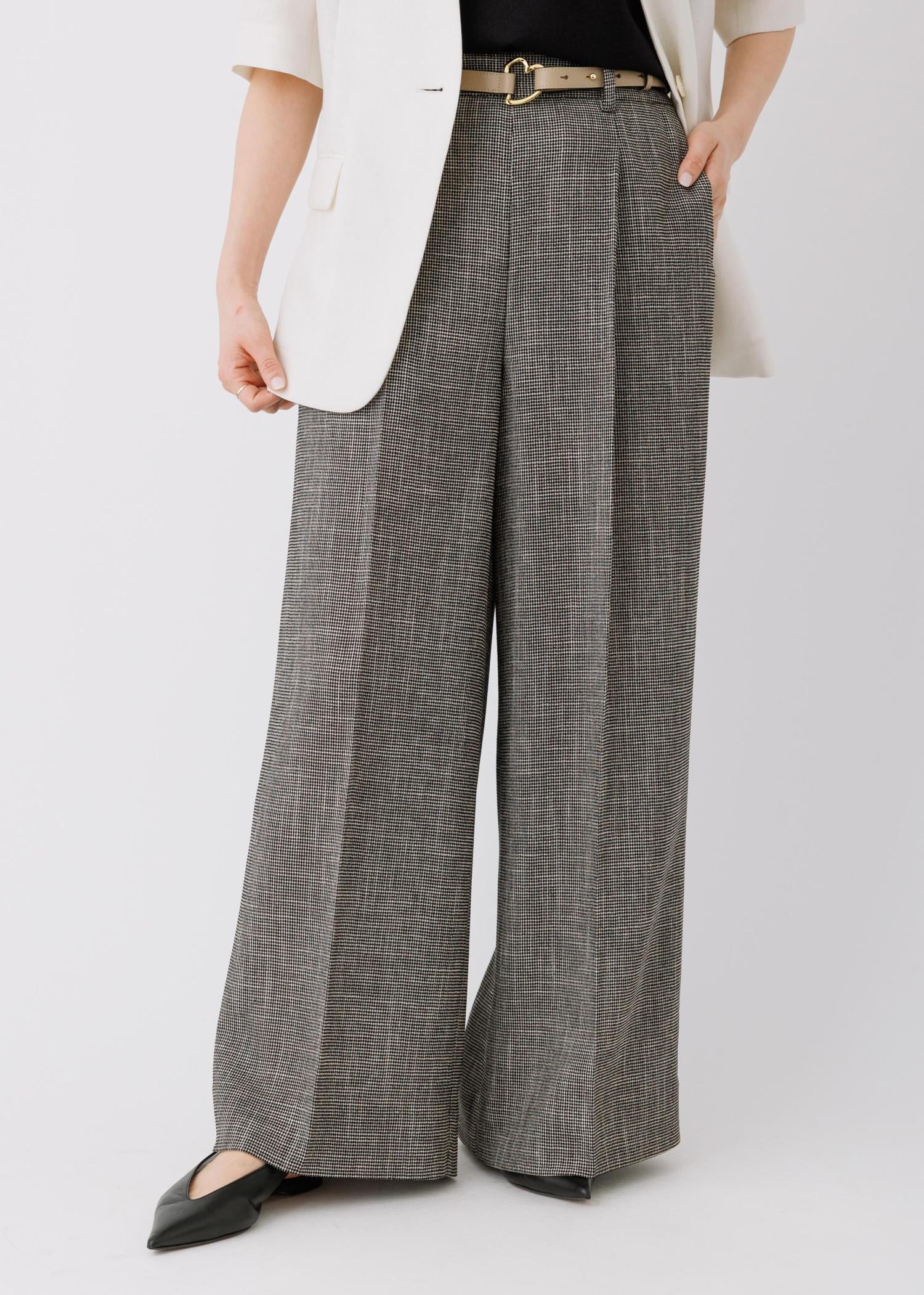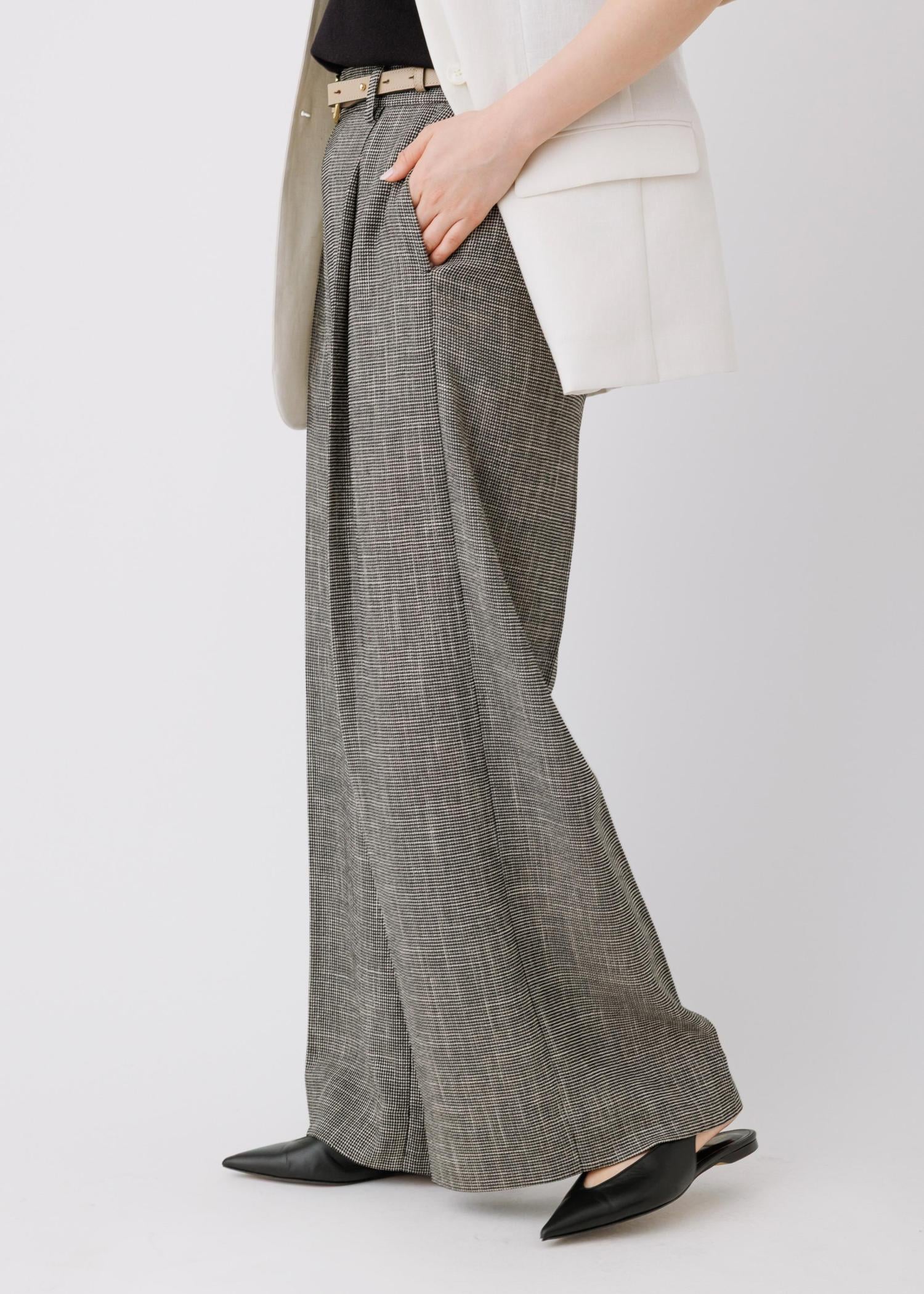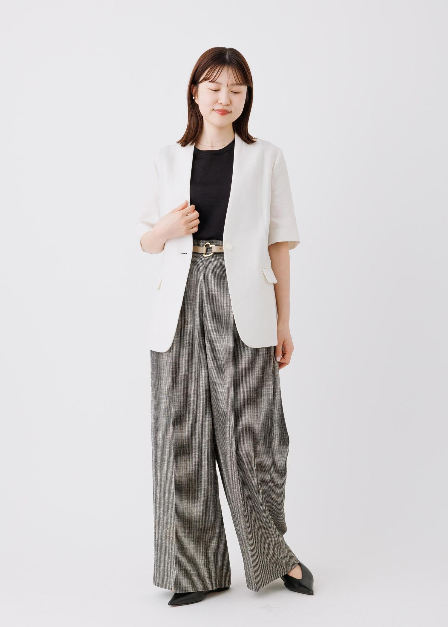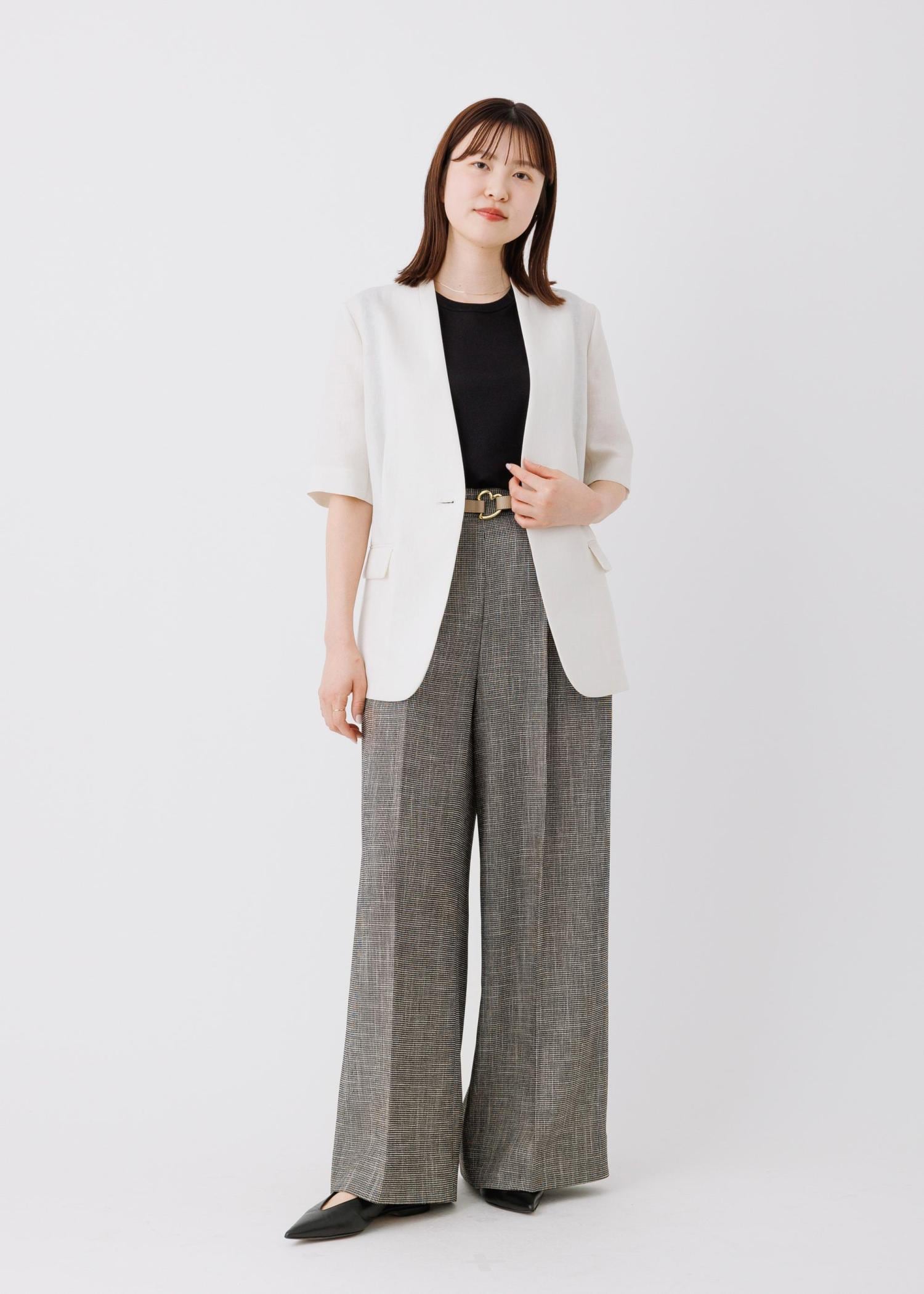 リネンジャケットにワイドパンツを合わせた