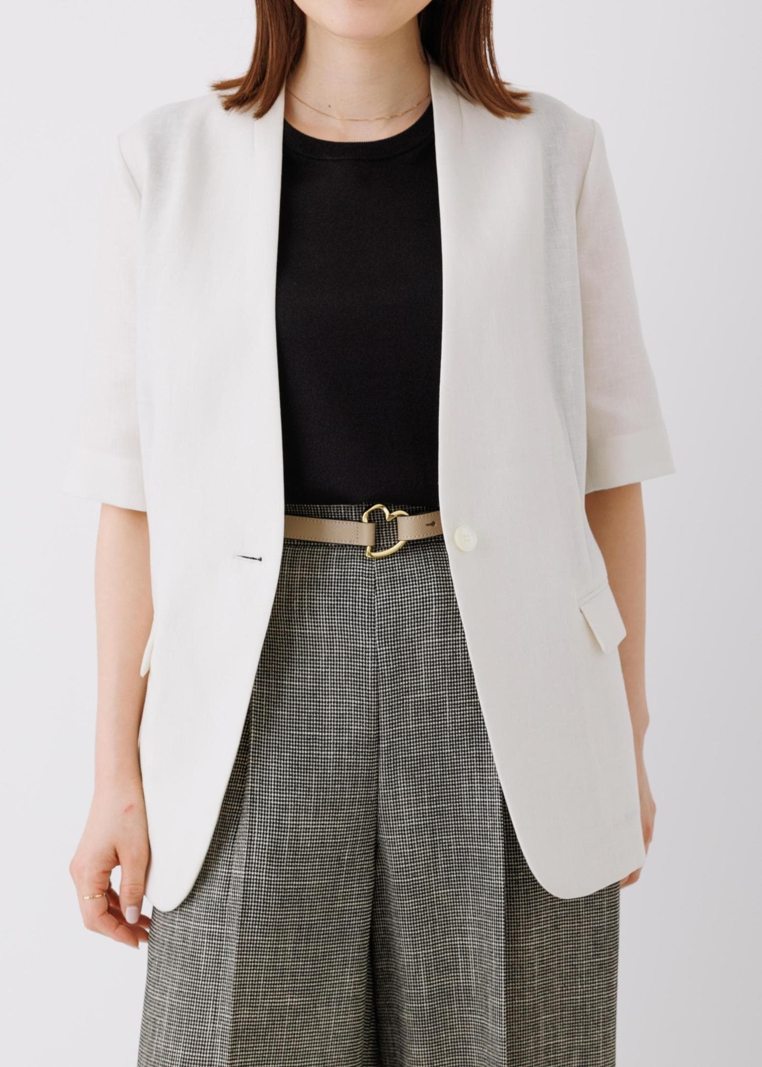ジャケットは、リネン100%で清涼感がある素材。