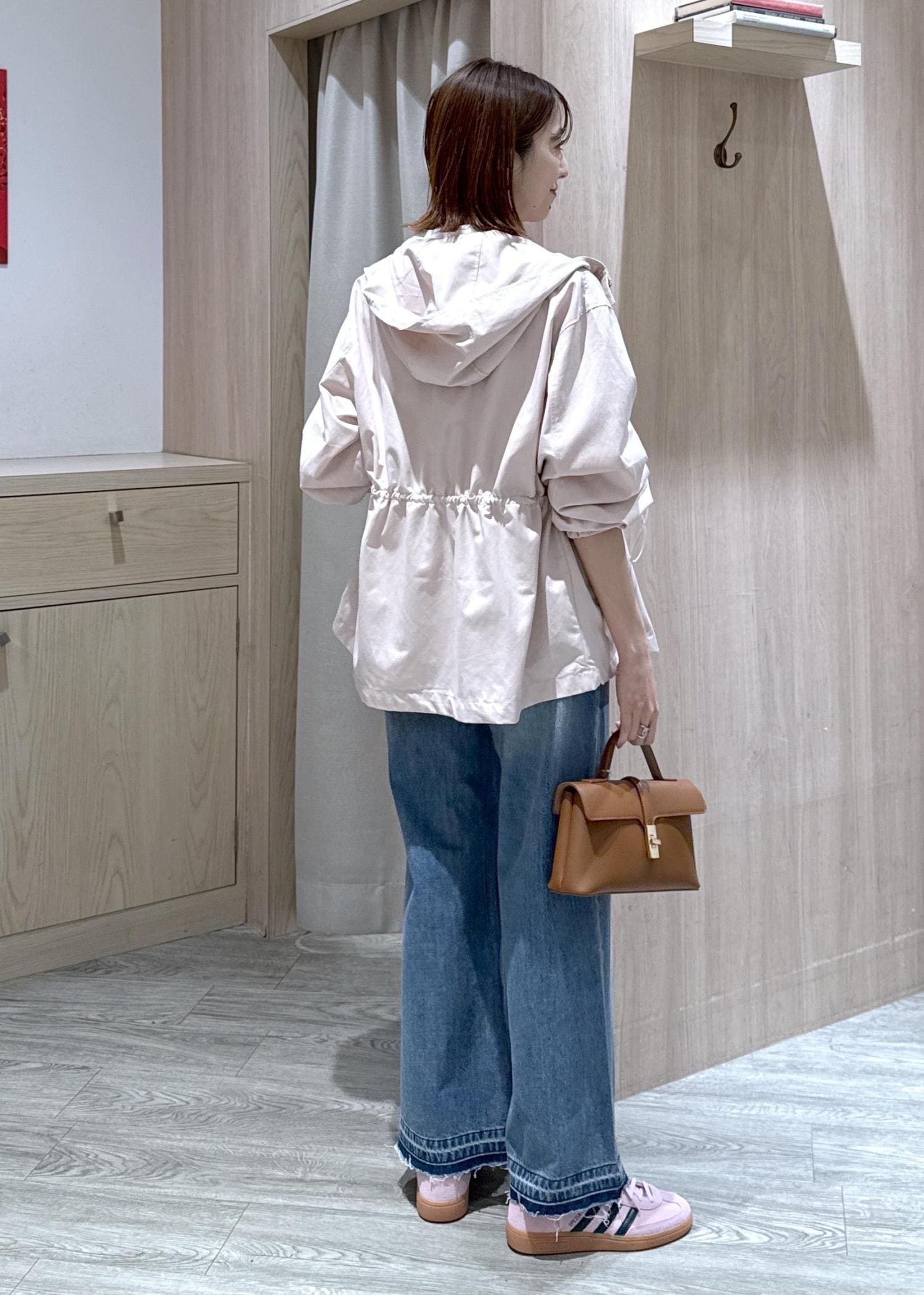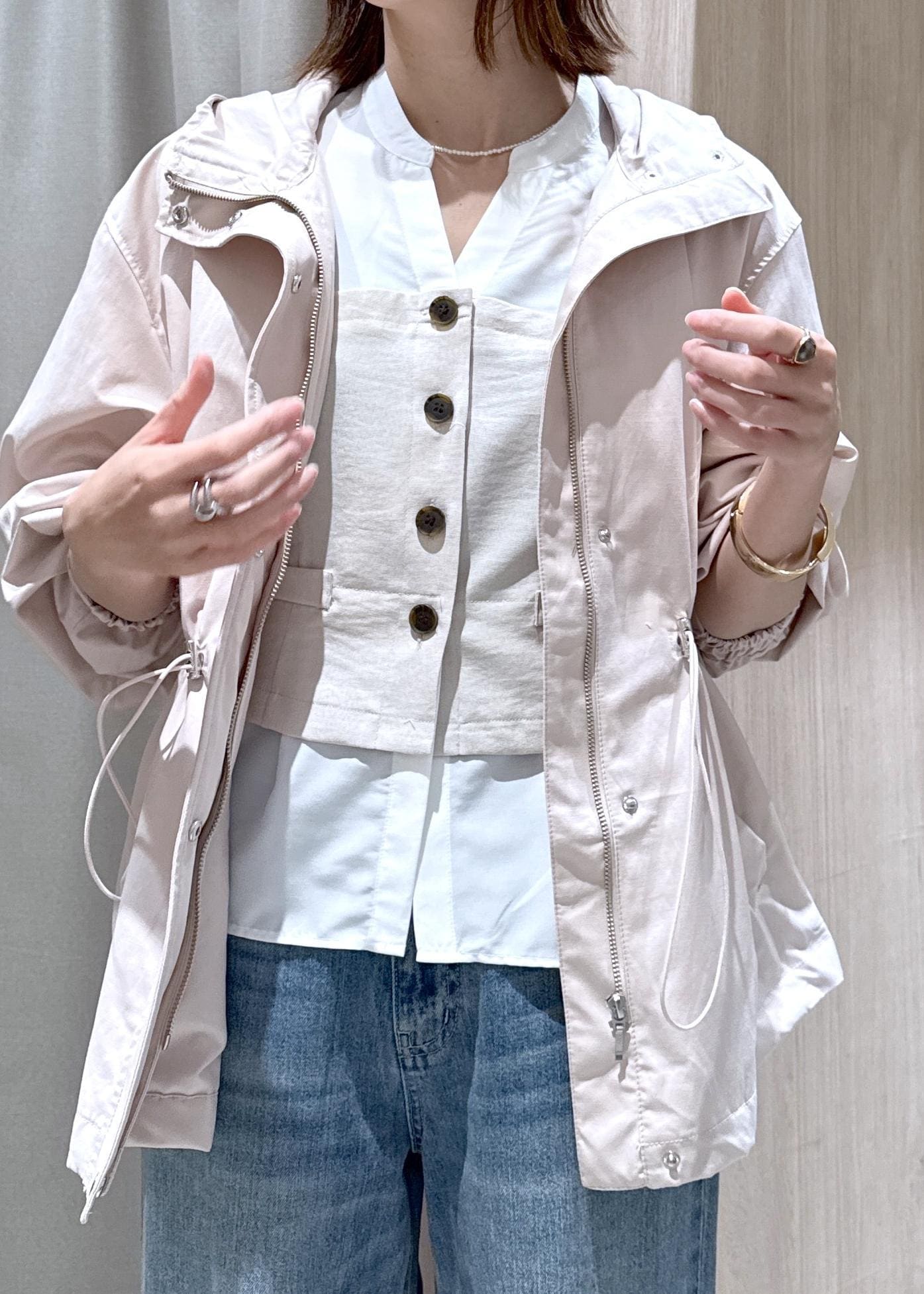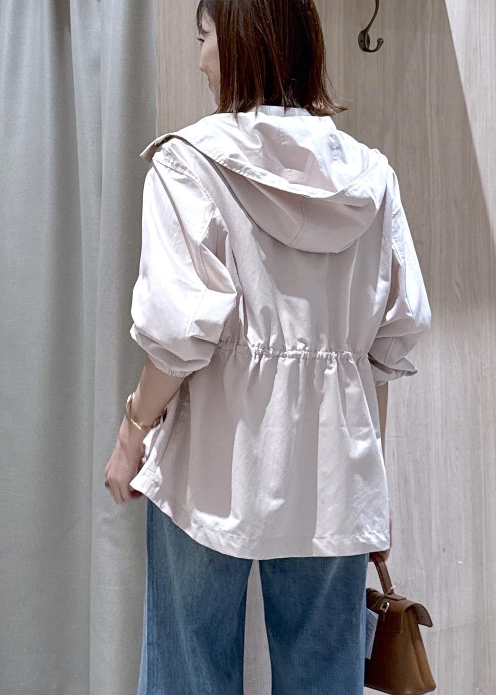 ウエストのドロストコードで絞ってメリハリを付けられるので、カジュアルからキレイめスタイルにも合わせやすい◎