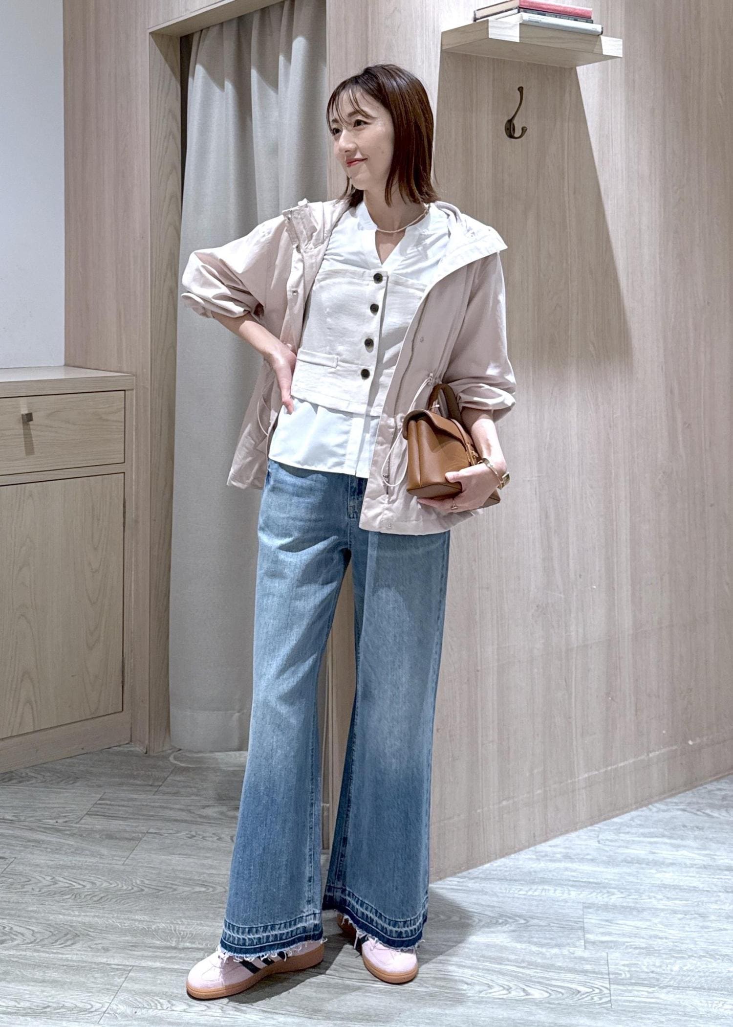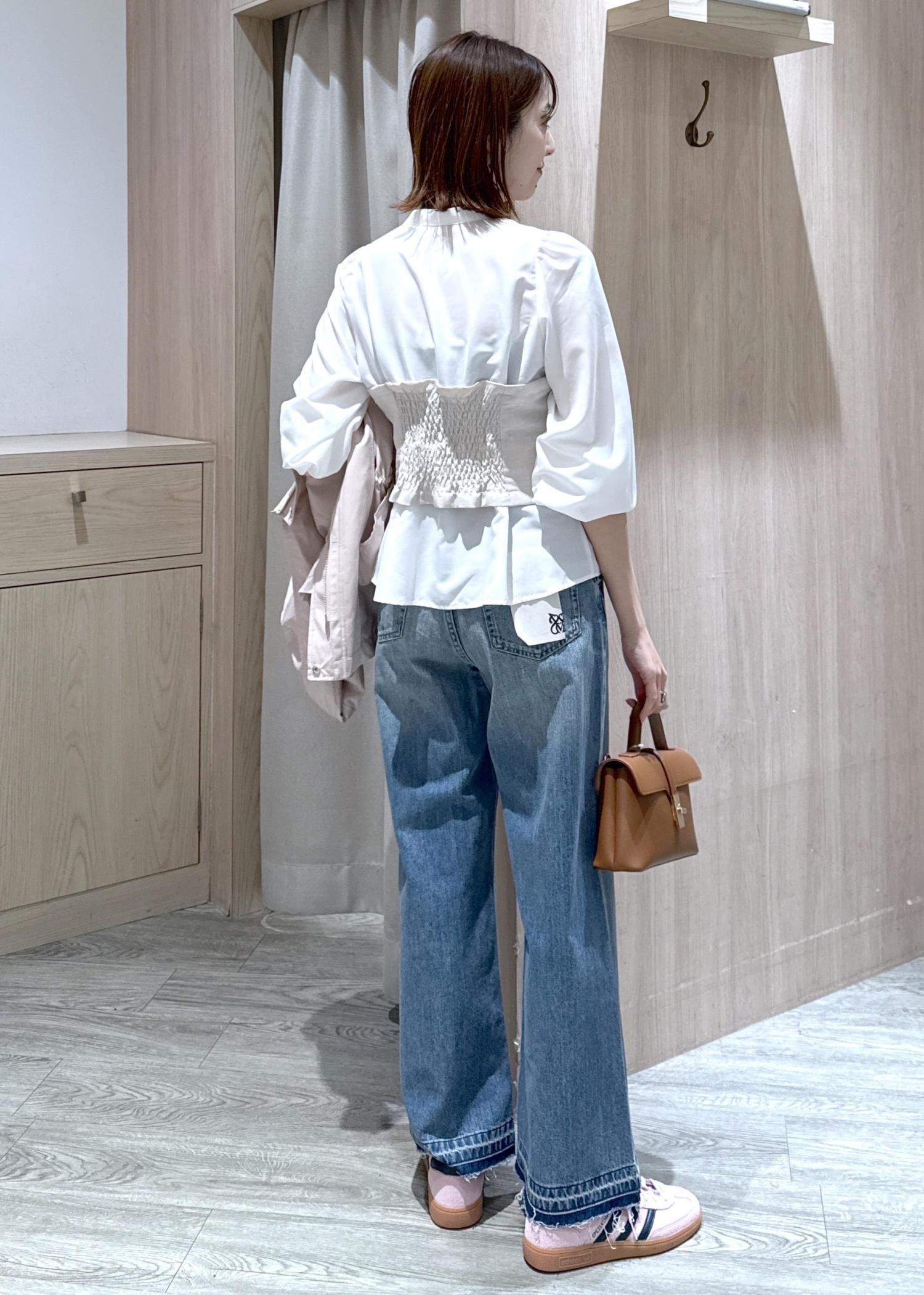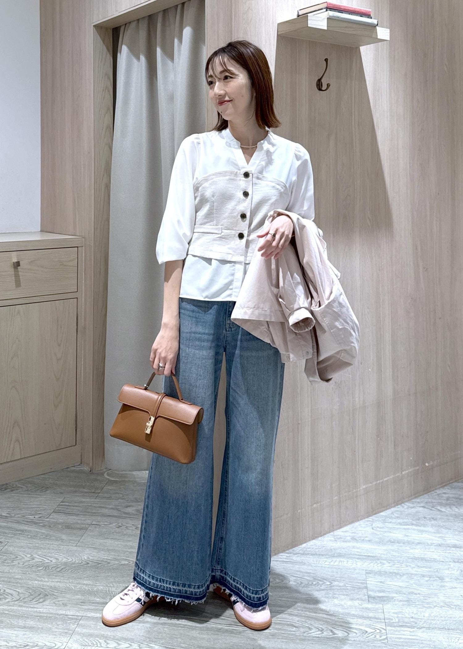 カジュアルになり過ぎないようにインナーをブラウスにしました♪