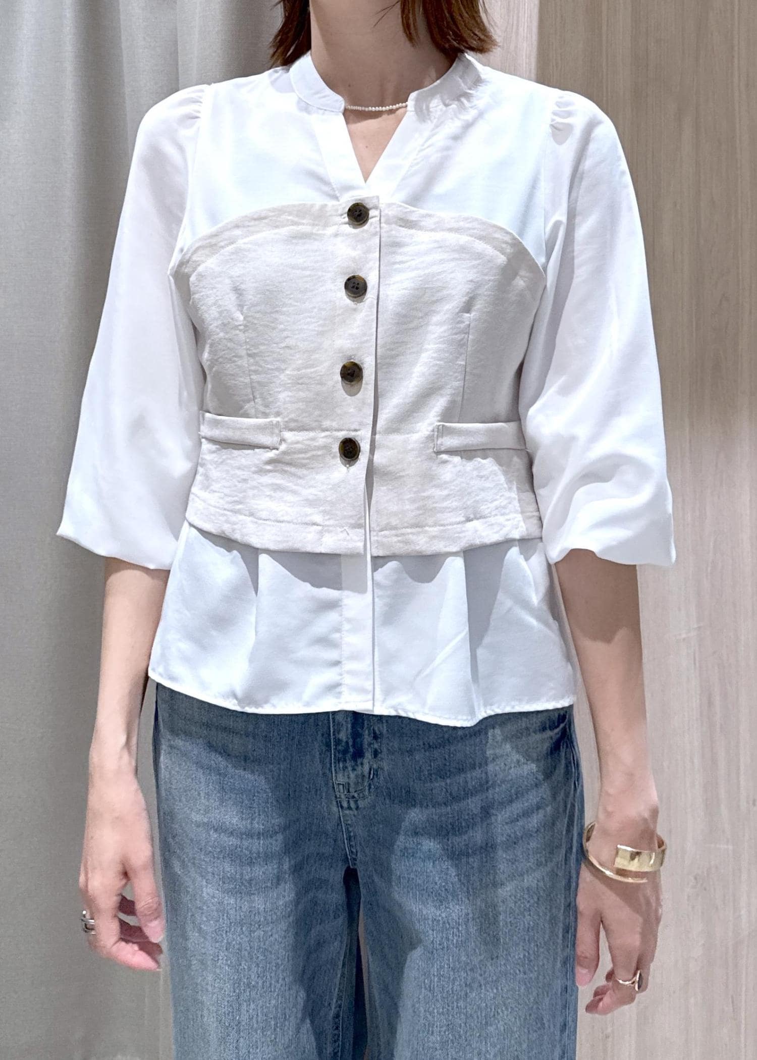 1枚でレイヤードスタイルが叶うブラウスです!
