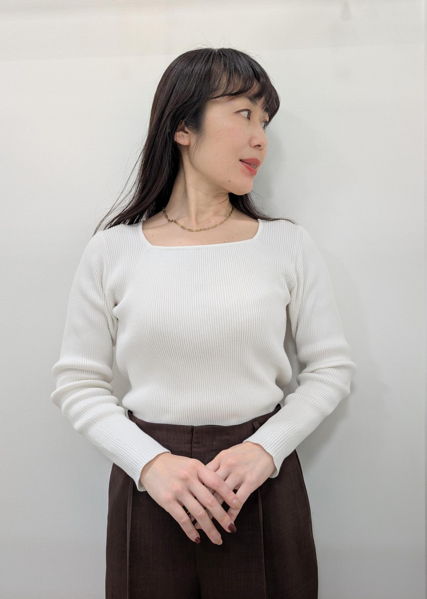 ROPÉ PICNICスクエアネックリブニットオフホワイト / F¥4,499レビューアームホール、身幅ともにゆったりめです。