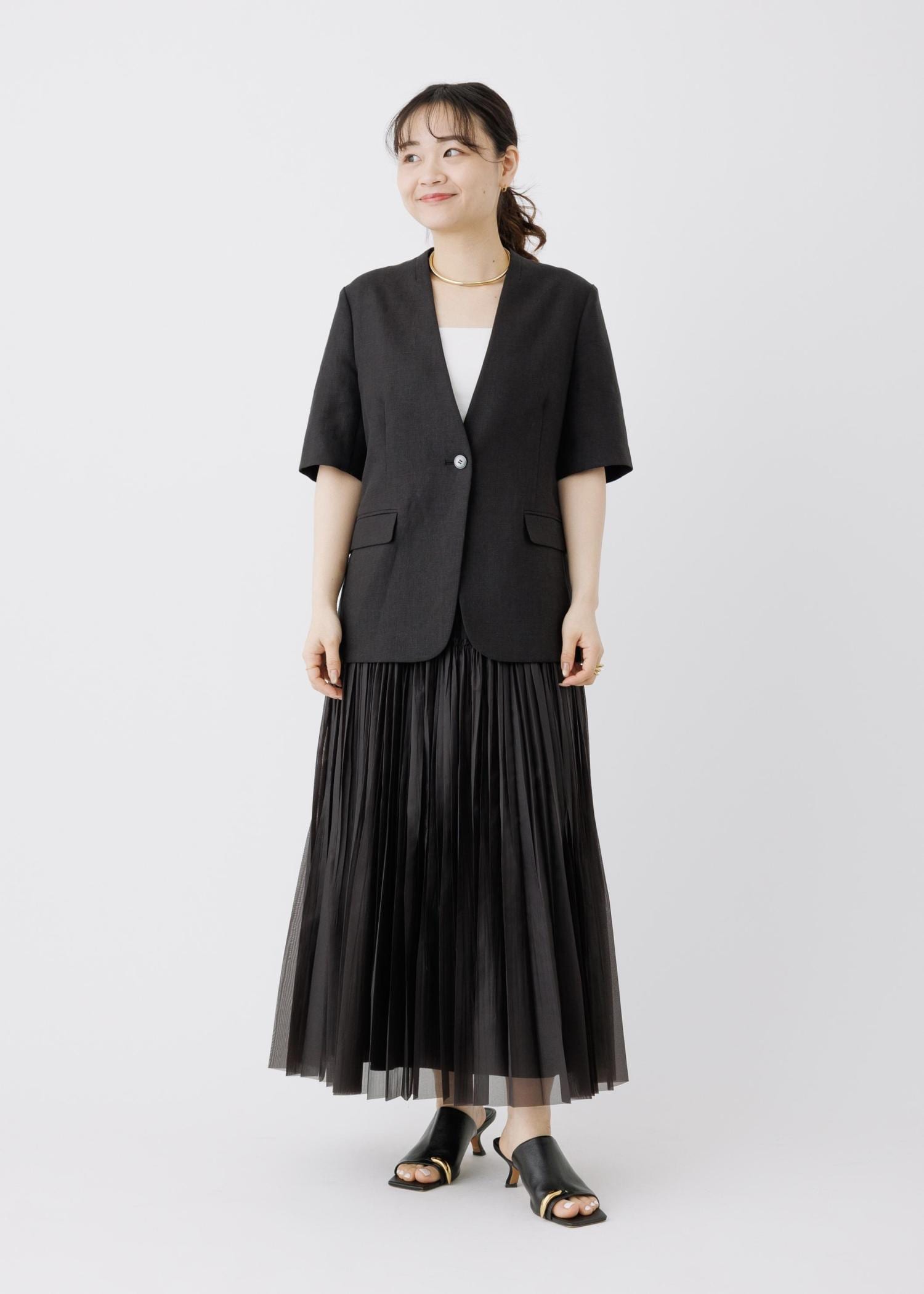 予約ROPÉリネンハーフスリーブノーカラージャケットブラック / 38¥33,000レビュー38サイズを着用しています。
