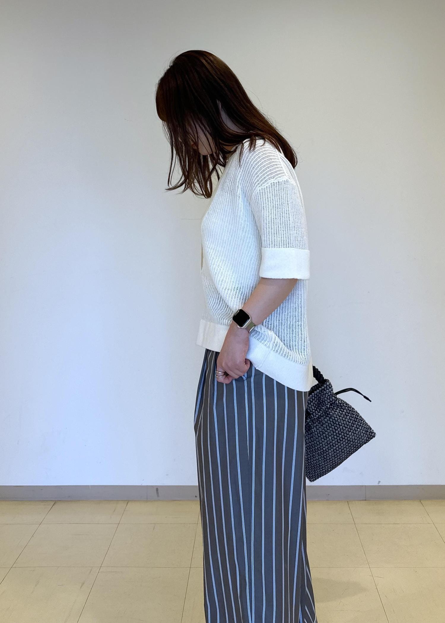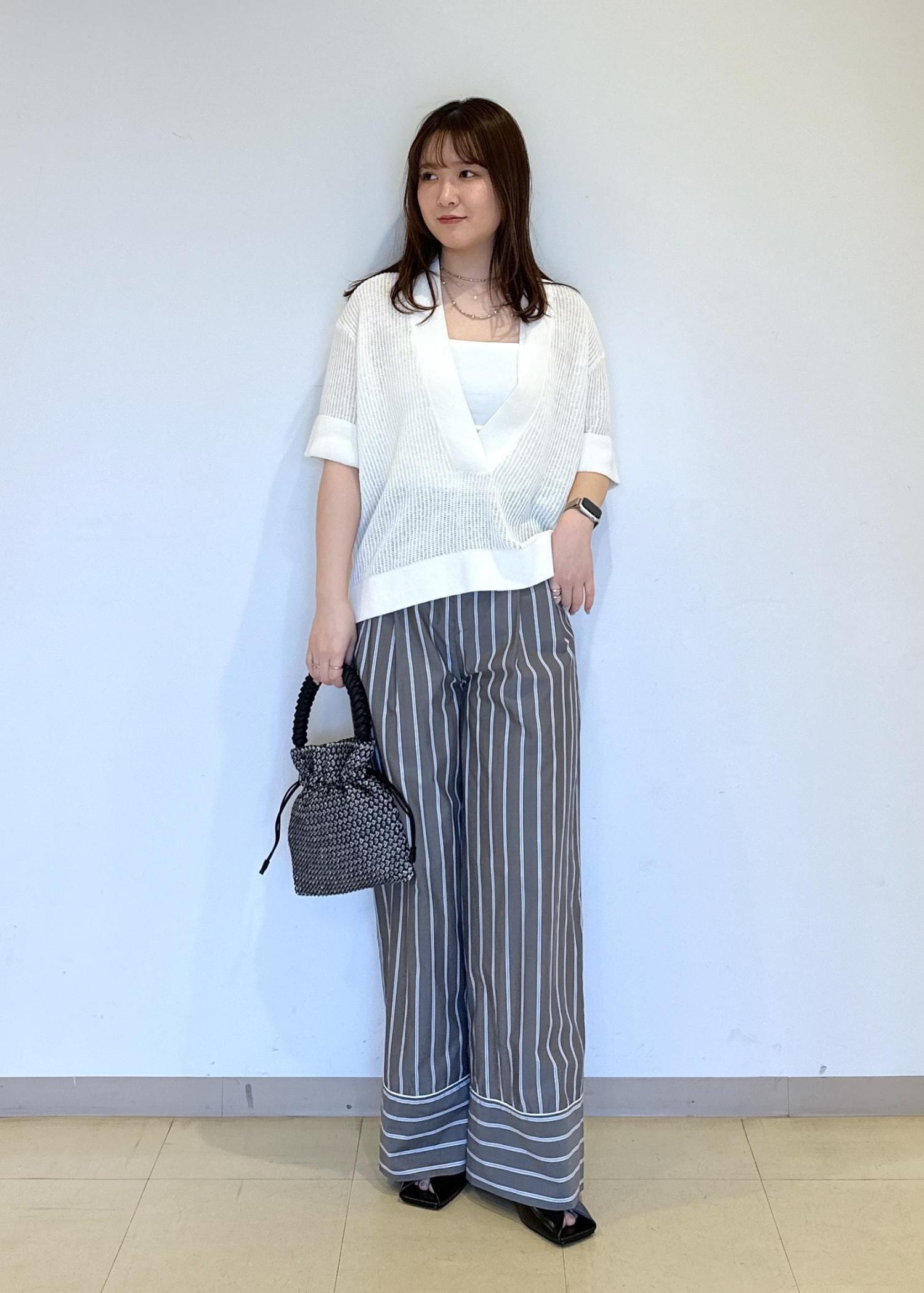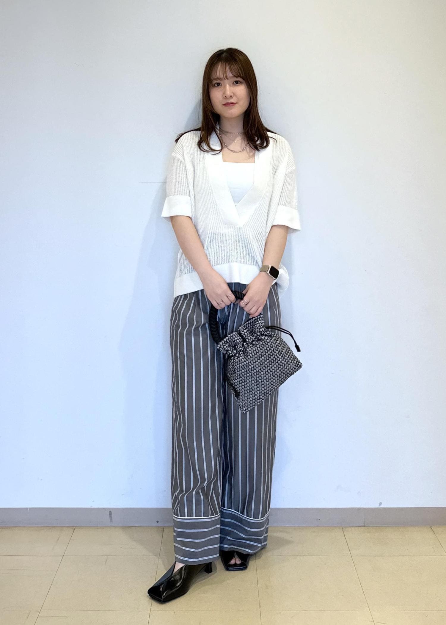 ADAM ET ROPÉ FEMMEストライプシャツスラックスグレー / 36¥22,000レビュー36を履きました!お腹周りが少し気になりましたが許容範囲内です。軽くてとても履きやすいです