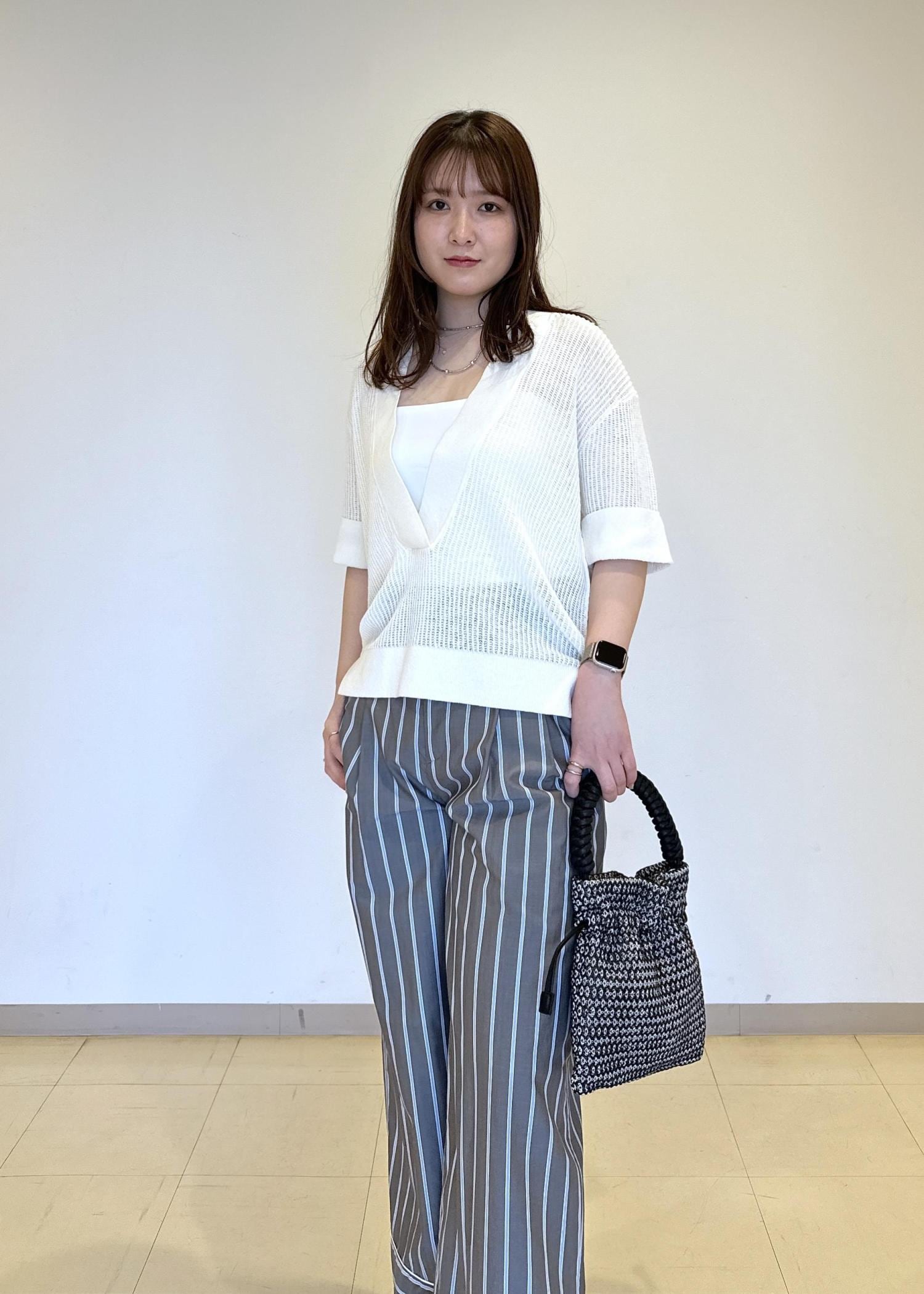 ADAM ET ROPÉ FEMMEリネンブレンドニットプルオーバーホワイト / F¥17,600レビューゆるっとこなれ感のでるトップス。首元は深いVなので中にブラトップなど入れるとスッキリ着ていただけます