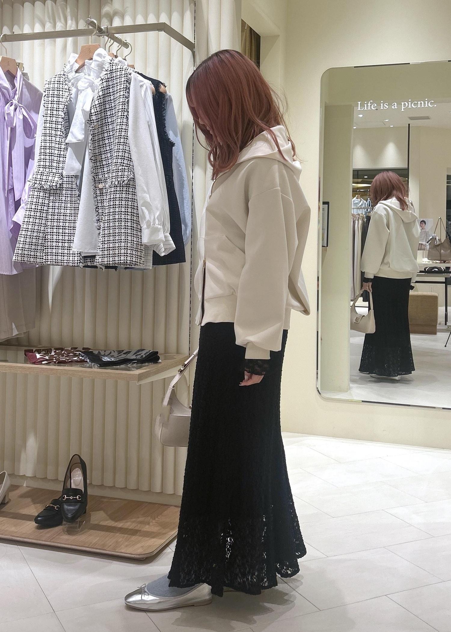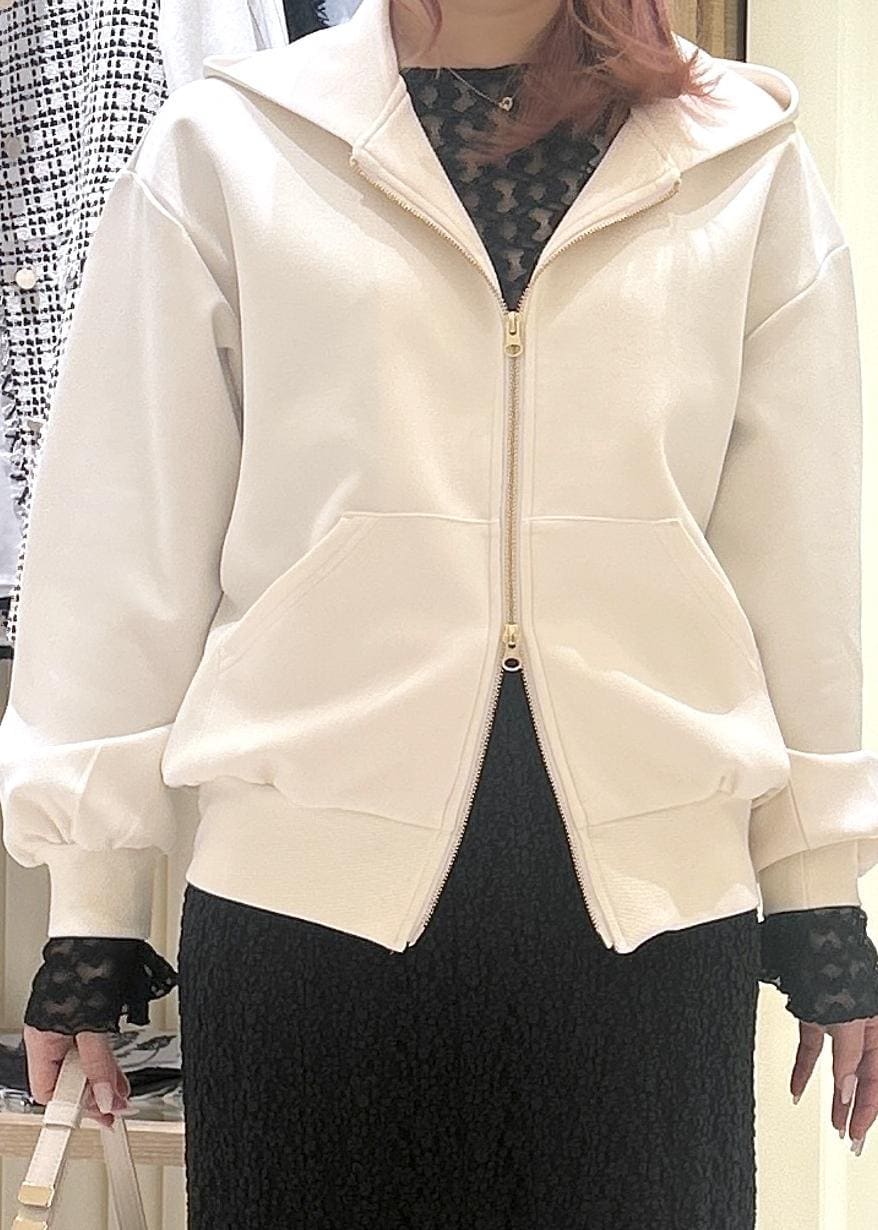 ダブルジップになっているので上下少しずつ開けて着ていただくと抜け感のあるコーデになります。 -