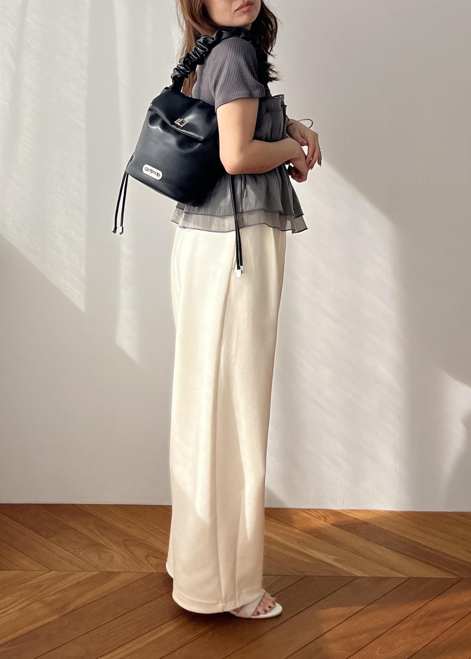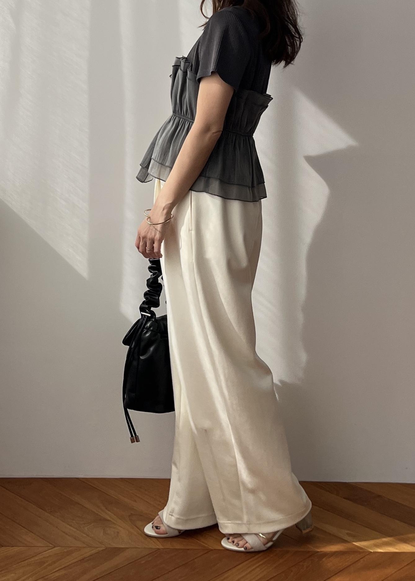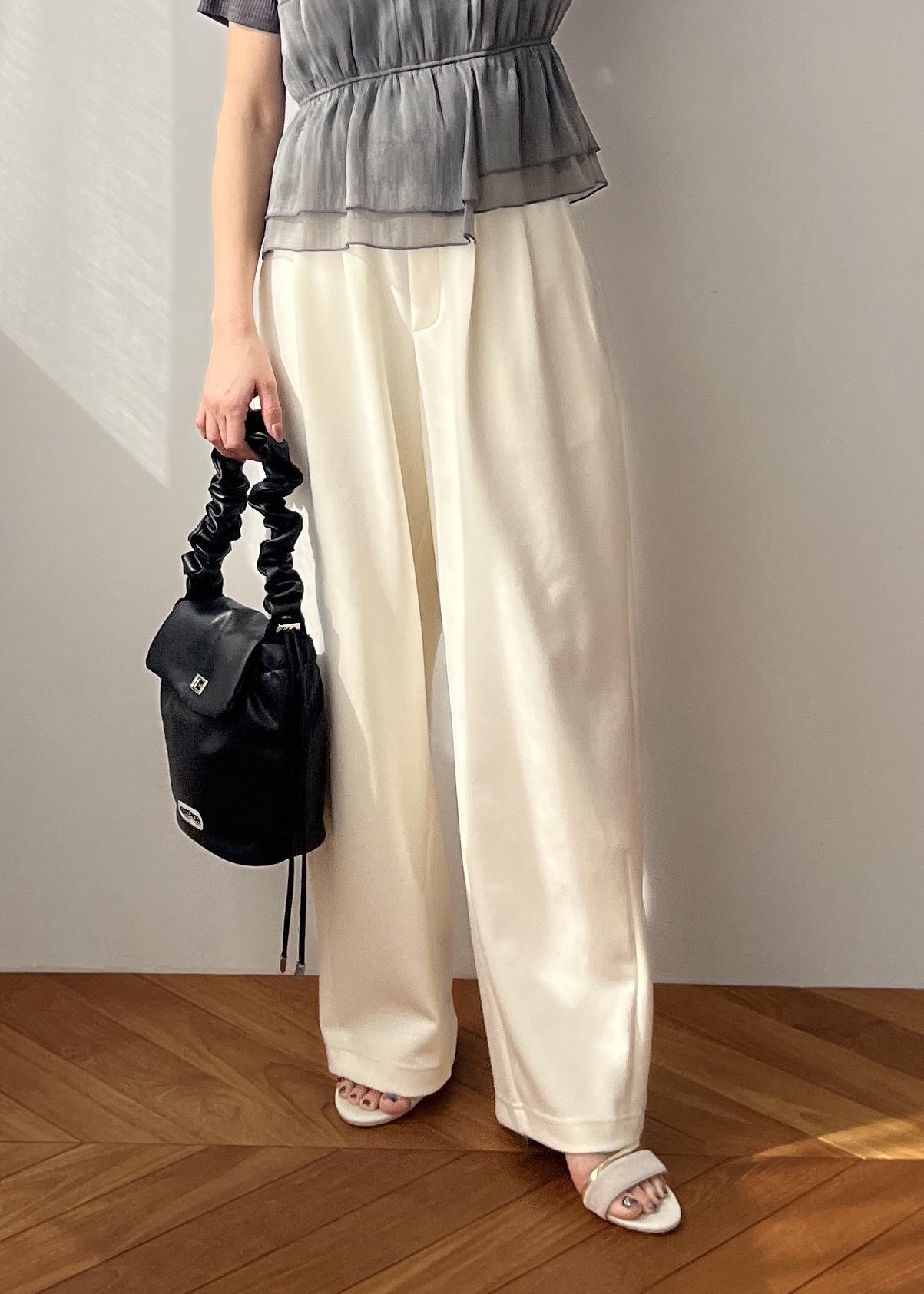 VISカットカーブスラックスパンツオフホワイト / F¥6,589レビュー152cmでFサイズ着用し、着丈はペタンコ靴ては床についてしまいました。5cmヒールで床ギリギリです。柔らかいモチモチ素材のパンツは楽ちんながらもキチンと見えもしてくれる優秀パンツ。カーブシルエットでボリュームがありながら裾にむかって細くなるのですっきり見えも◎ウエストはゴムでややゆとりがありましたが落ちることはありませんでした。ウエスト折り返して着用してもデザインに影響はありませんでした。