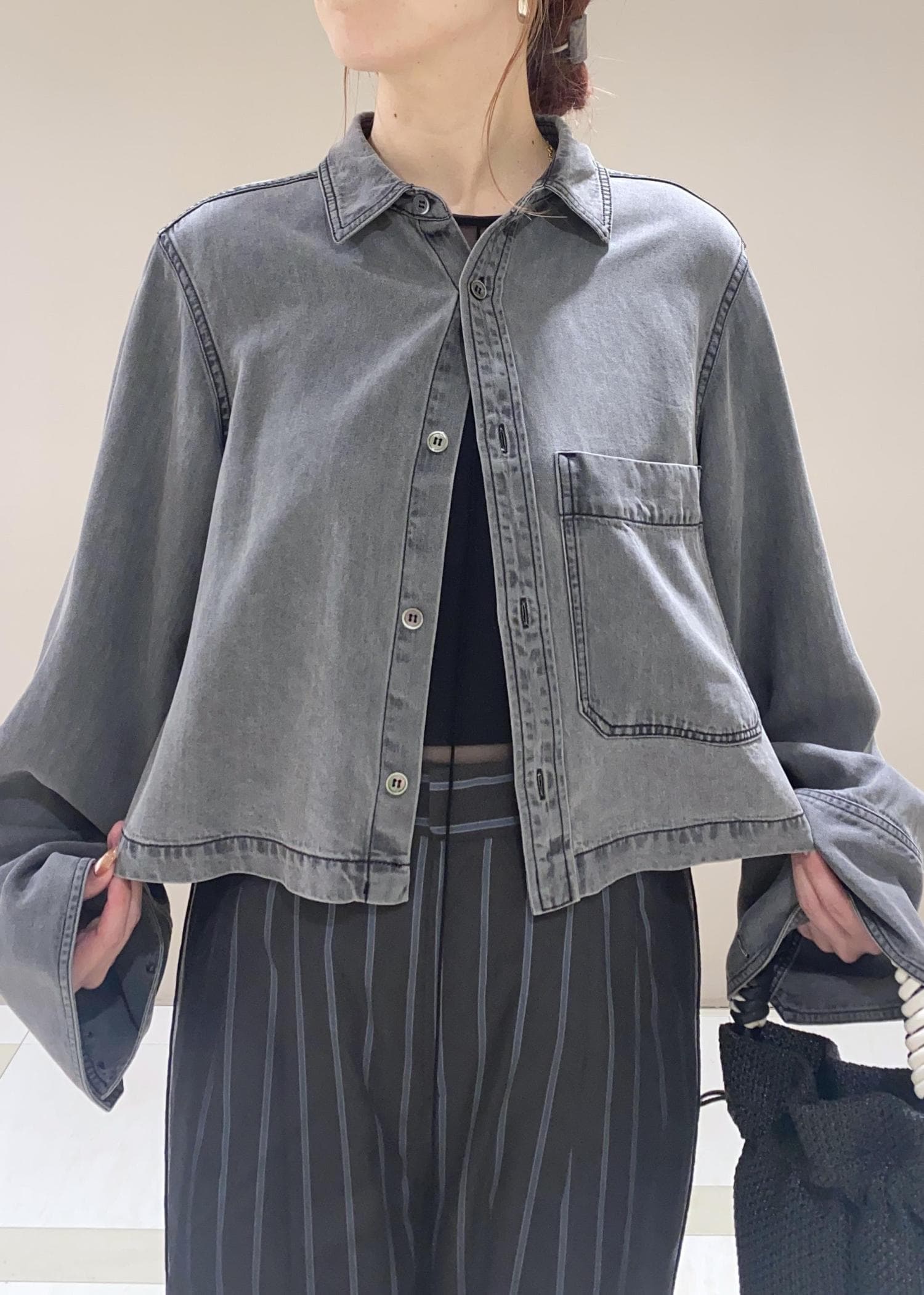 クロップド丈でスタイルアップ効果抜群のデニムシャツ。