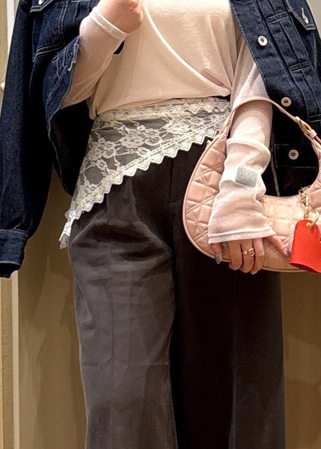 VIS三角レーススカーフオフホワイト / F¥1,639レビュー頭にも腰にも使っていただける大きさで、レイヤード風にも使えるのでコーデが華やかになります!