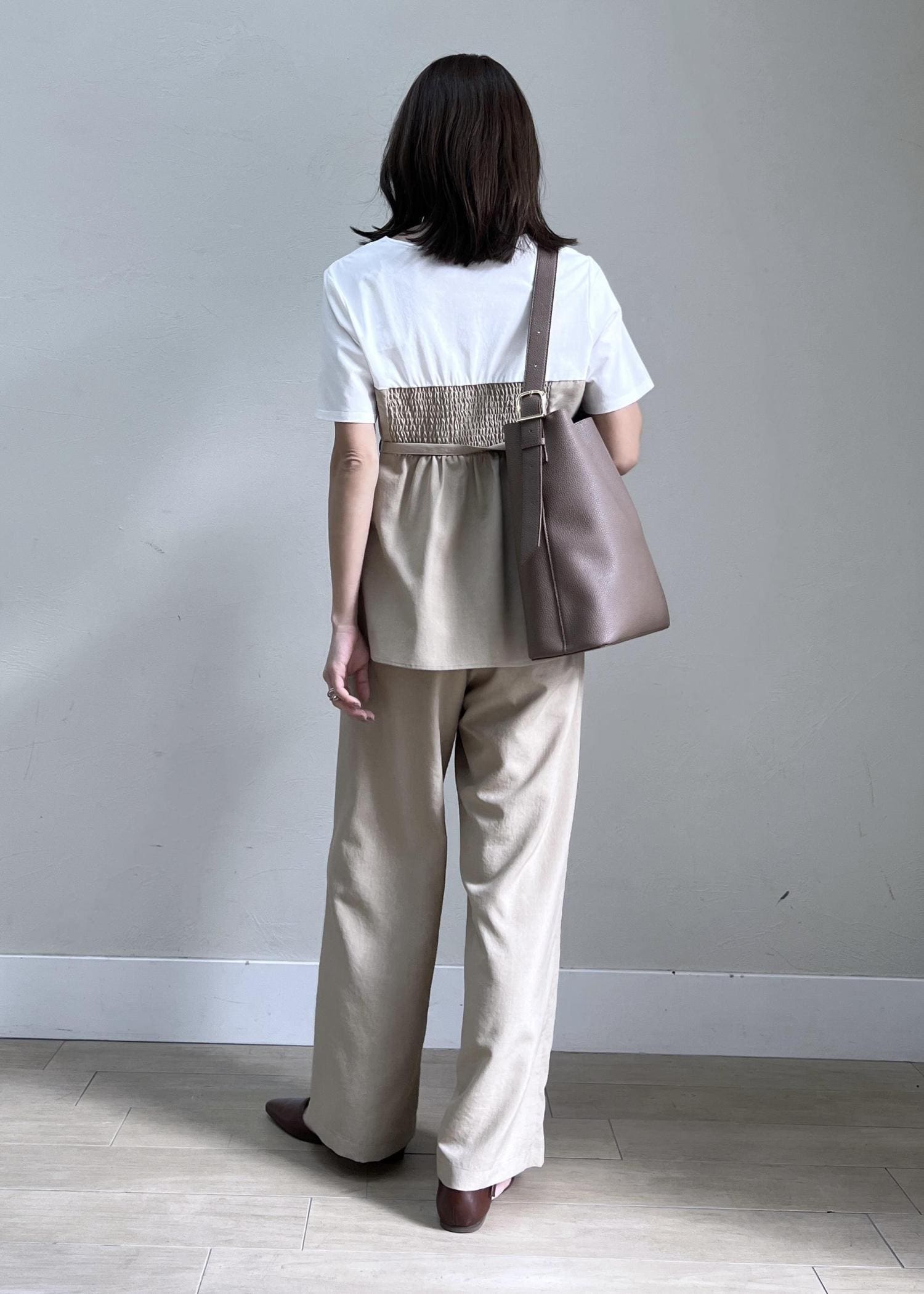 柔らかくサラッとした肌触りで、カットソーとリネンライクの生地のドッキングデザイン。