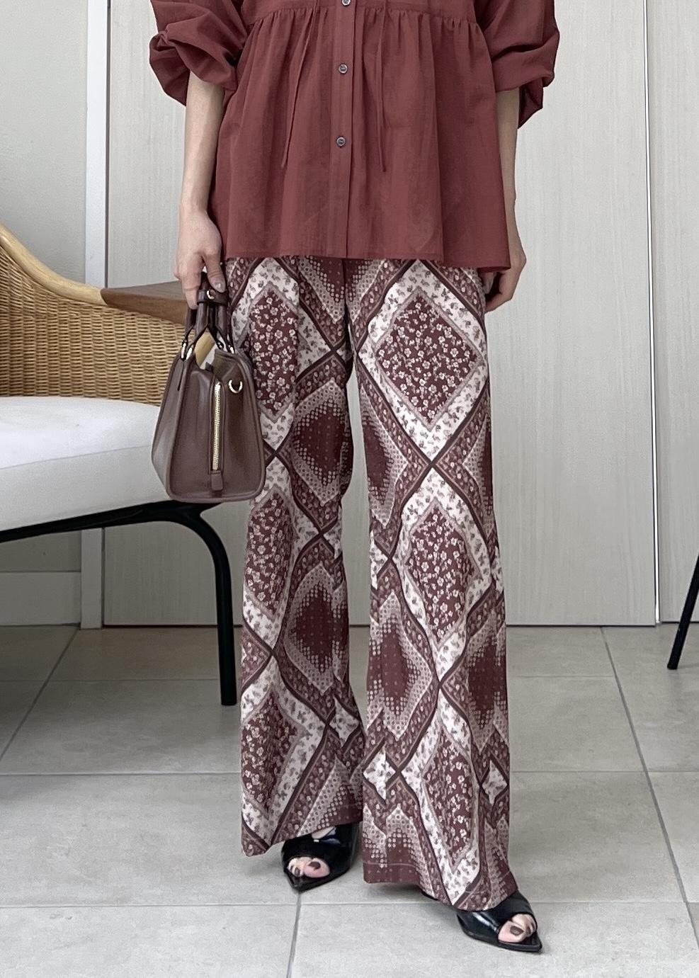 ROPÉ PICNICスカーフ柄イージーパンツブラウン系 / M¥6,996レビューさらっとした肌触りのポリエステル素材で、裏地付きなので1枚で安心して履ける素材感。