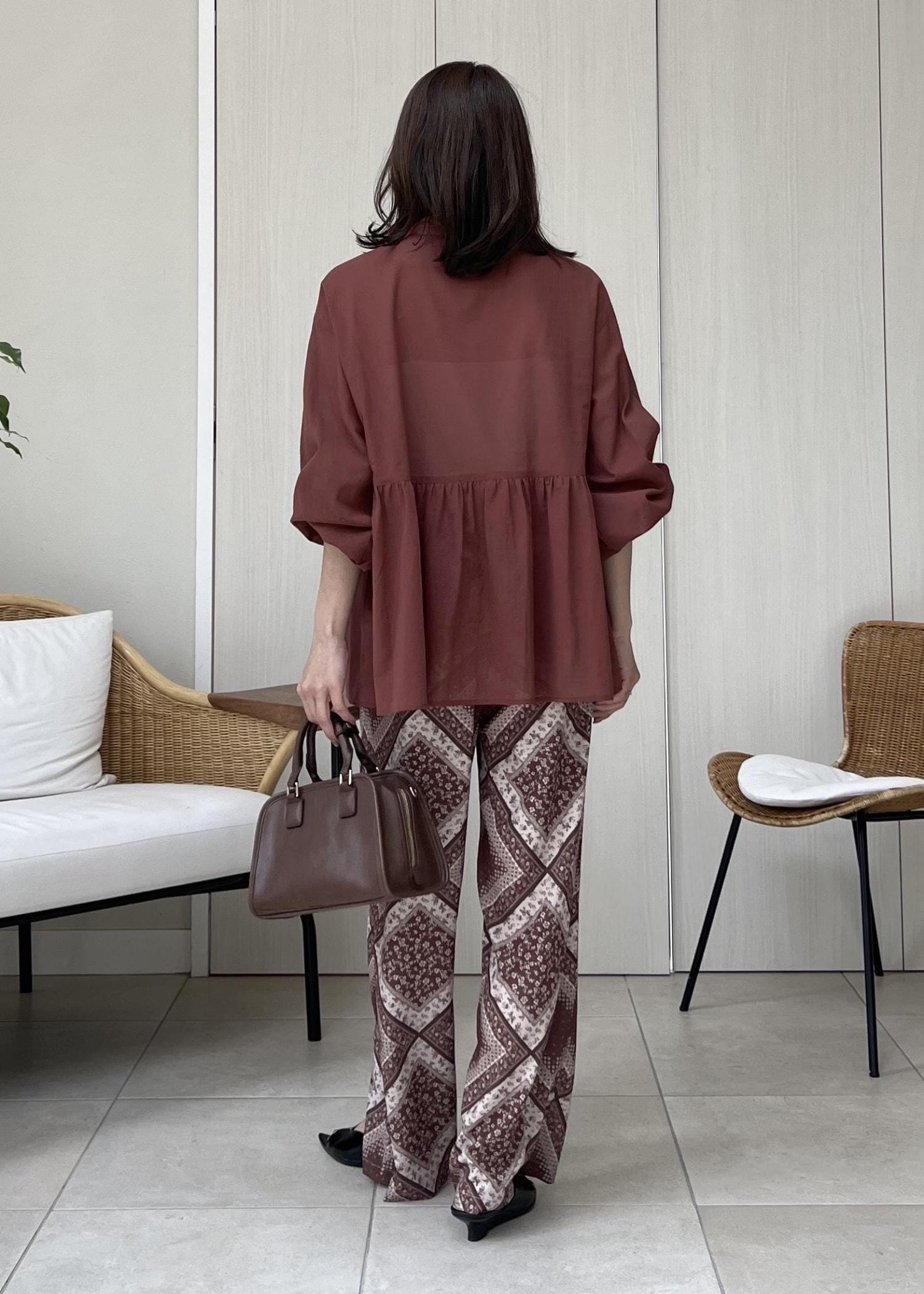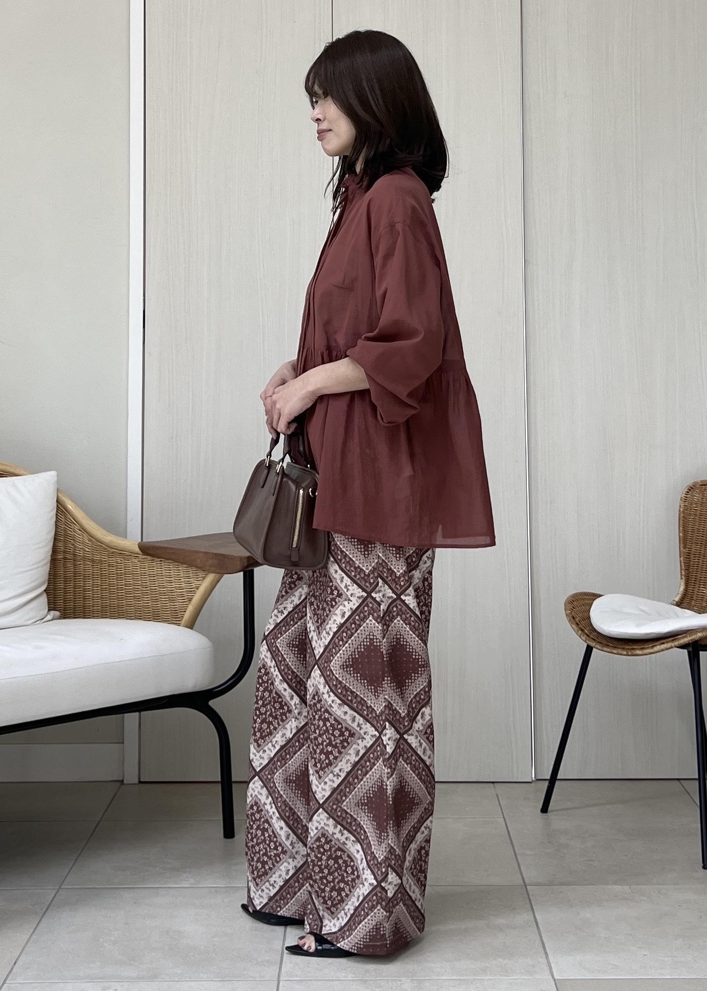 ブラウンカラーでまとめて大人カジュアルなスタイリングの完成です。