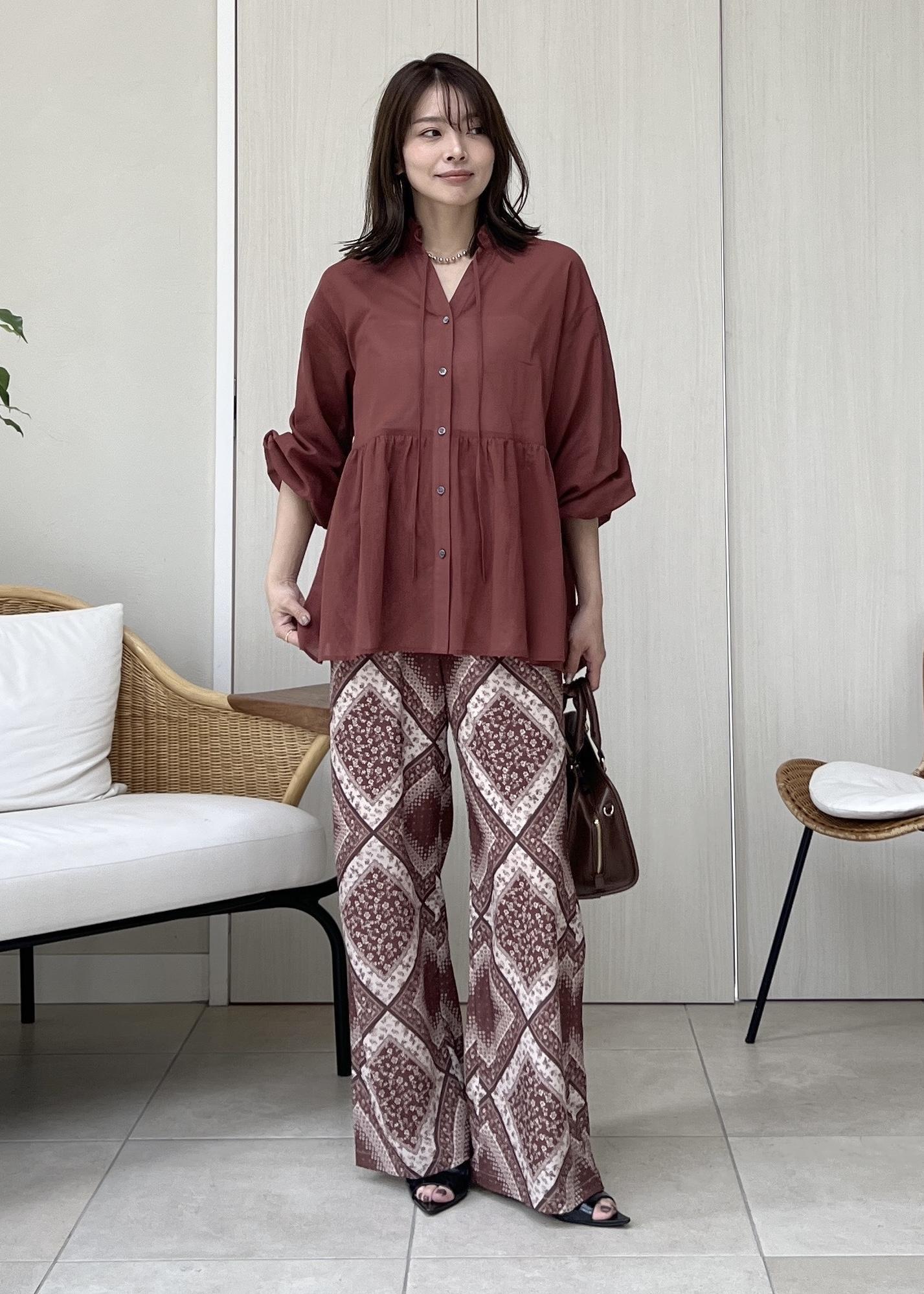 ぺプラムシャツの春夏パンツコーデ