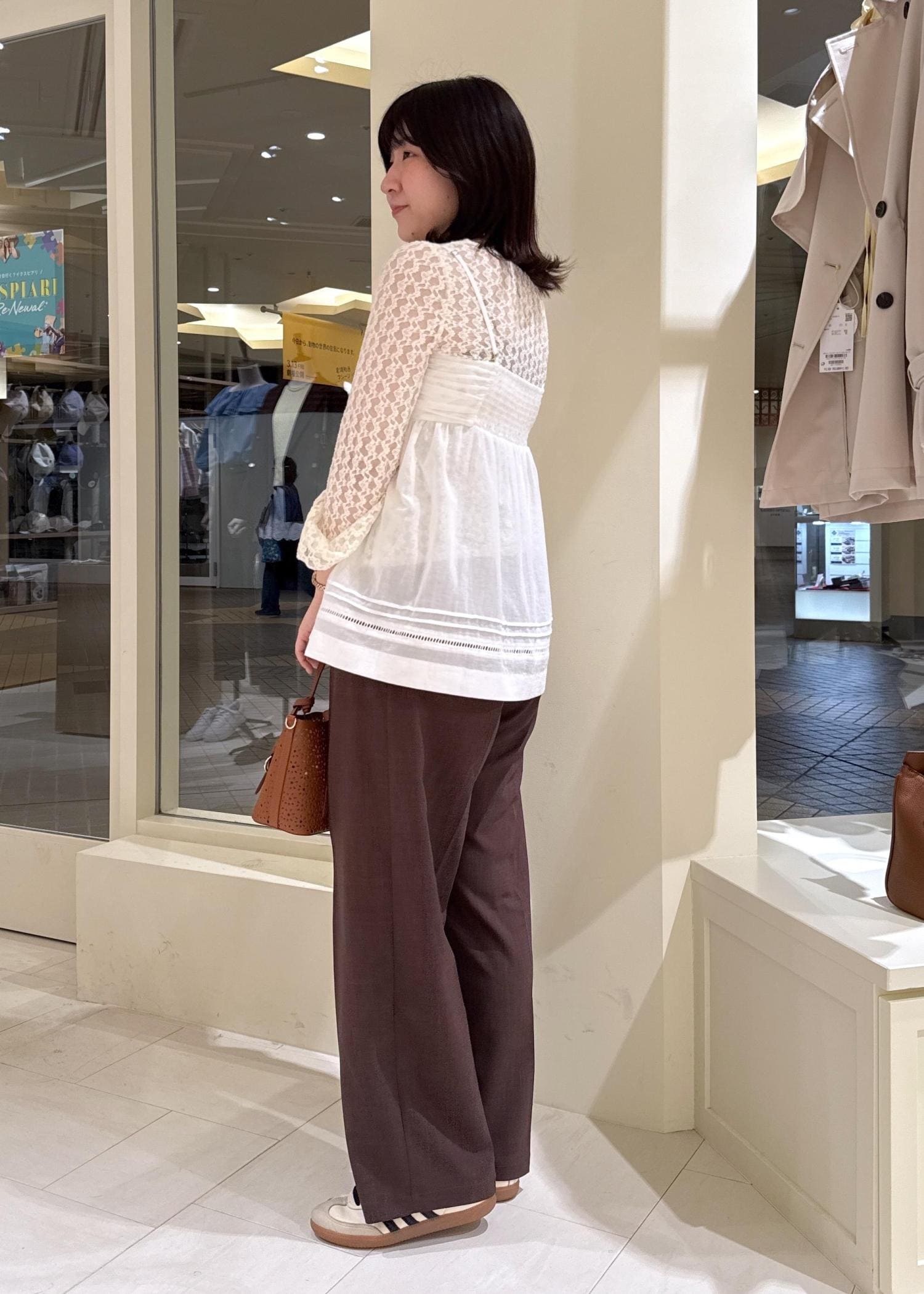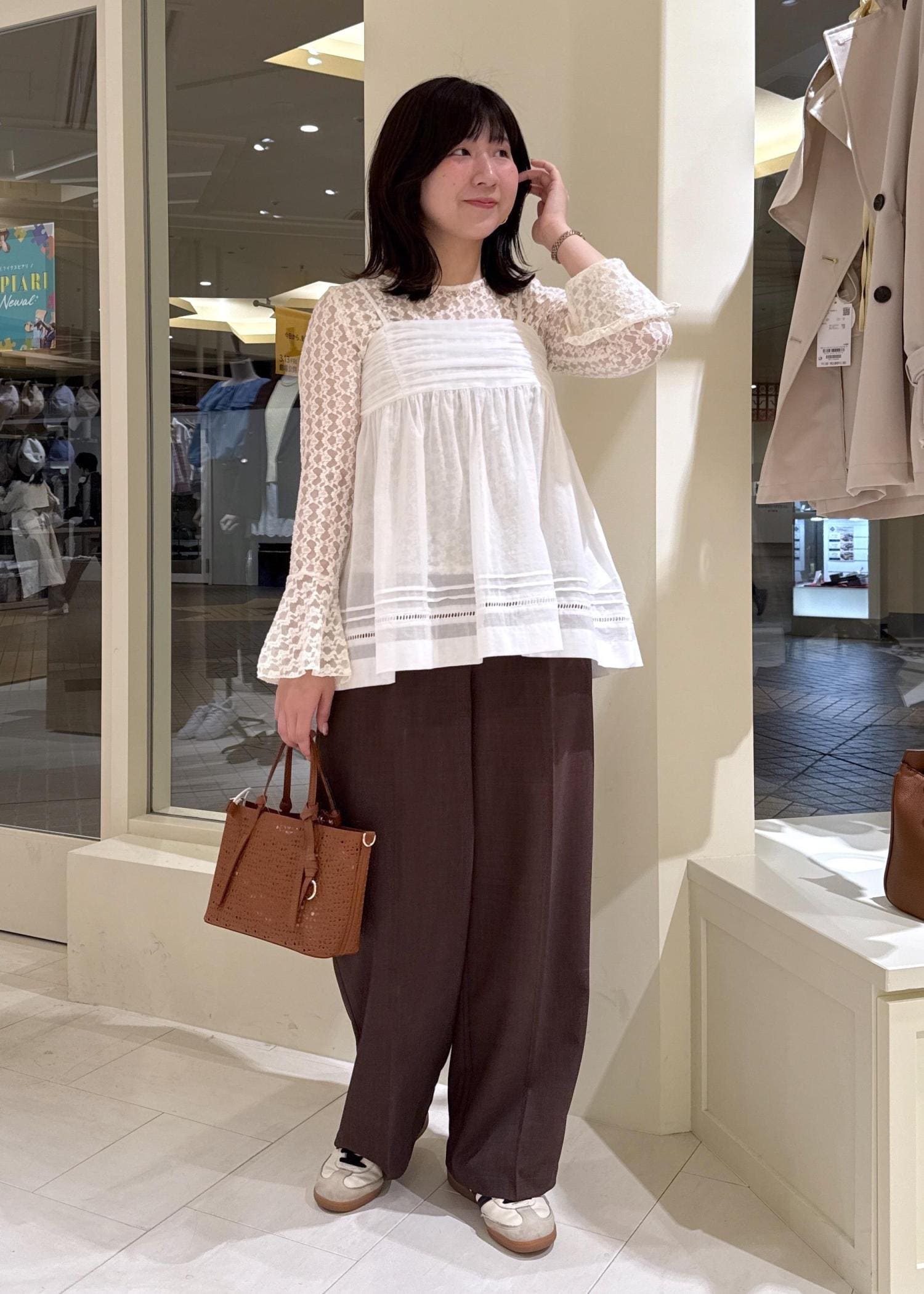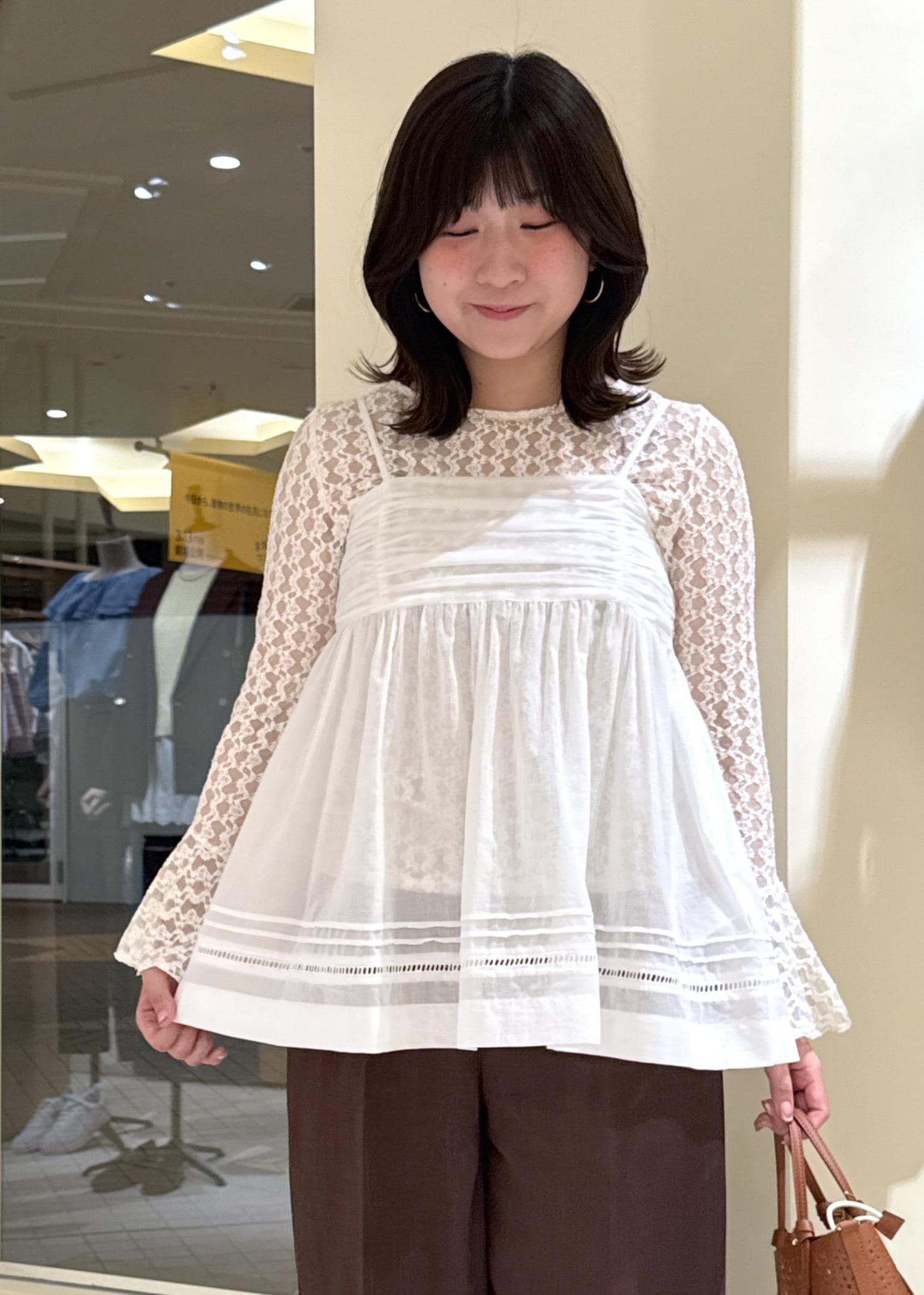 白なので透け感はありますが、素材特有ですし軽やかな印象になるので透け感は気にせず楽しむのが◎です✨️
