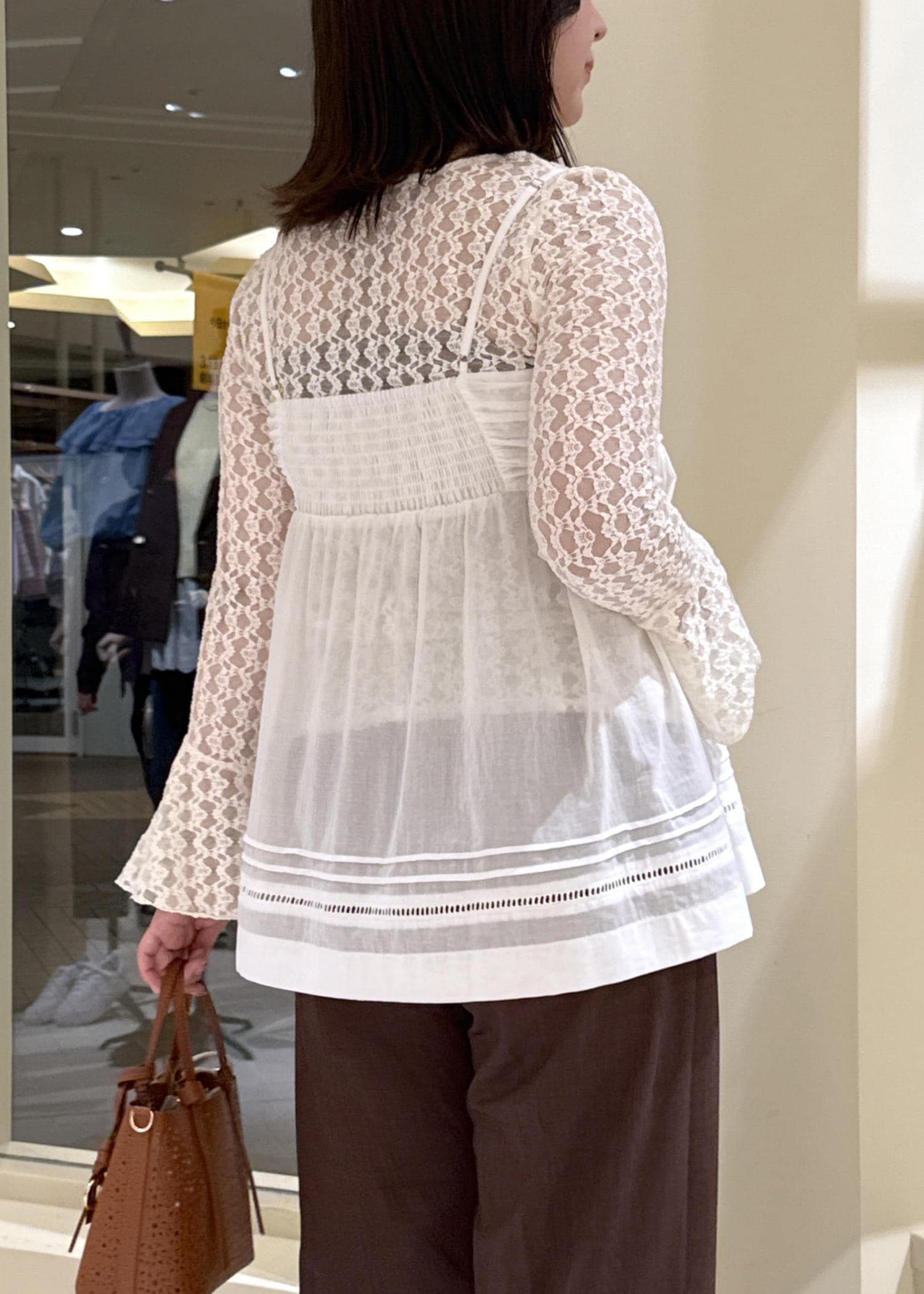 ROPÉ PICNICベルスリーブレースカットトップスキナリ / F¥3,993レビューストレッチは効いていますが、思ったより伸びないので私が着ると二の腕のムチッと感が気になりました。