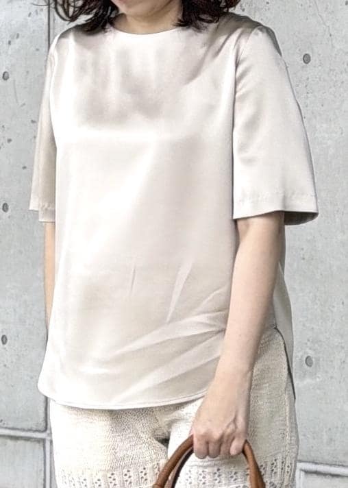 ROPÉドレープサテンティーブラウス/セットアップ対応・イージーケアベージュ / F¥20,900レビュー身長161㎝で普段38サイズを着用しています。