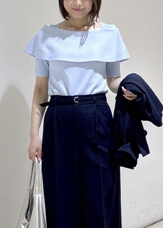 鎖骨がきれいに見えるケープ型で一枚で着映えしてくれるトップスです♪
