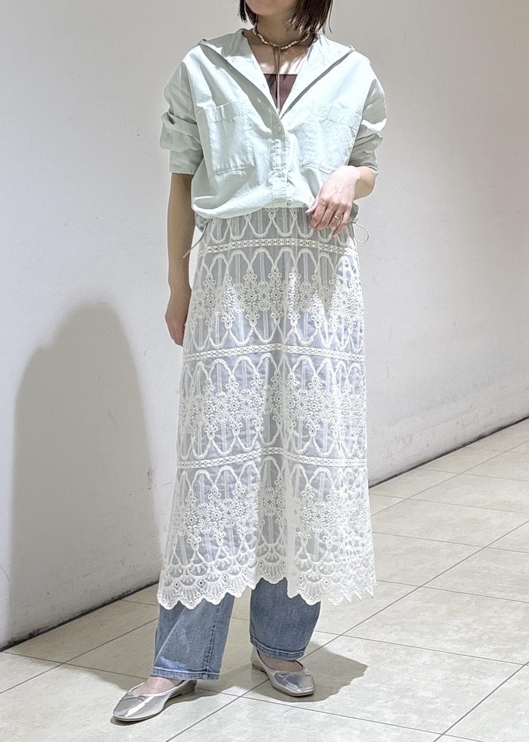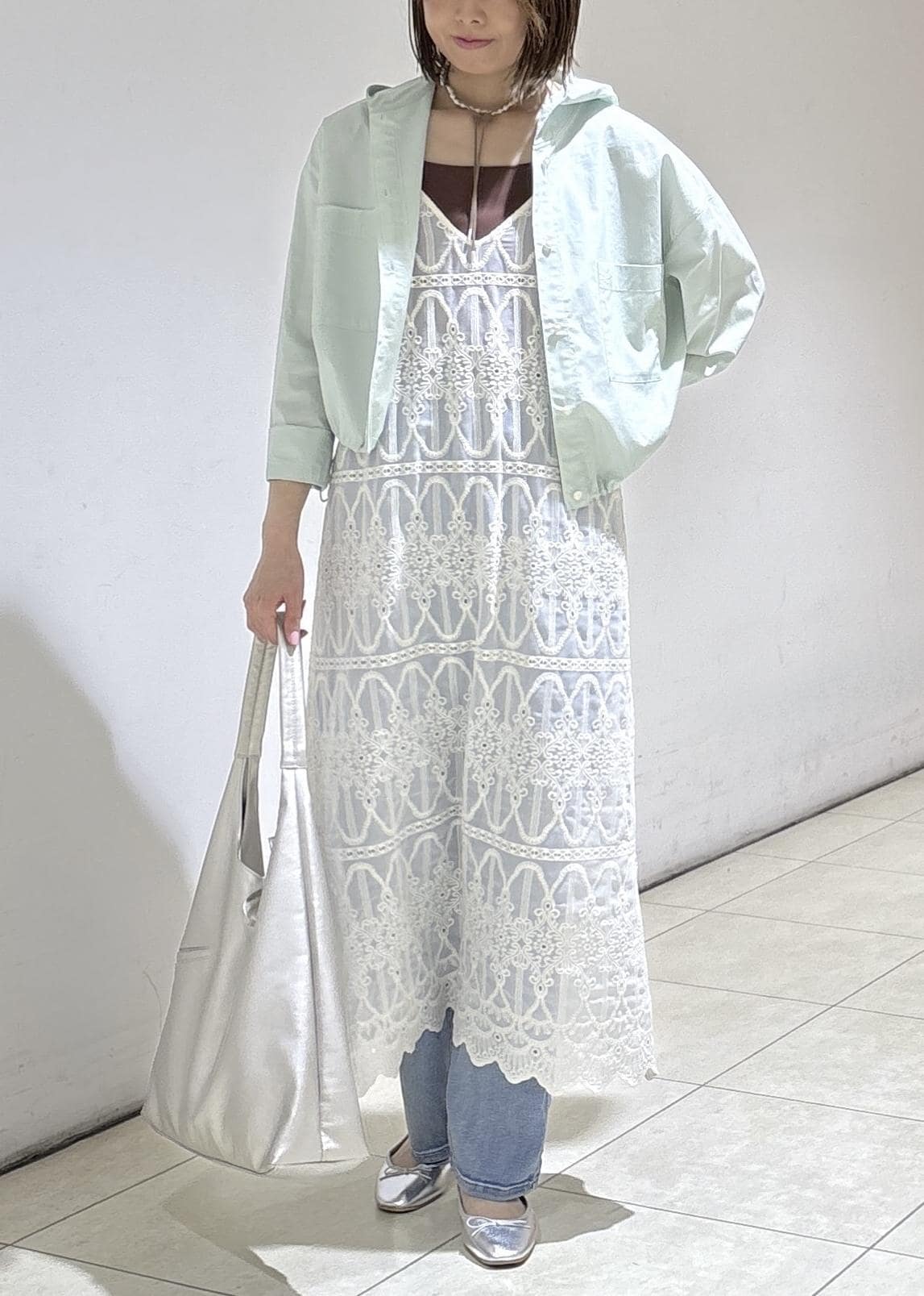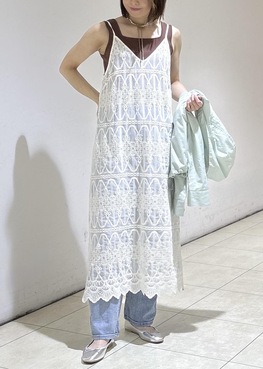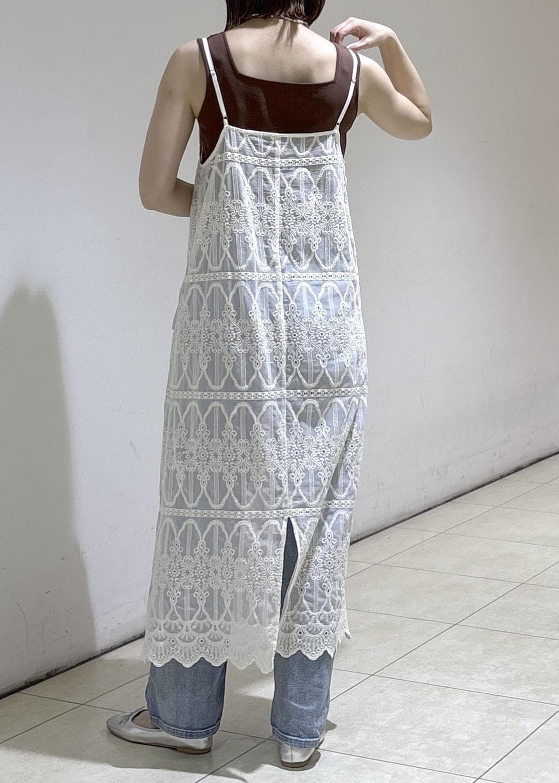 レースキャミワンピのレイヤードに合わせた