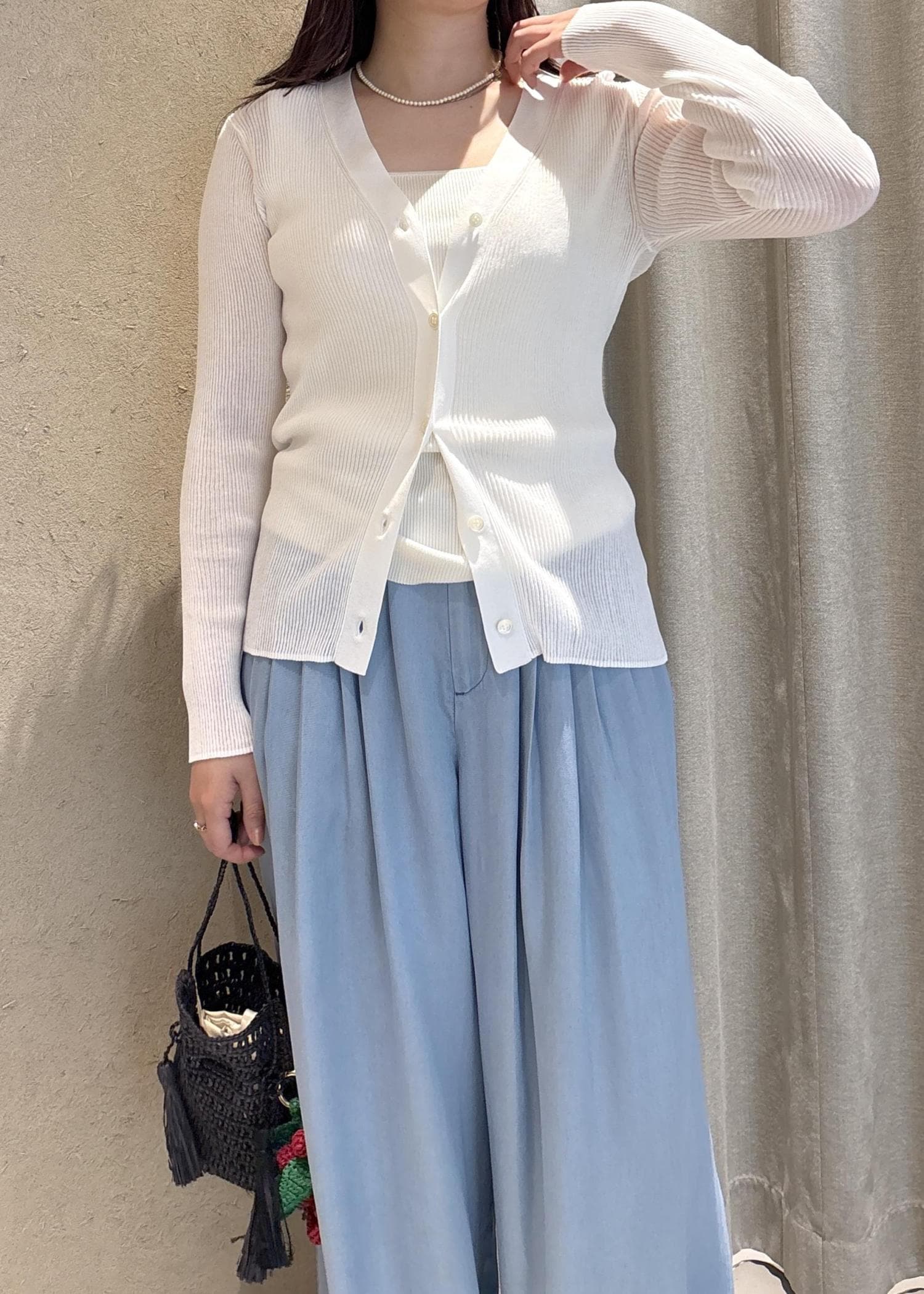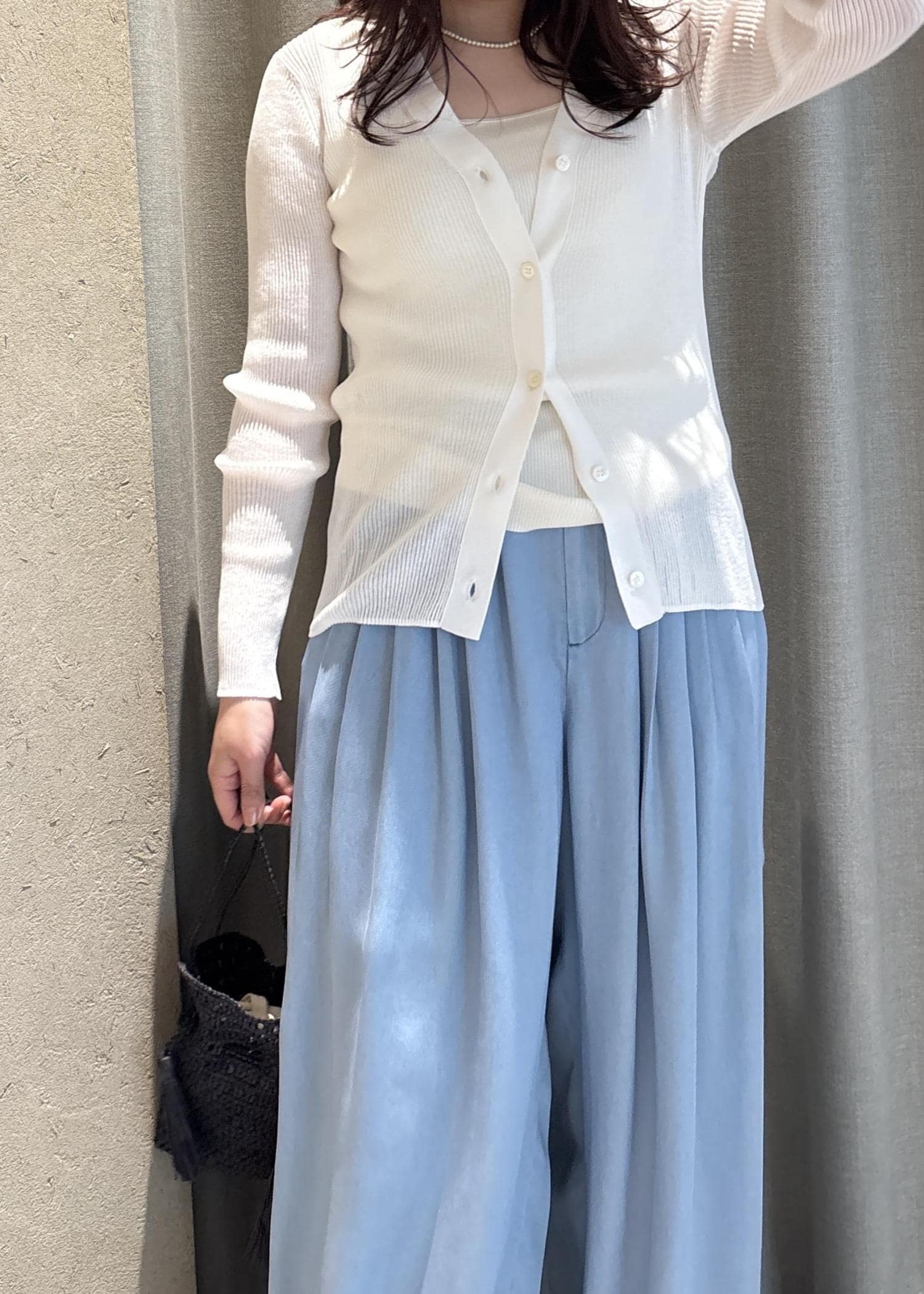 SALON adam et ropé【WEB限定】シアーリブニットVネックカーディガンオフホワイト / F¥17,600レビューコンパクトな見た目ながらもリブなので余裕感のある着心地。ちくちくしたりもなく、初夏くらいまで使えそうです!