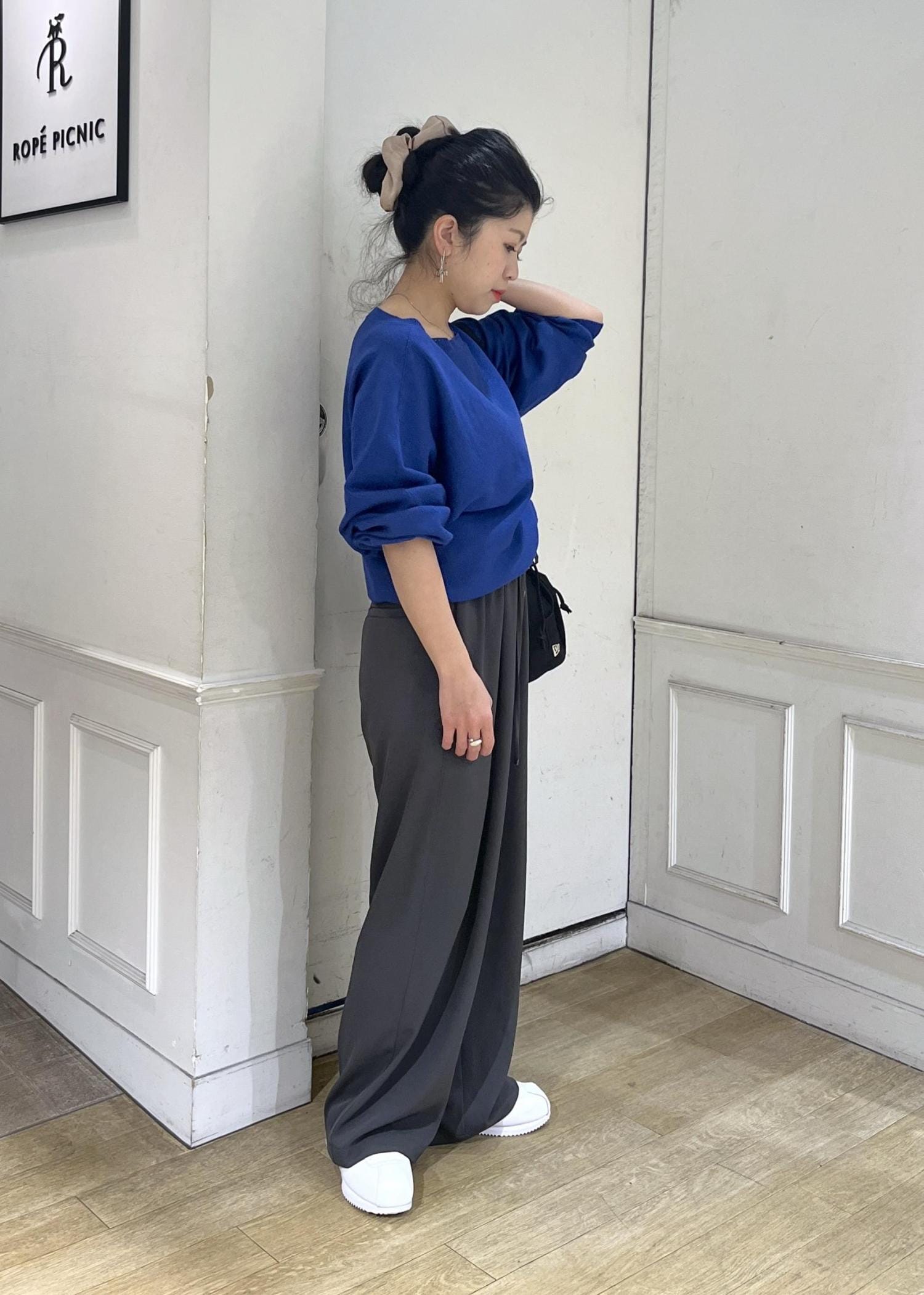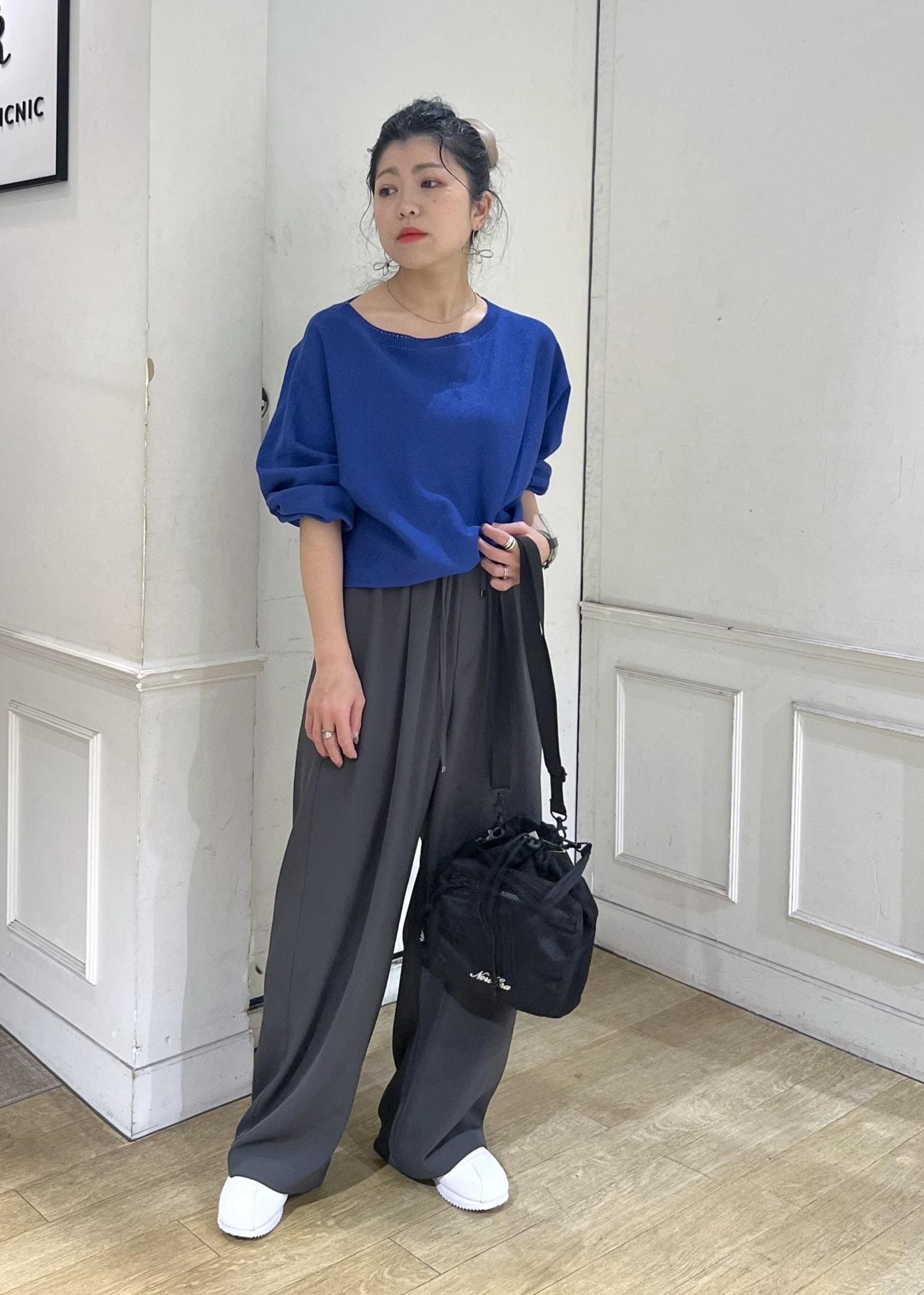 見栄えのするブルーニットを主役にリラックス感のあるゆったりシルエットのアイテムでスタイリング☺︎