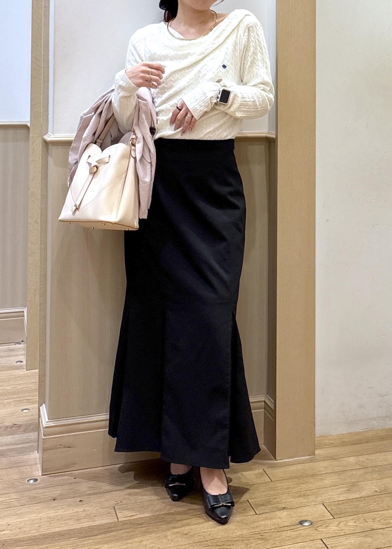 ウエストはSサイズでも大丈夫そうでしたが、156センチでヒールを履くとしっかり足首が見えるので、長め丈で足長効果を出したい方はMでもいいサイズ感でした! -