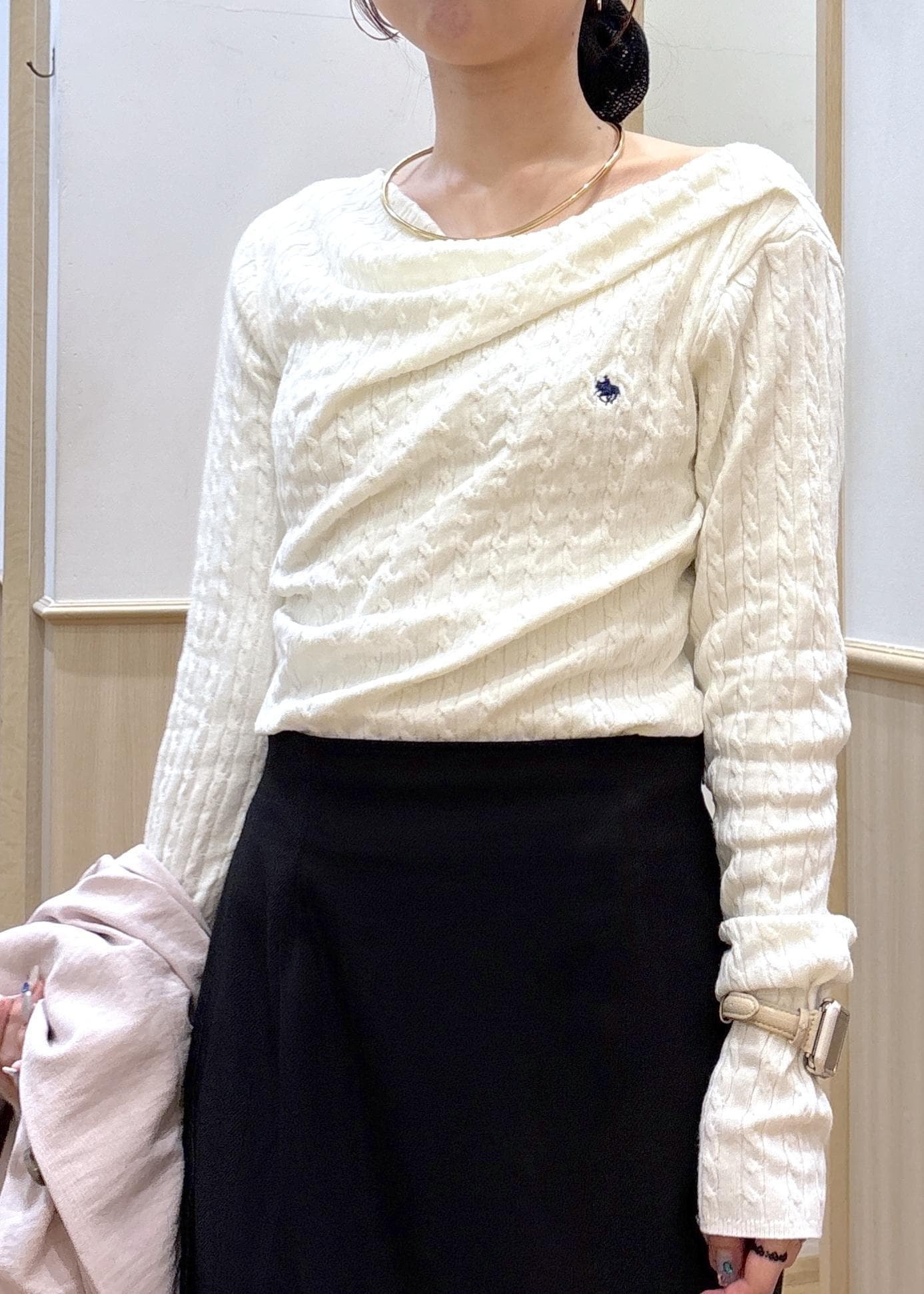 VIS【POLO BCS】VIS別注ケーブルドレープトップスオフホワイト / F¥6,930レビュードレープデザインが可愛いニットです。