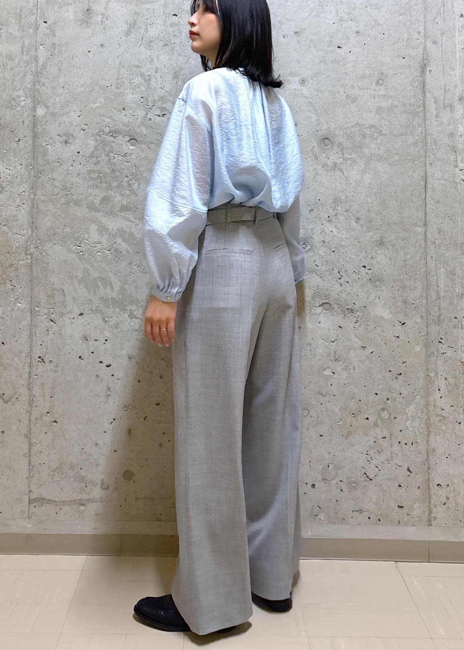 ROPÉノンミュールジングウール ストレートワイドパンツ/セットアップ対応ライトグレー / 38¥27,500レビュー身長164㎝、普段38サイズを着用。