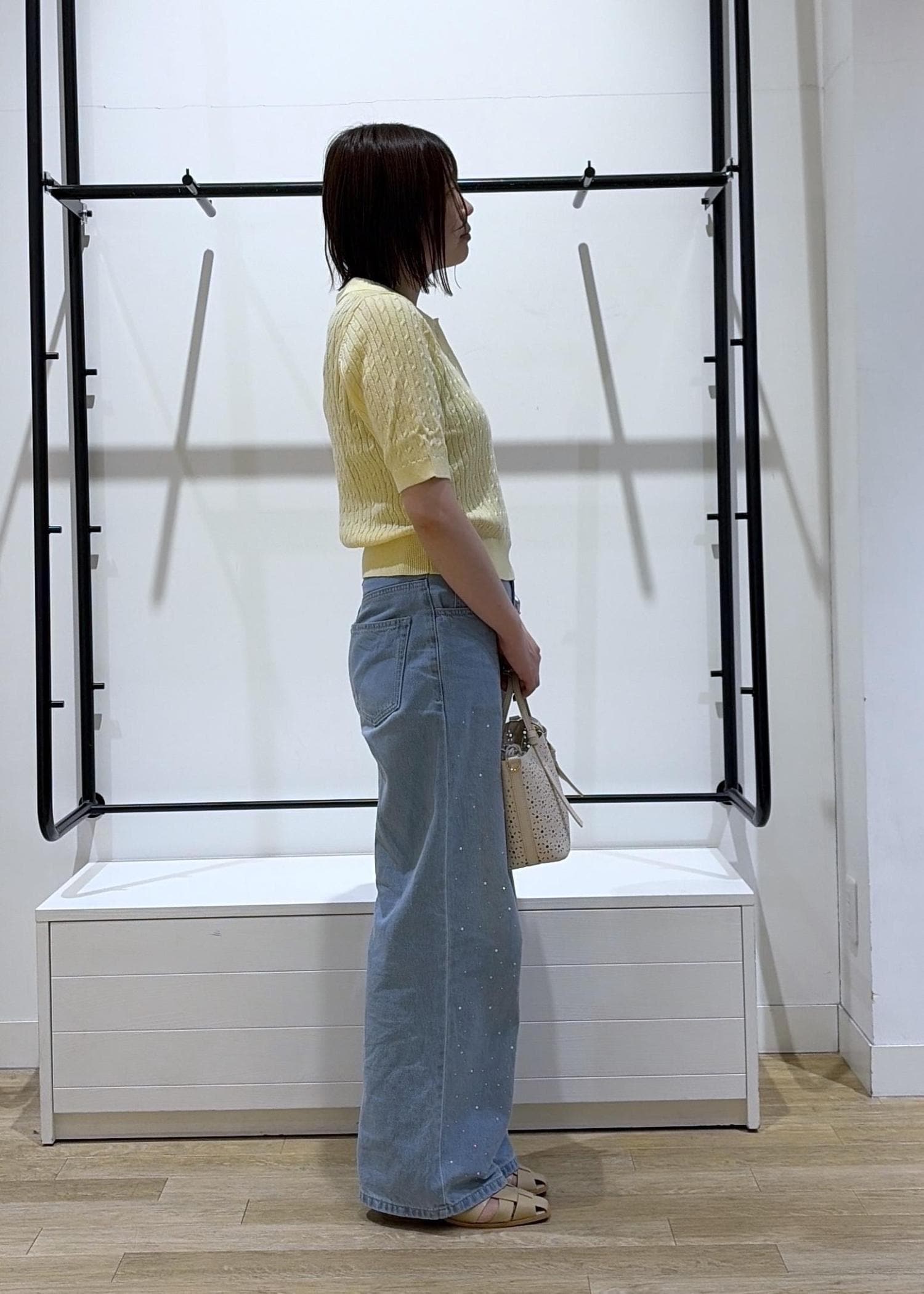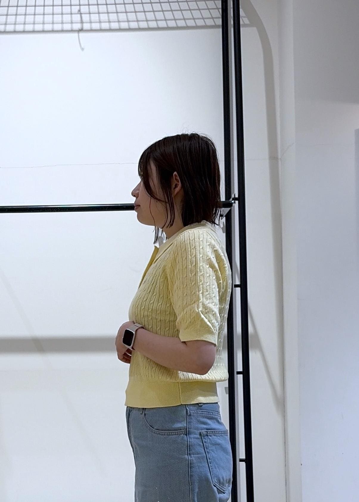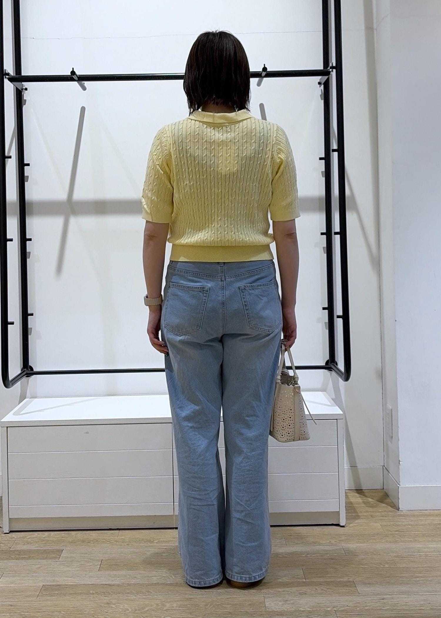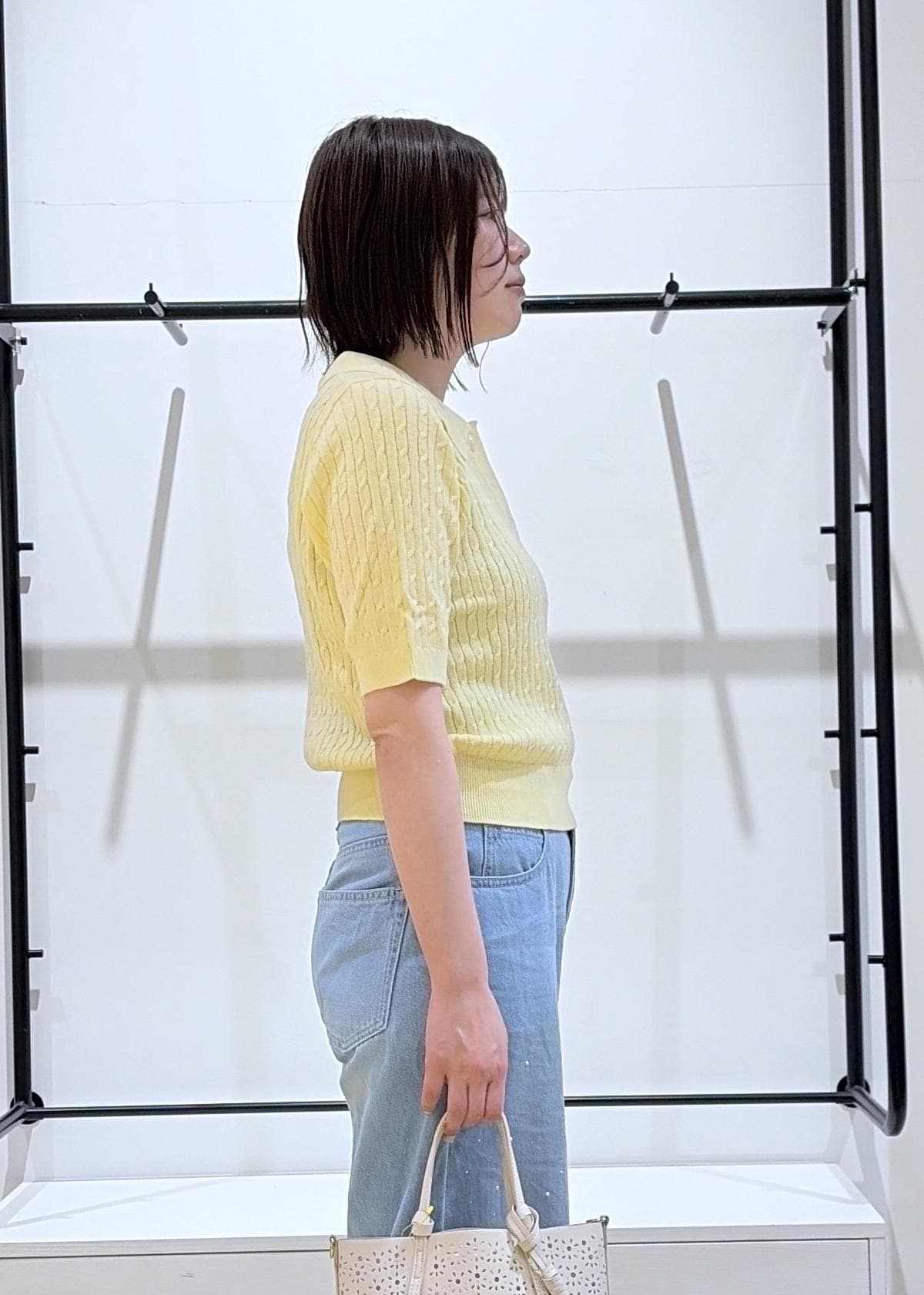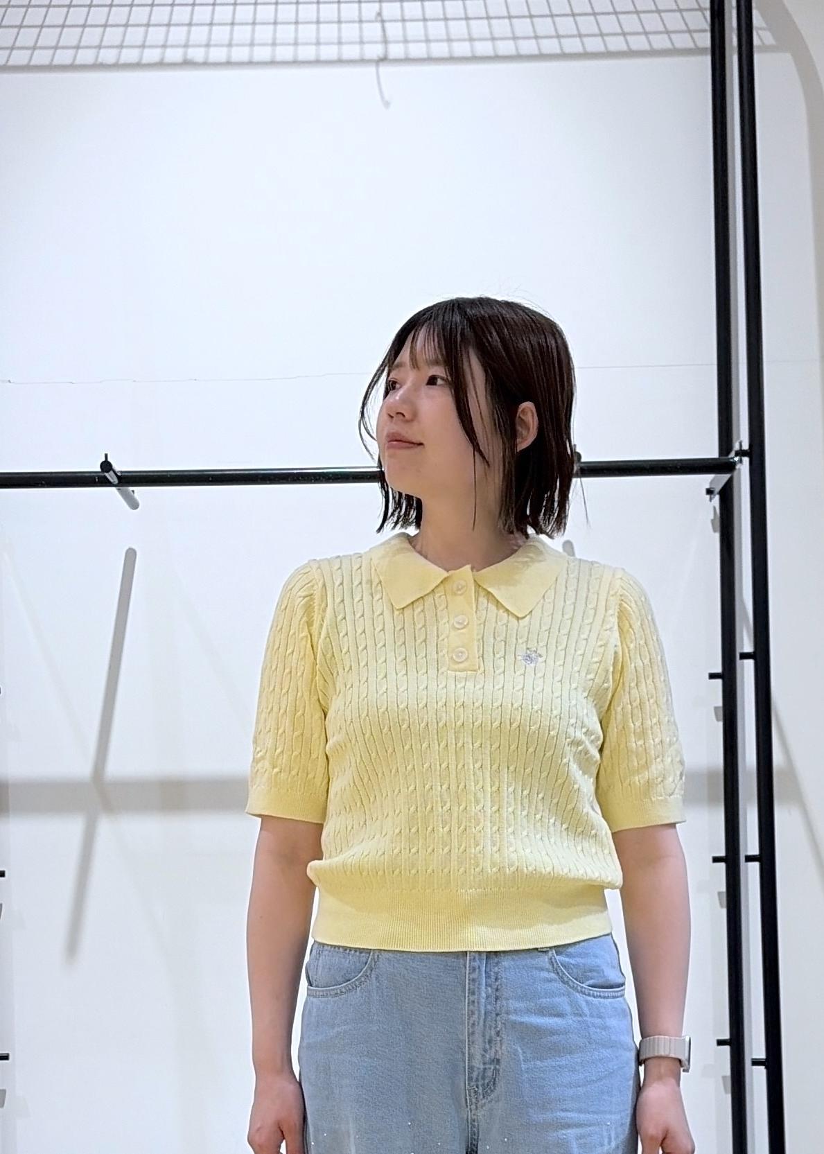 今回は店頭に登場した瞬間即完売した、大人気のポロカラーケーブルニットを着用しました♩