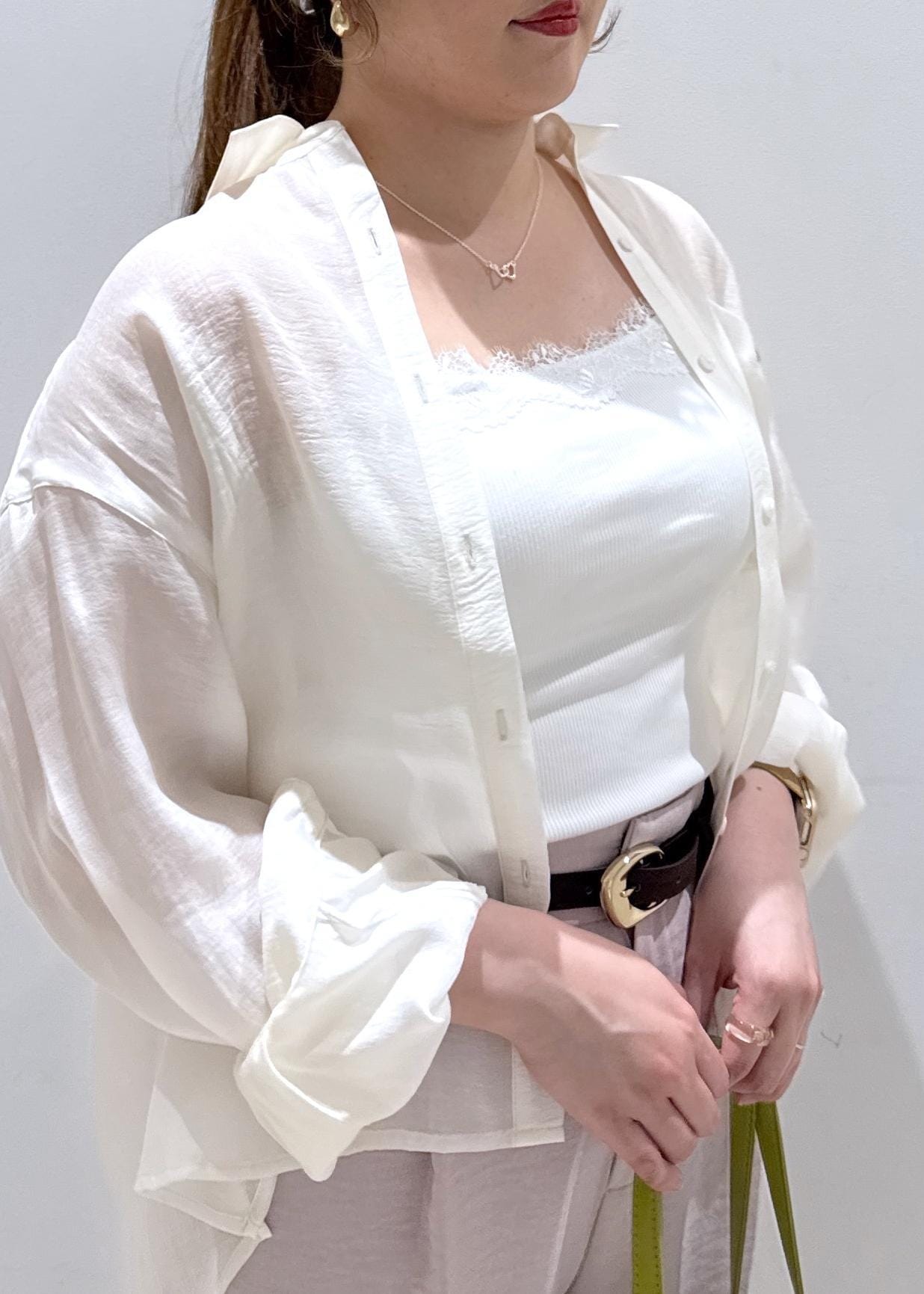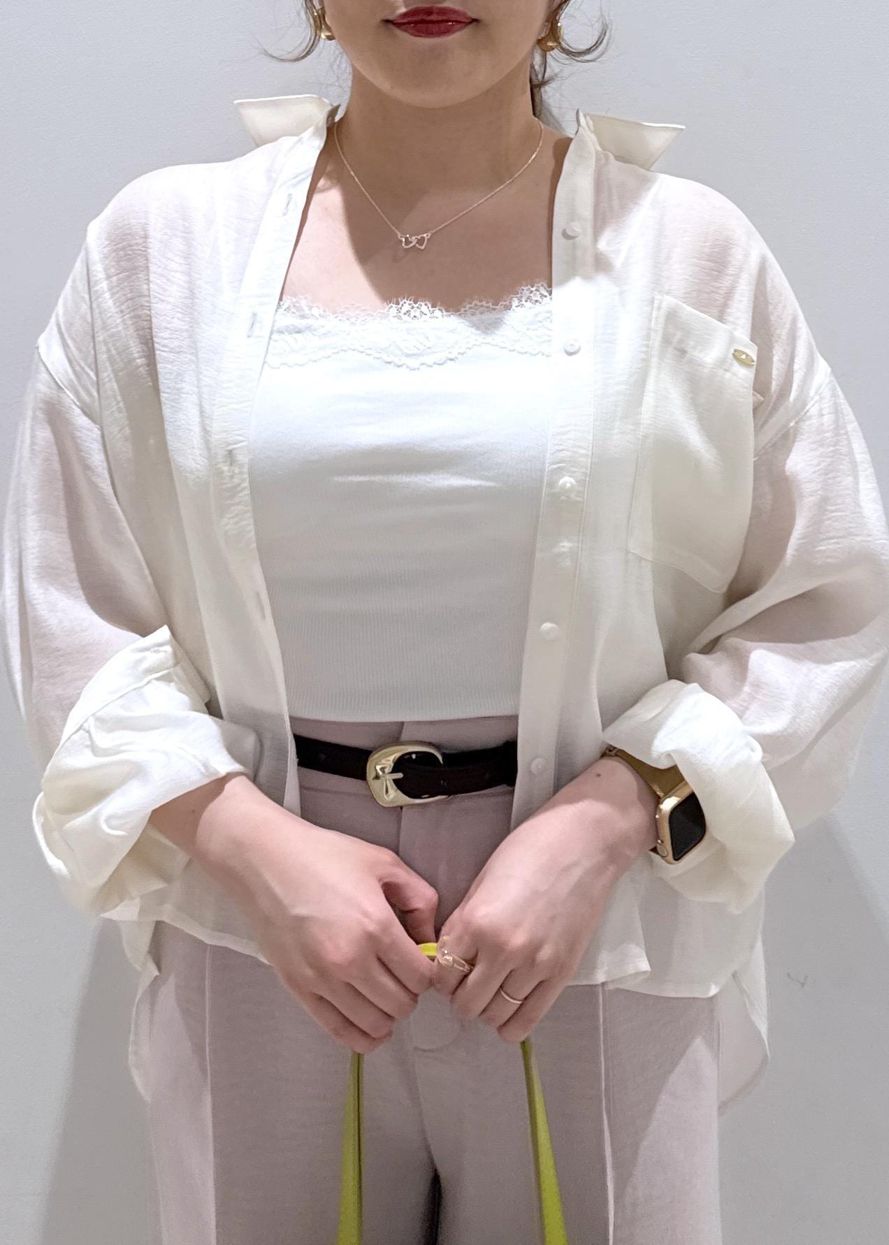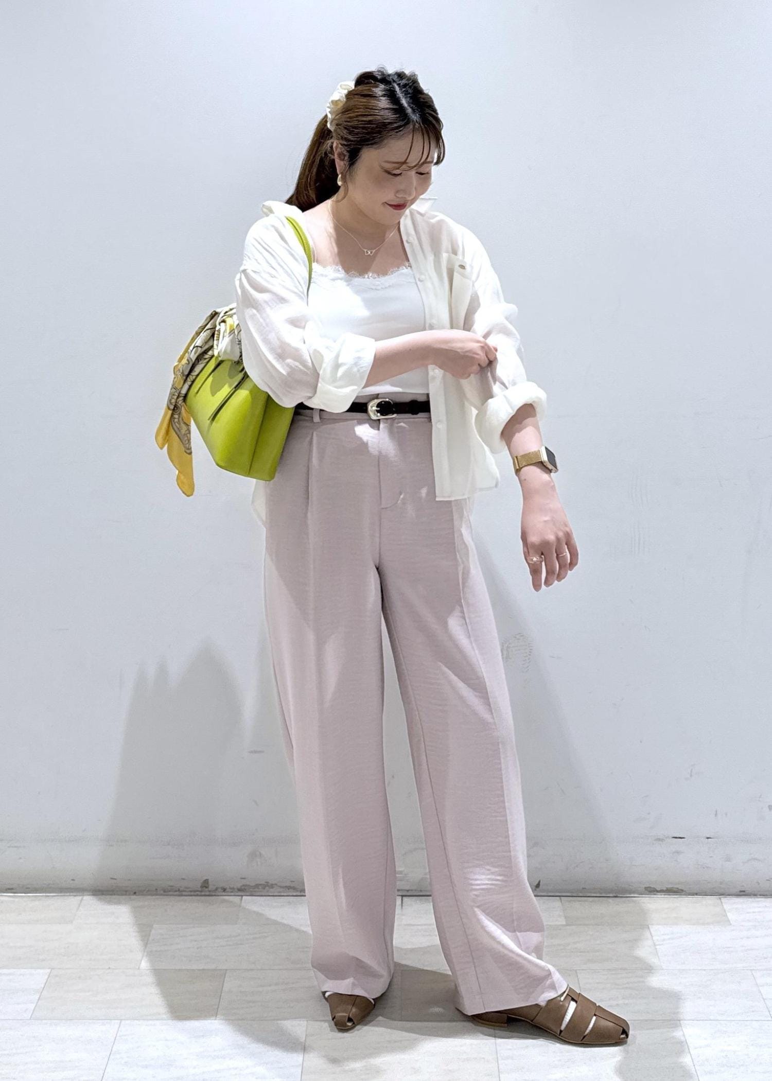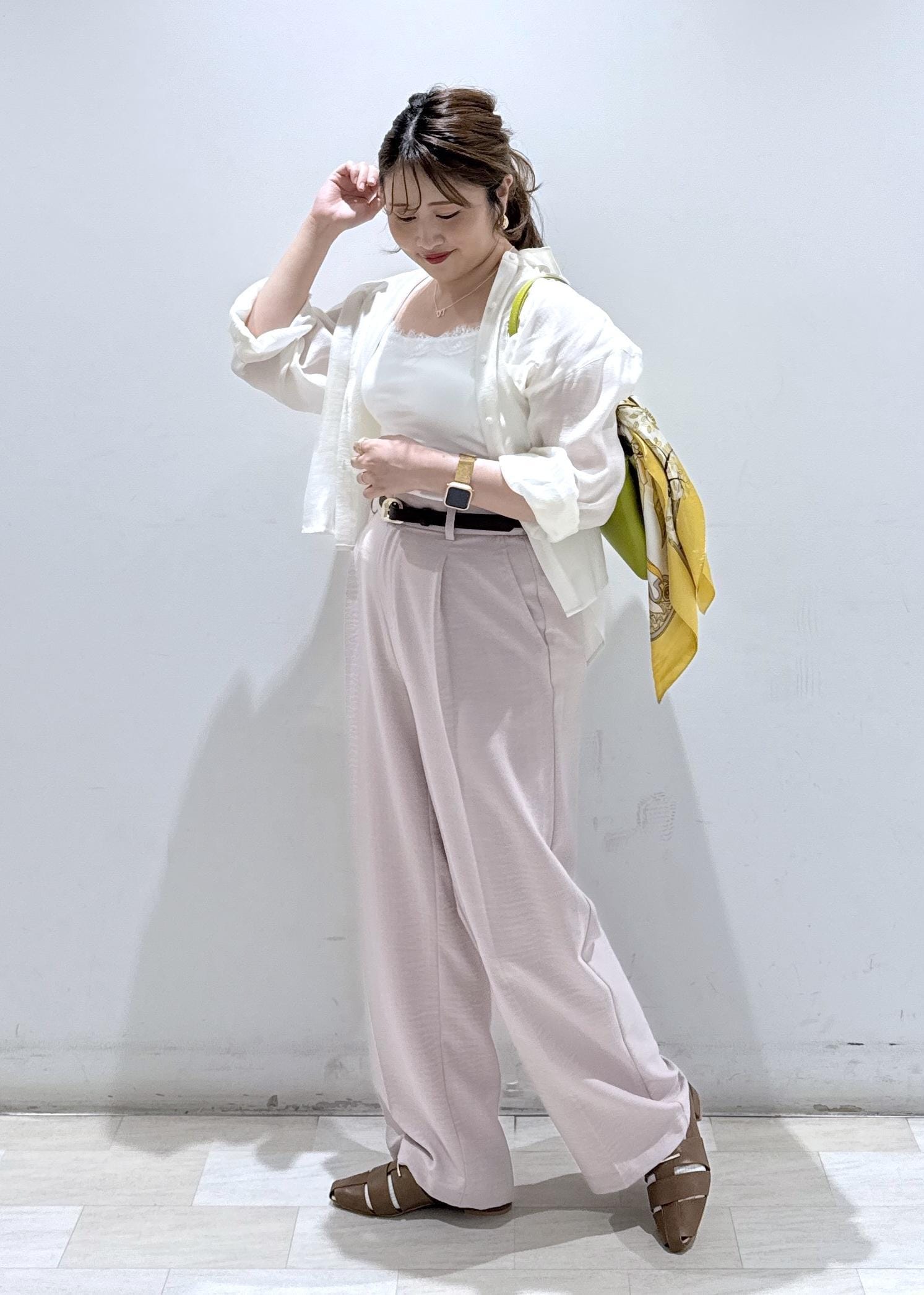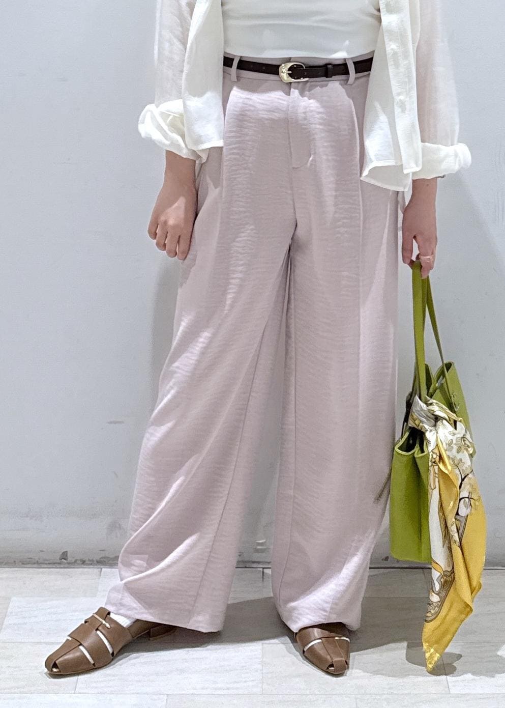 今回は新作で入荷しました、桜のような色味の美easyのリネンライクワイドパンツと透け感のあるシアーシャツと合わせて綺麗めなコーディネートにしてみました♪