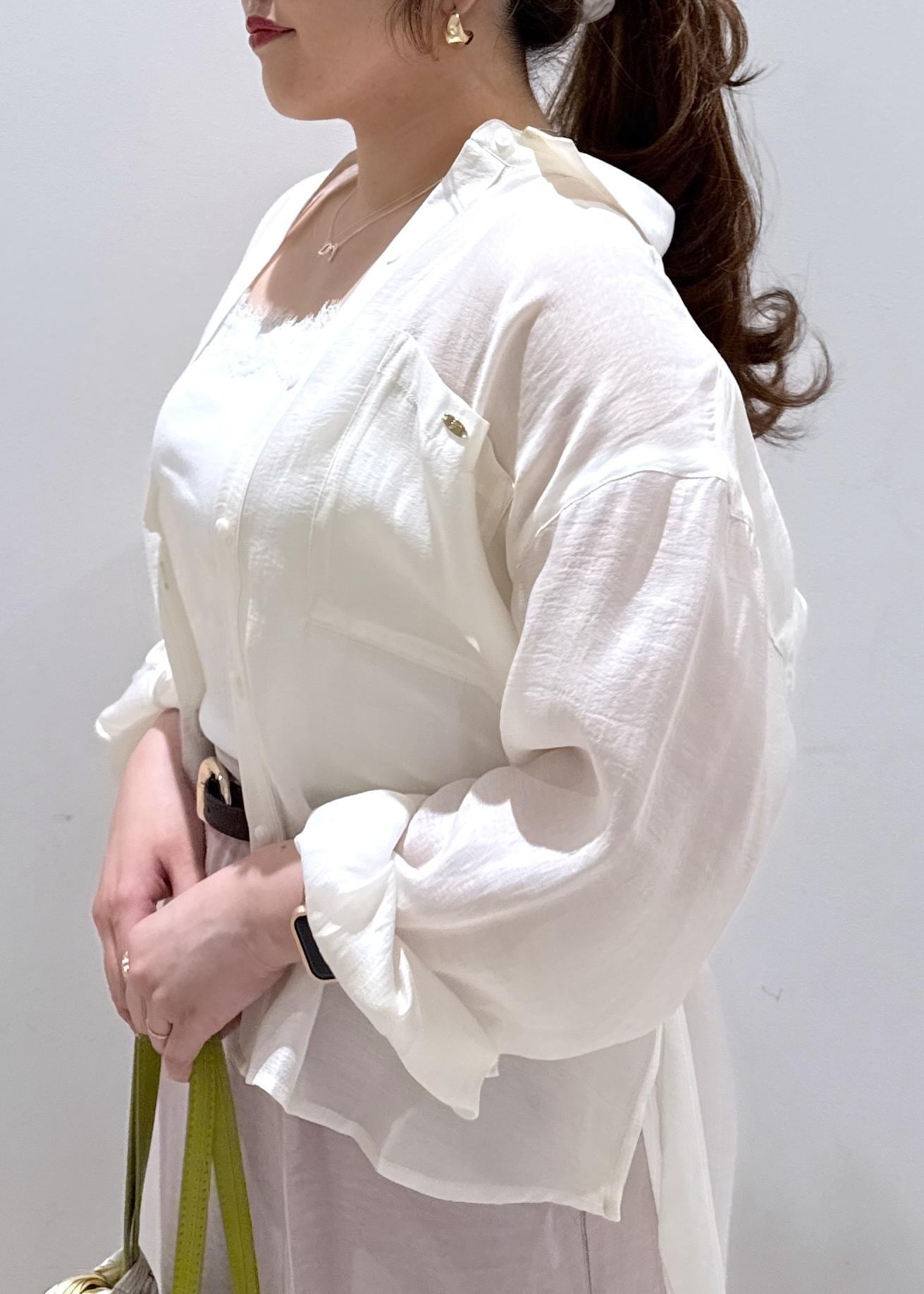 VISチェック&シアーオーバーシャツキナリ / F¥5,489レビュー透け感のあるシアーシャツ⭐︎ベタつくことなく、サラッとした涼しそうな素材感に、お仲間周りより少し長さある着丈なのでボトムスを選ばず合わせやすいです◎お袖もふわっとしているので女性らしさがあります。胸元にはVISのメタルのロゴが付いているのもお洒落に見えます。カジュアルテイストがお好きな方から綺麗めまで使えるのでオススメです!