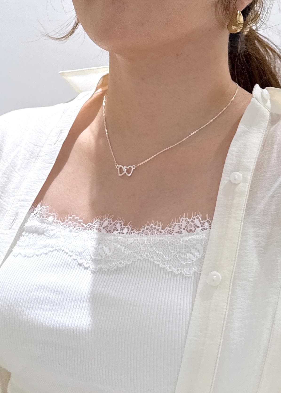 VISダブルハートネックレスシルバー / F¥2,189レビューハート型のデザインのプチペンネックレスです。小さめなデザインなので、シンプルなハートが可愛いです!ネックレス自体が軽いので付けていて疲れにくく、どのお洋服のテイストにも合わせやすかったです。
