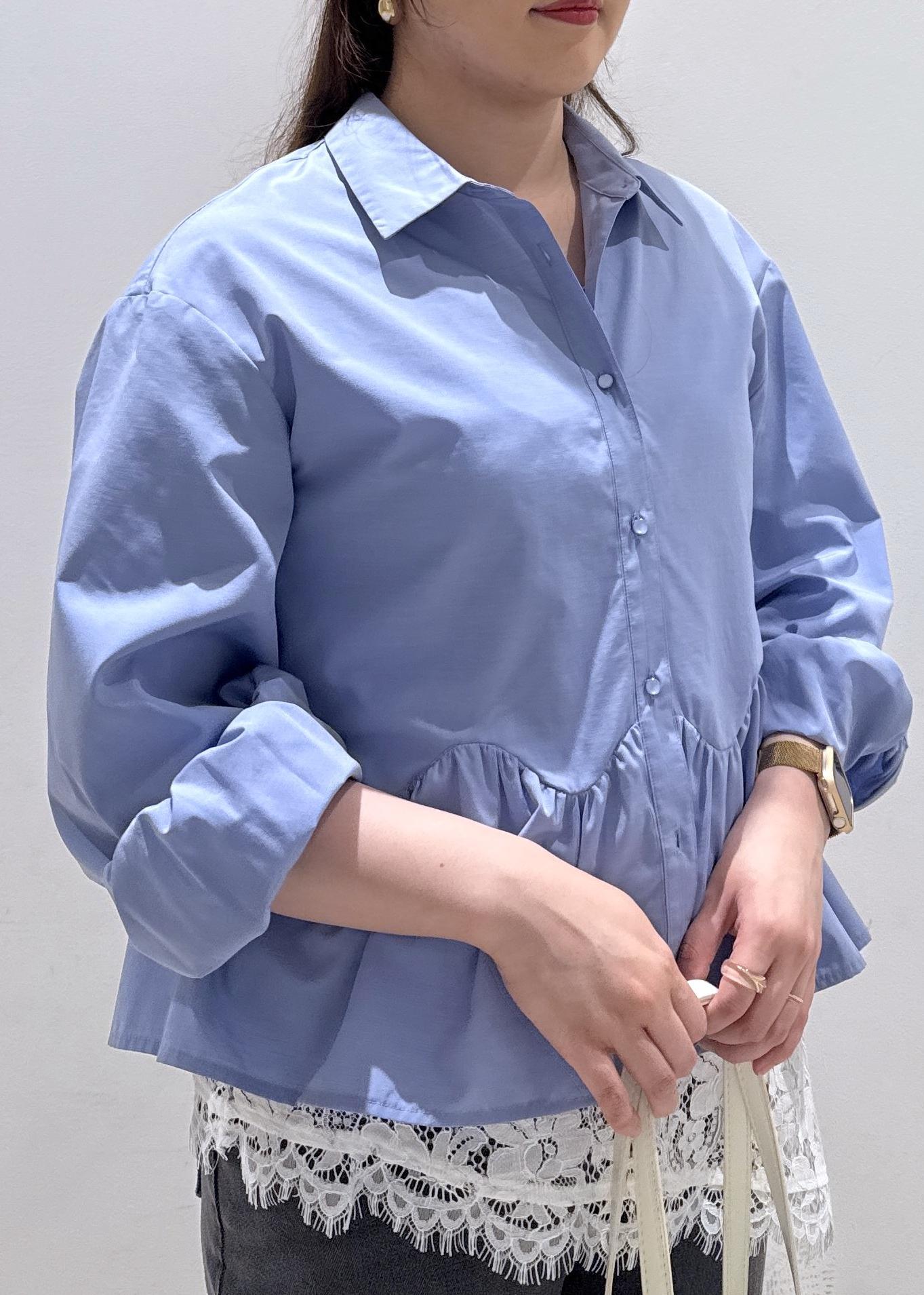 VISウエーブヘムペプラムシャツブルー / F¥6,589レビューペプラムのデザインをしたくねくねのデザインが可愛いシャツです♡ポリエステルのサラッとした生地感と綿素材も入っているので、涼しさもありこの春夏に涼しそうです。身長157cmで腰丈辺りの着丈だったので、インしなくても出したままの状態で着れます。お袖の部分のボタンもキラッとツヤ感のある可愛いボタンでお袖を上げても腕の部分が落ちずらかったです。