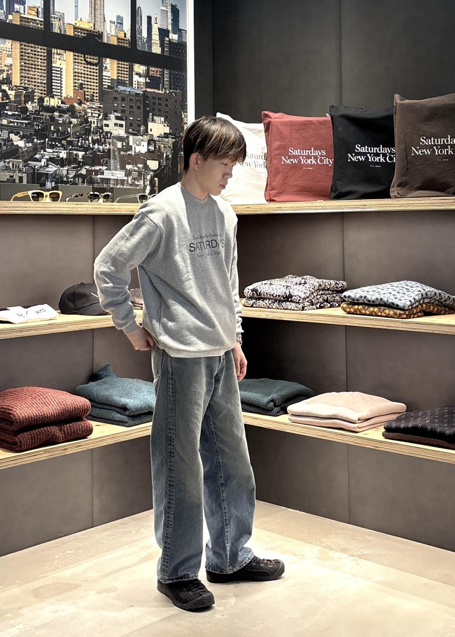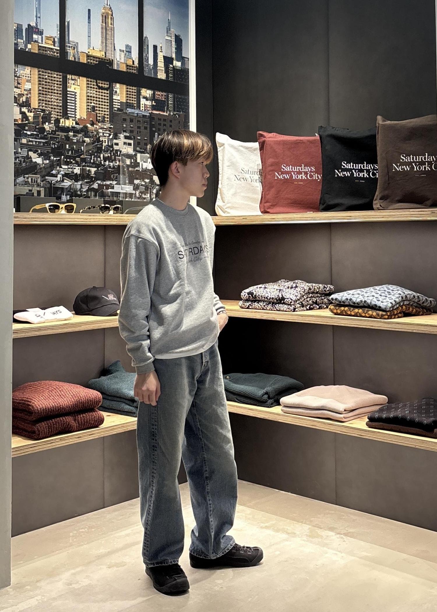 しかし、このスウェットは前面にプリントされた細い字体のSaturdaysロゴがシャープな印象を与えスウェットを部屋着からオシャレ着へと昇華してくれています!