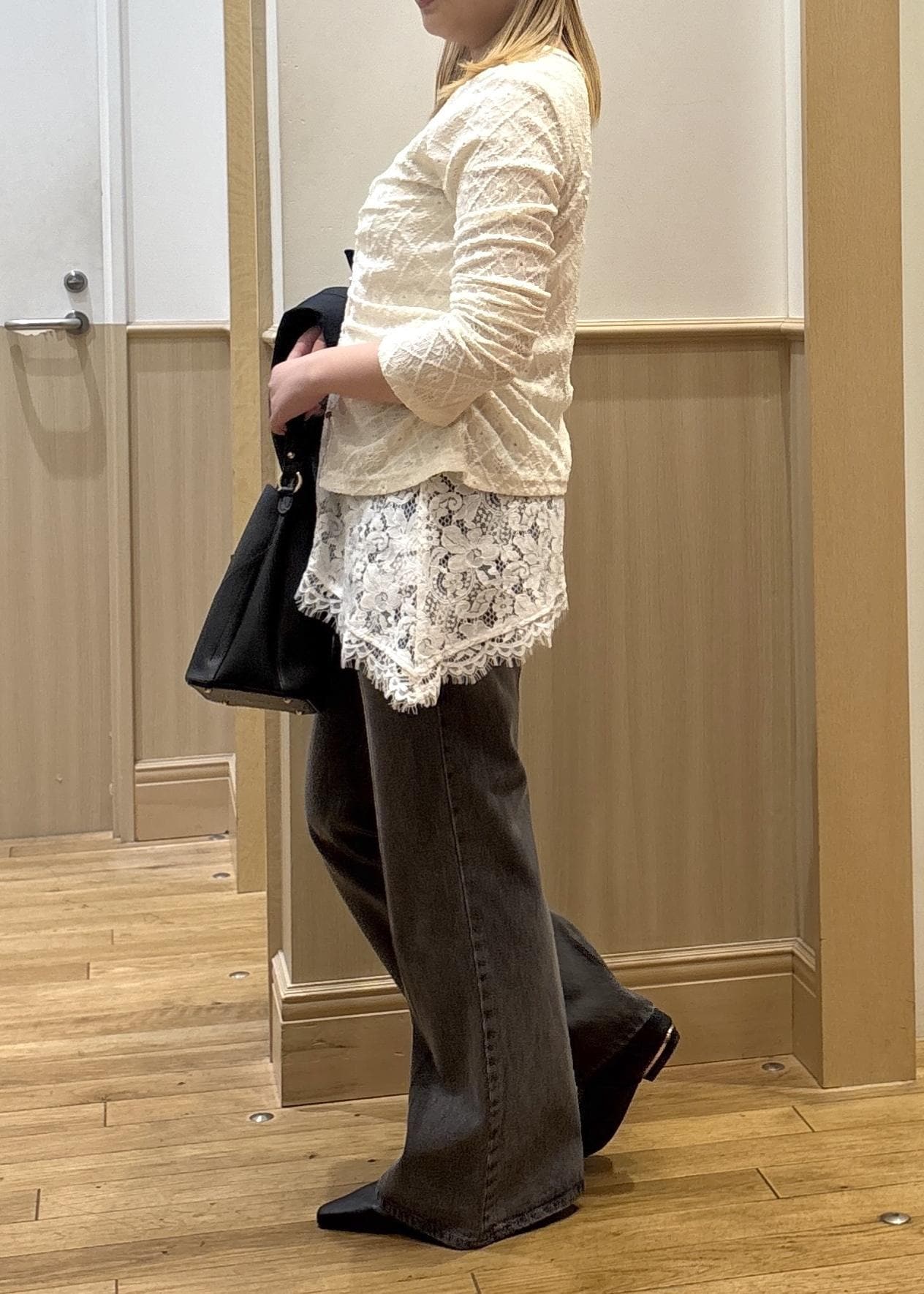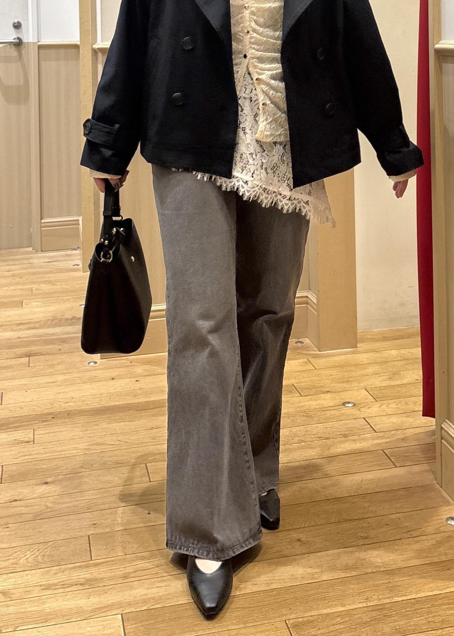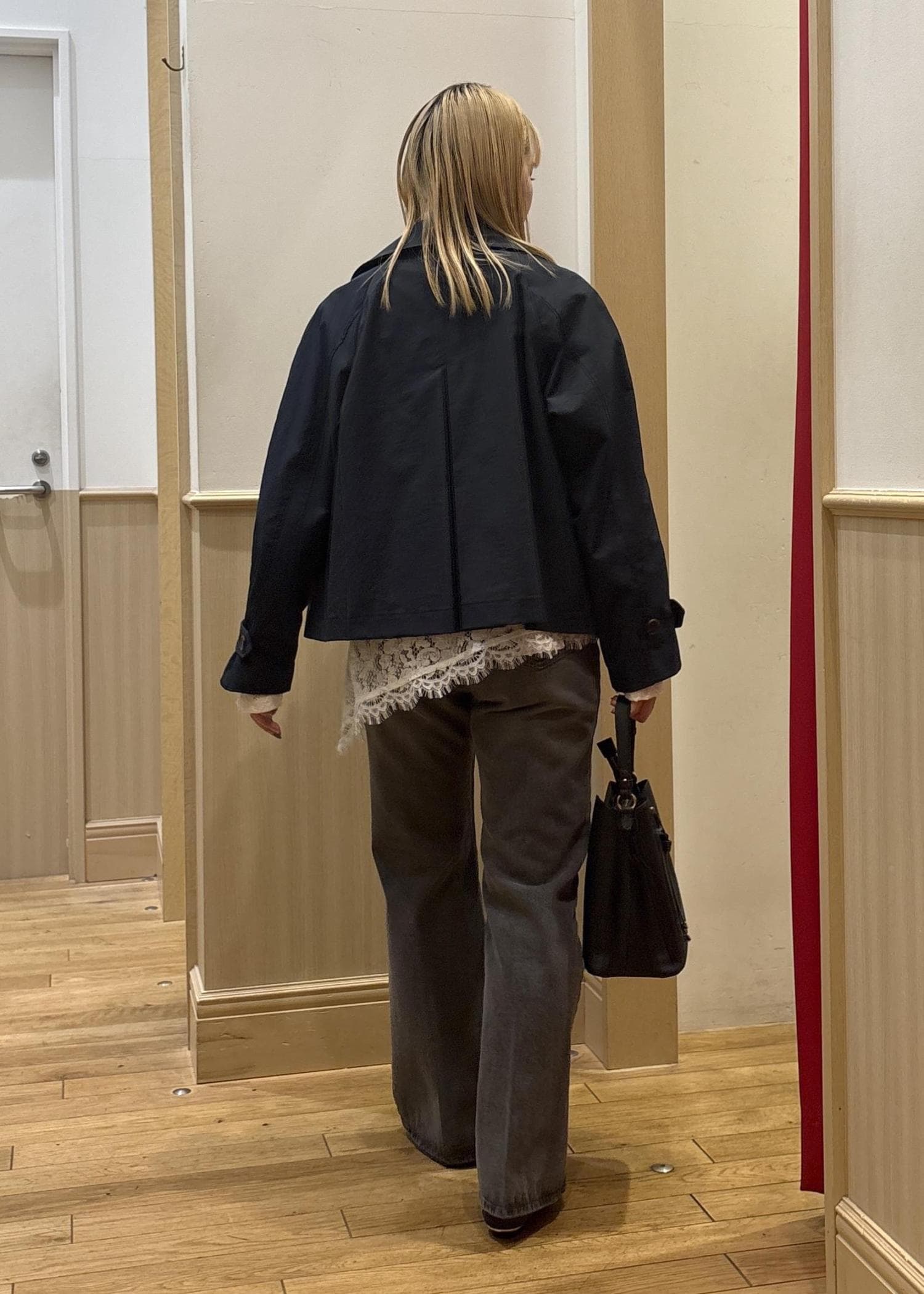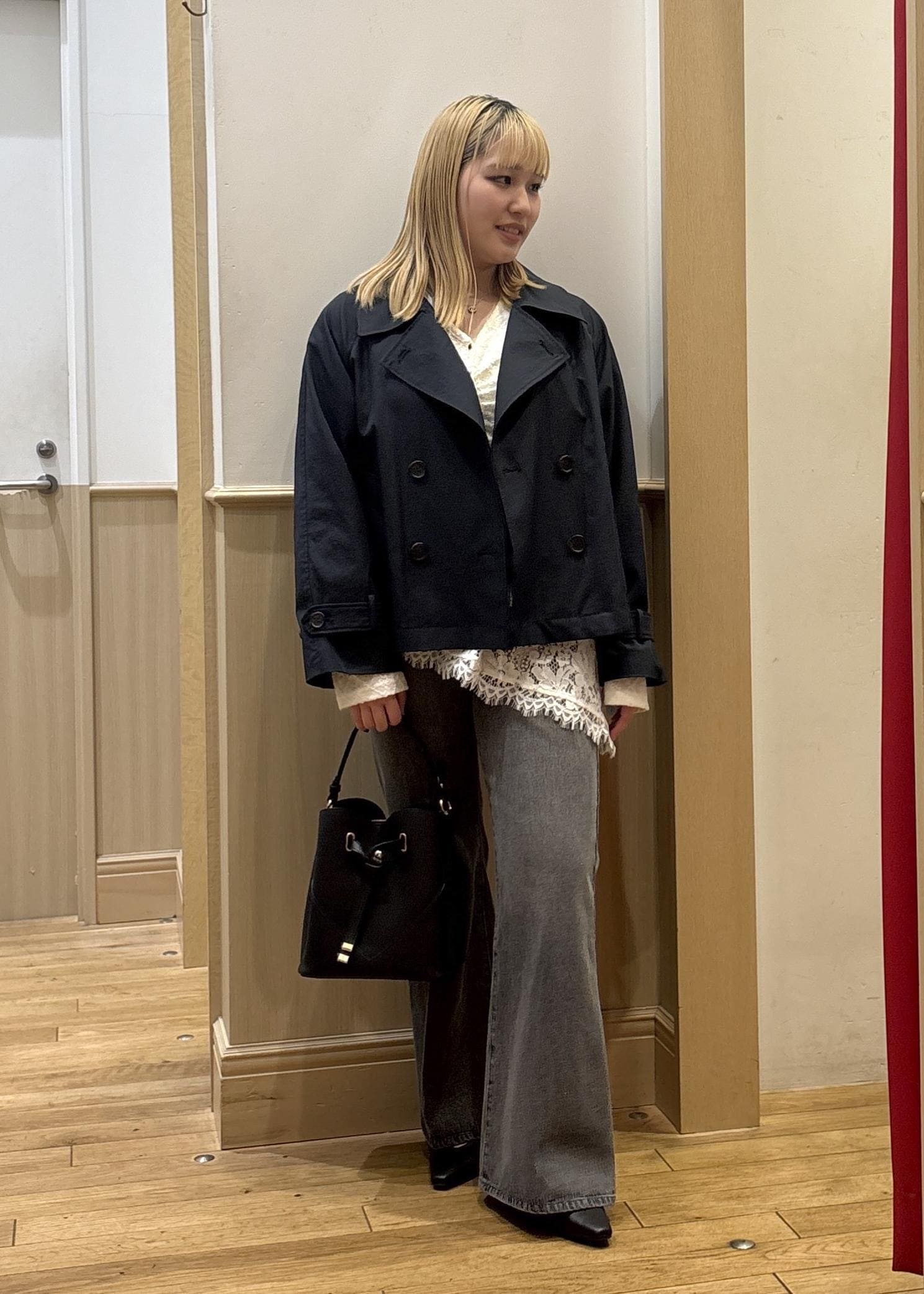 トップスが明るいカラーなので羽織をネイビーにしてコーデに締まりを出しました!