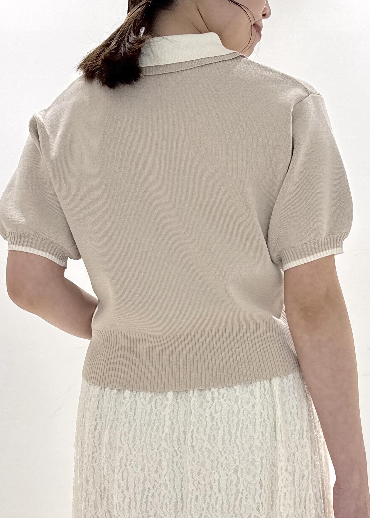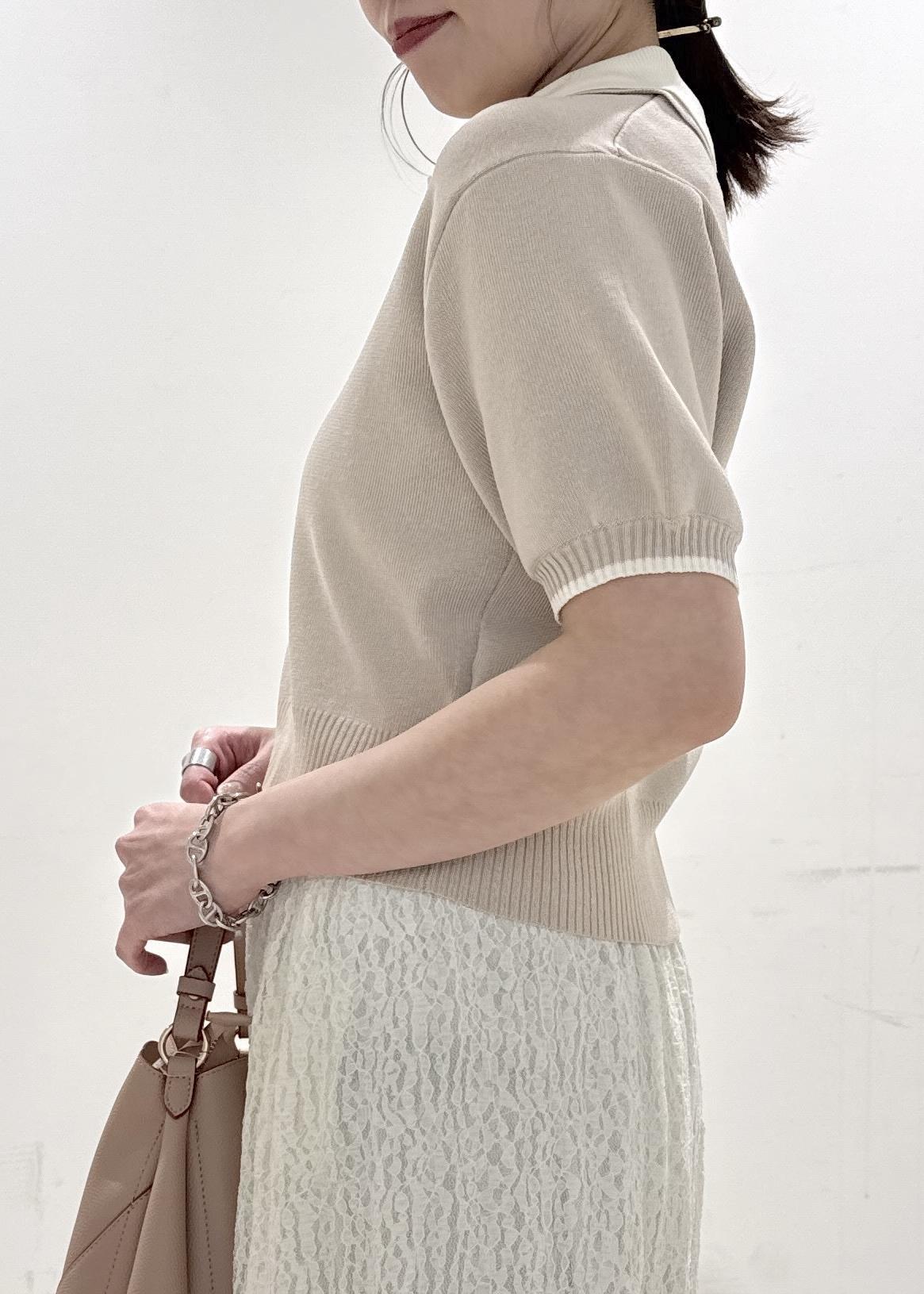 NEW!VISダブルカラー半袖ポロニットトップス/イージーケア・WEB限定カラーベージュ / F¥5,489レビュー【着心地】