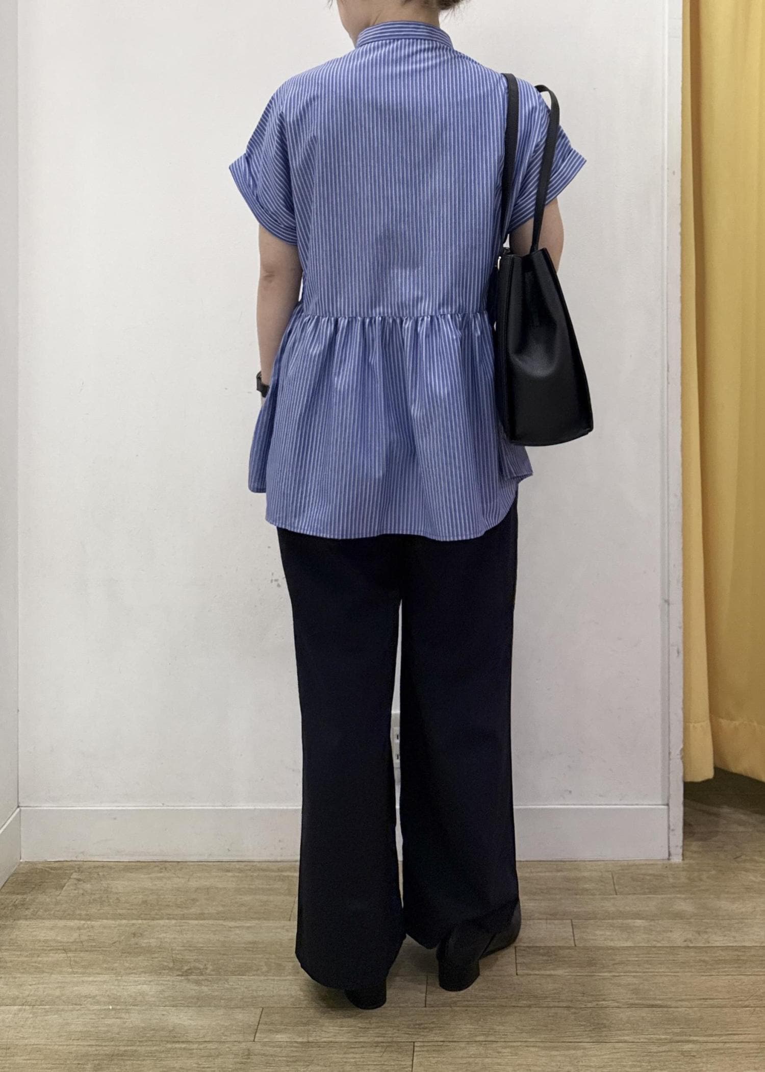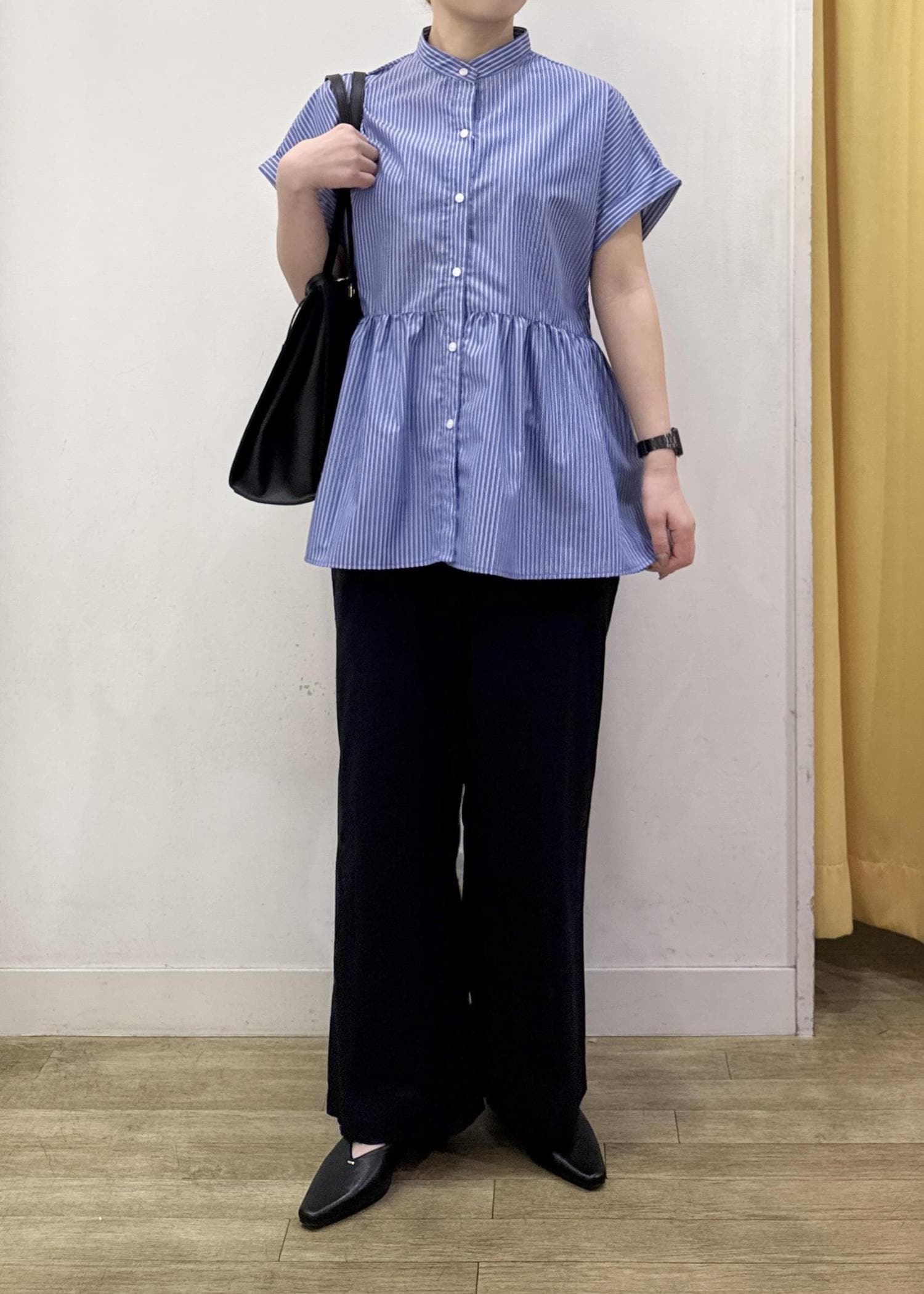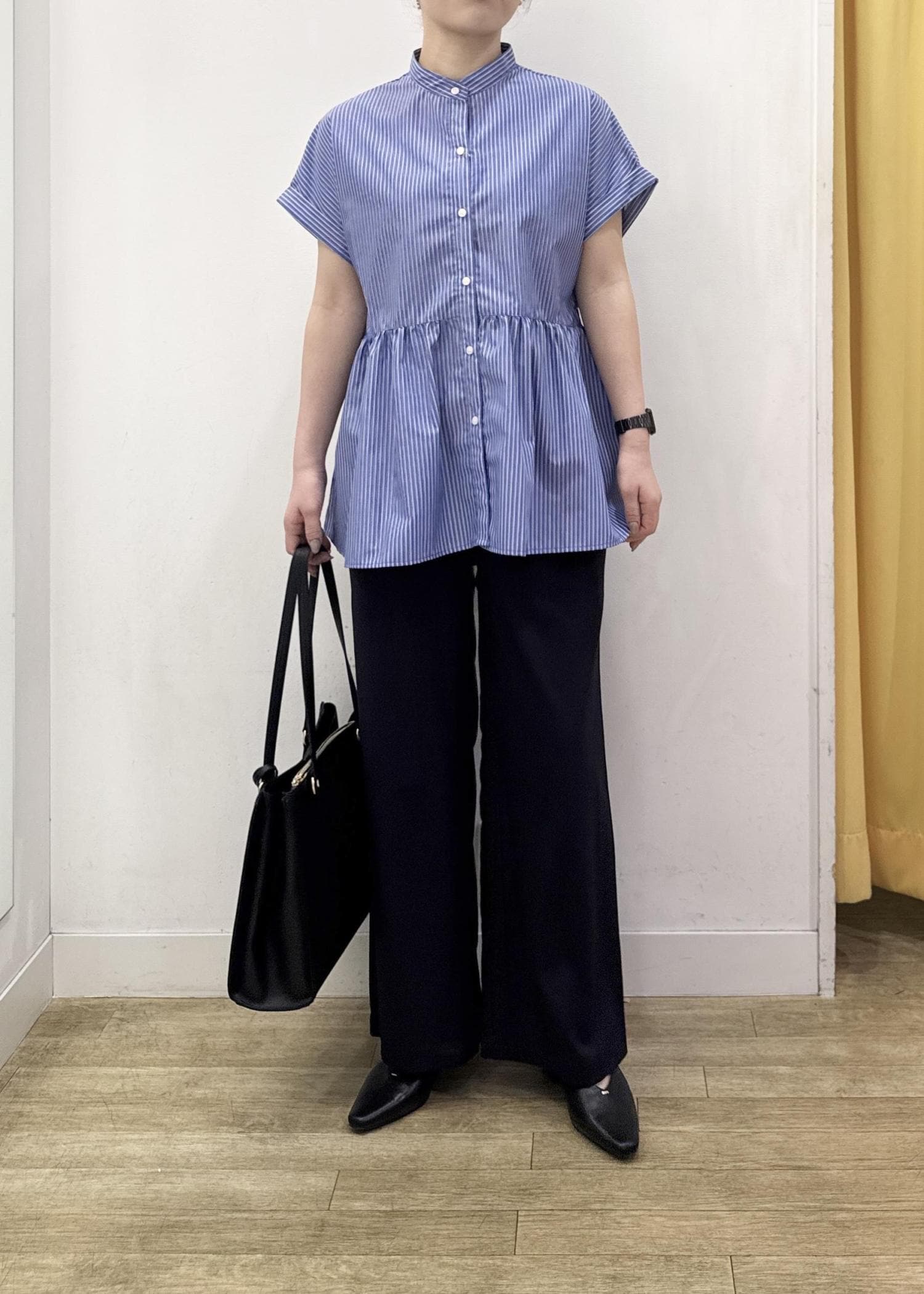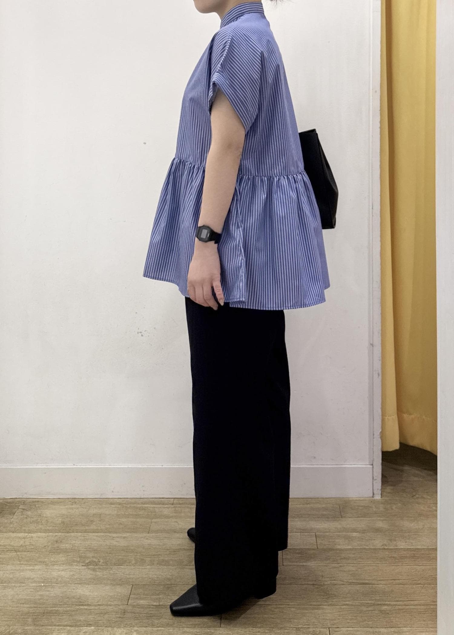 切り替えのあるペプラムシルエットなので、ゆるっとしたシルエットでもメリハリのある印象に。