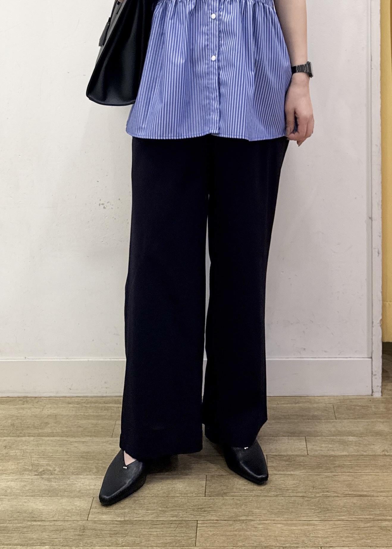 サラッと薄手の素材感で暑い時期にも穿きやすいオススメのワイドパンツです。 -