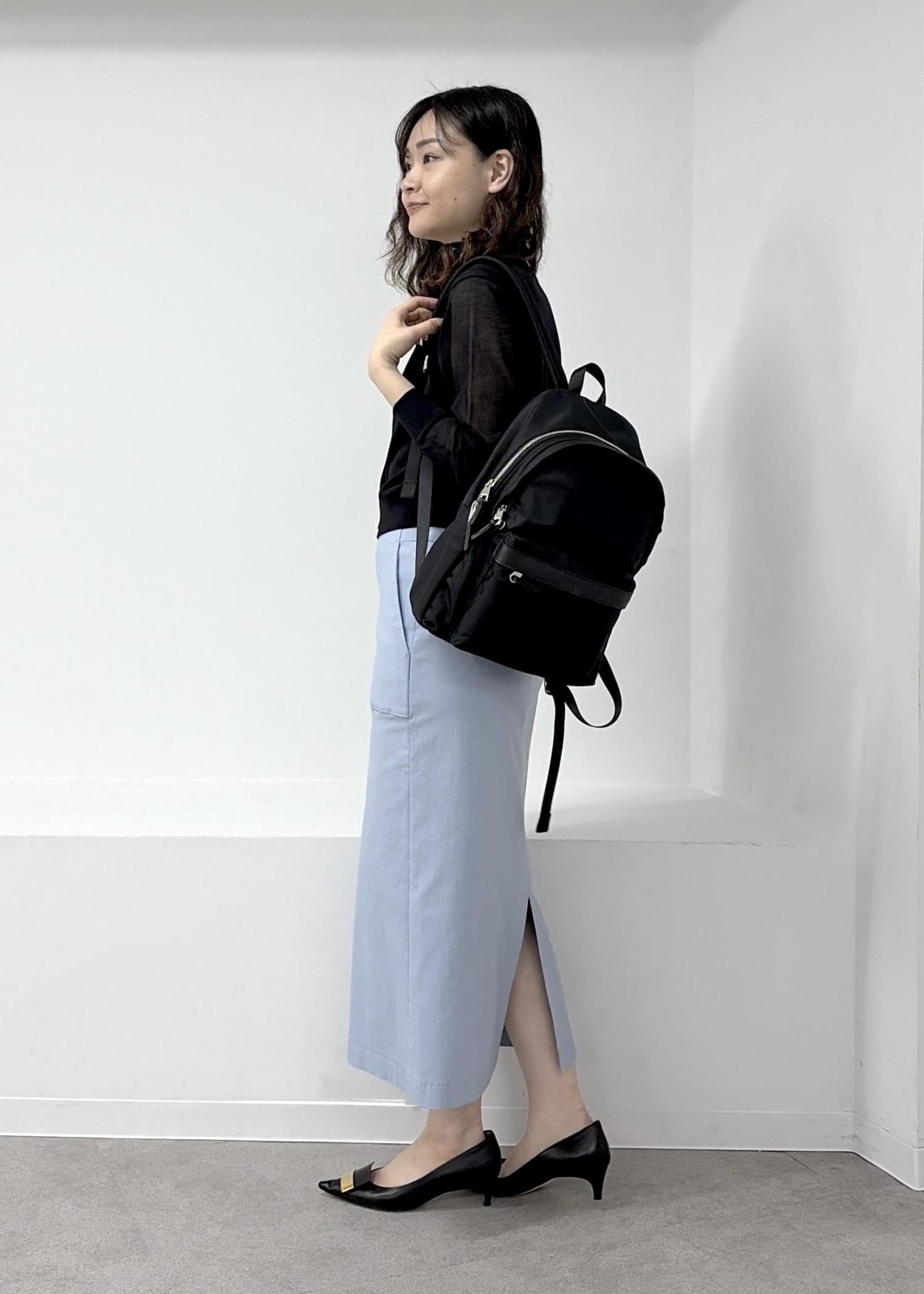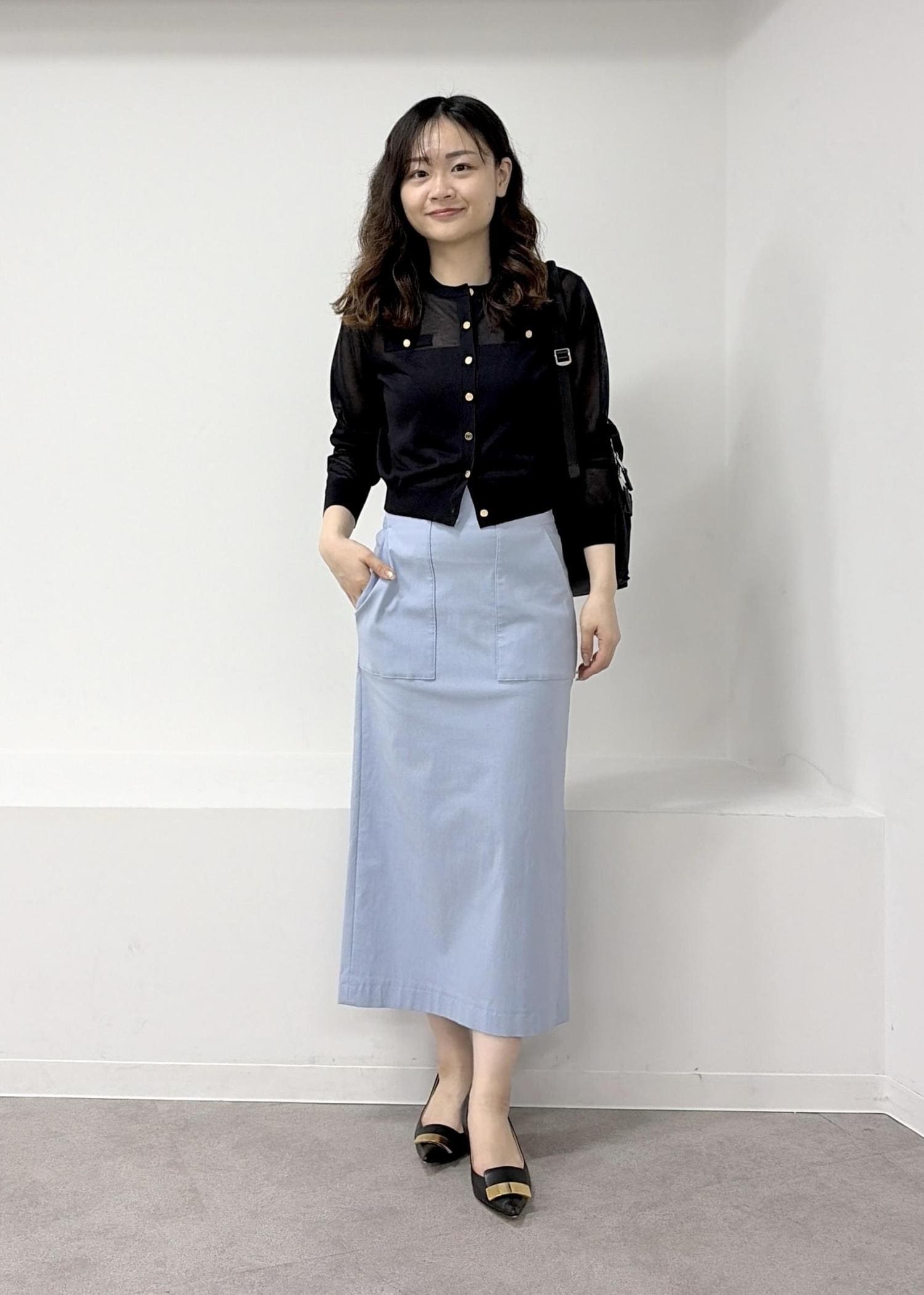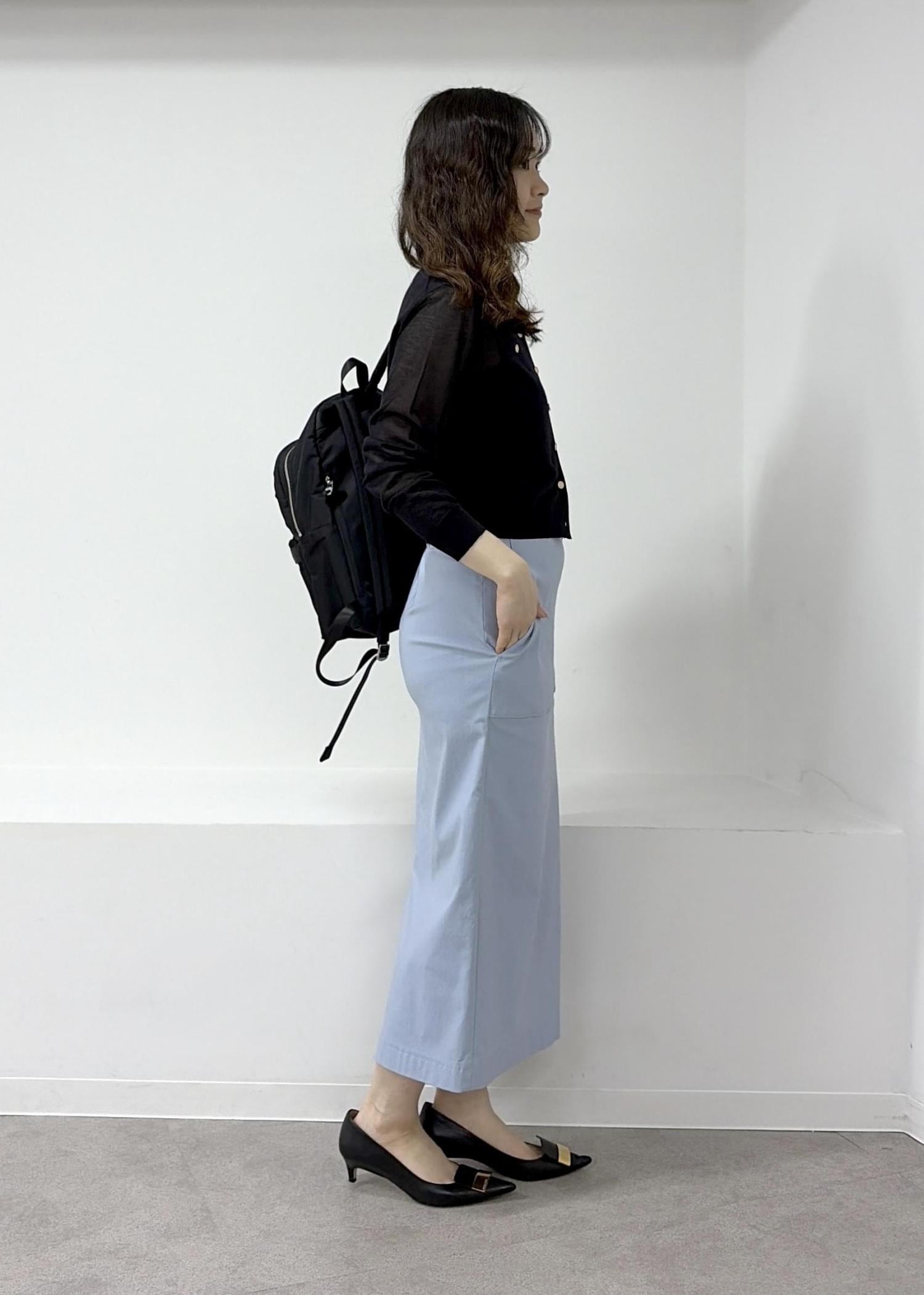 爽やかなブルーが涼しげで品のある通勤コーデです。